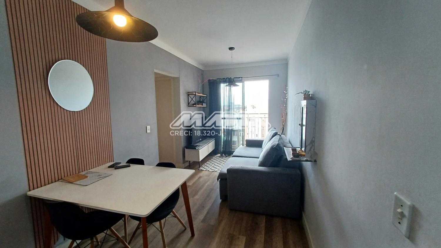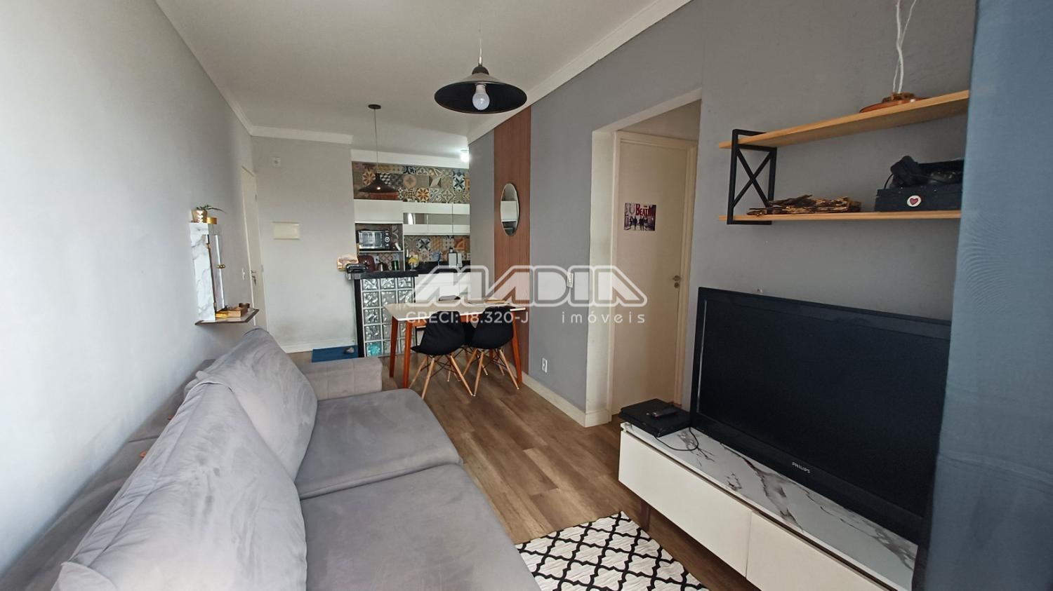 Ótimo apartamento contendo sala para dois ambientes com sacada, cozinha planejada, dois dormitórios e uma vaga coberta de garagem.