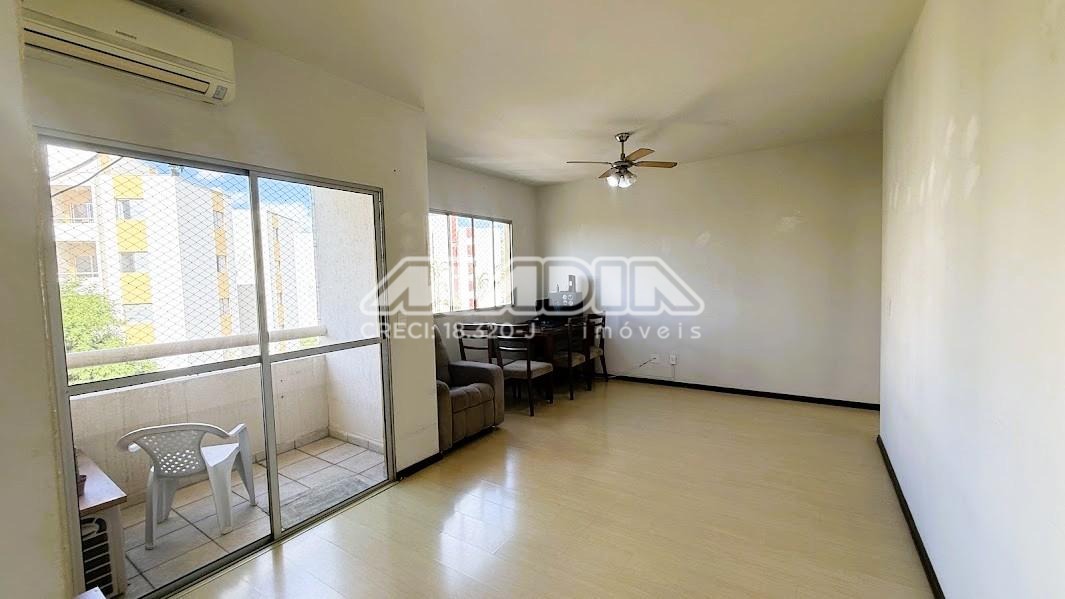 O imóvel conta com sala para dois ambientes, com ar-condicionado e ventilador, varanda e ampla vidraça que proporciona maior iluminação e circulação de ar.