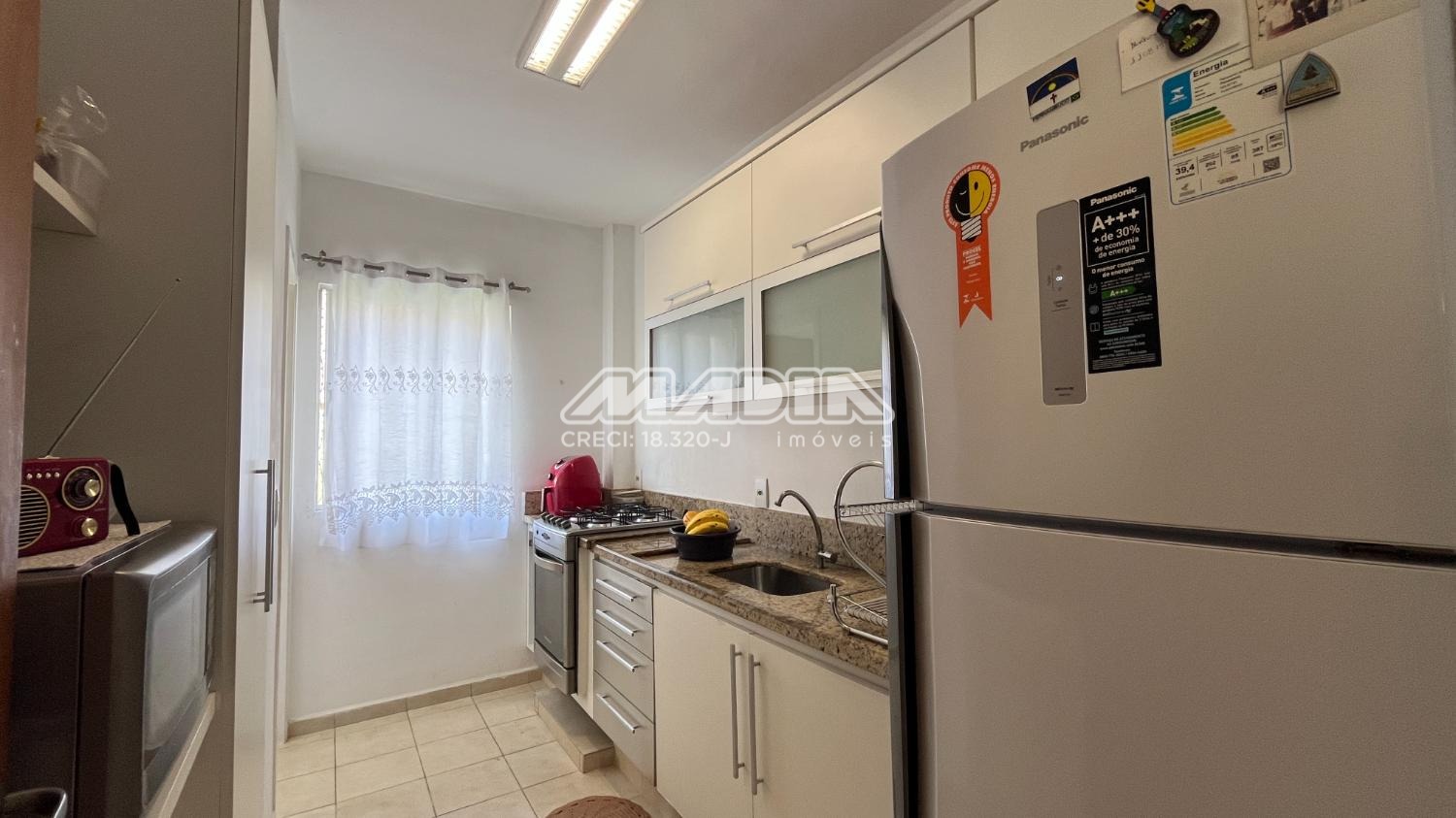 Apartamento no térreo com salas de teve e jantar com varanda, dois dormitórios com armários, banheiro social com box, gabinete e espelho, cozinha e lavanderia com armários planejados, duas vagas de garagem cobertas. Pintura látex, pisos frios e laminado, aquecimento normal. Fácil acesso à Rodovia Municipal dos Andradas e apenas a 9 minutos do centro do vinhedo, com variado comércio (supermercados, farmácias, pet shops, academias, padarias, etc) e escolas. Condominio com churrasqueira e bicicletário.