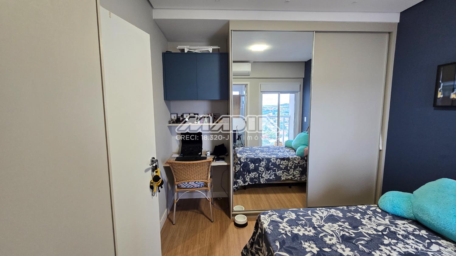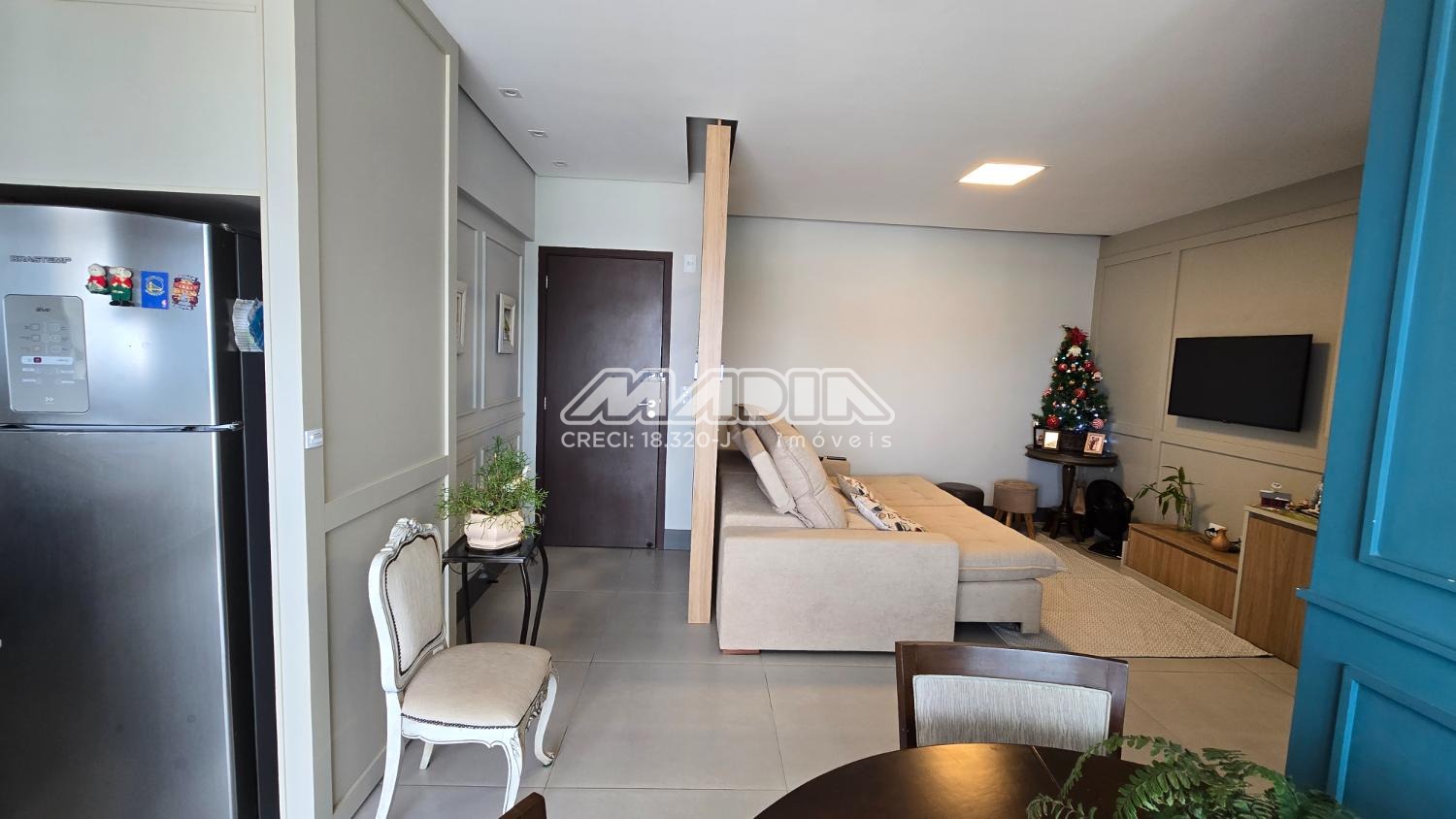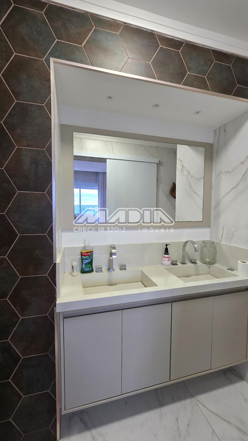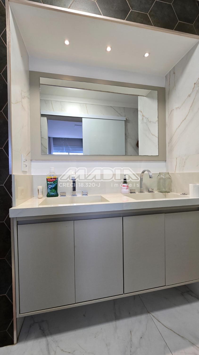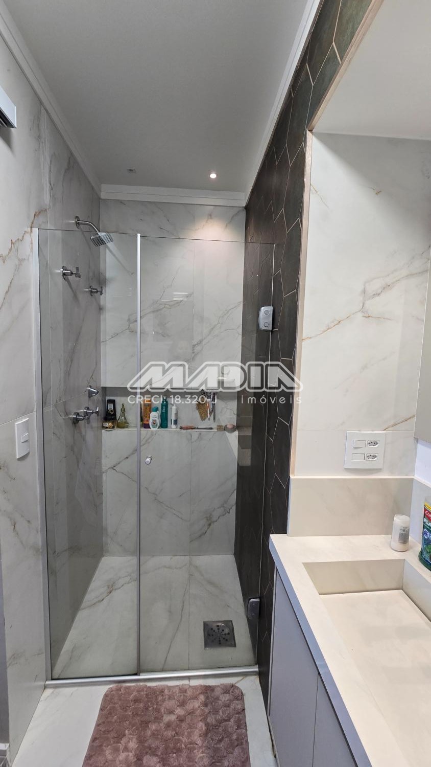 O apartamento é composto por ampla sala integrada a varanda gourmet com fechamento em vidro e a cozinha planejada. São 3 dormitórios, sendo 2 suítes, todos com armários planejados e ar condicionado.