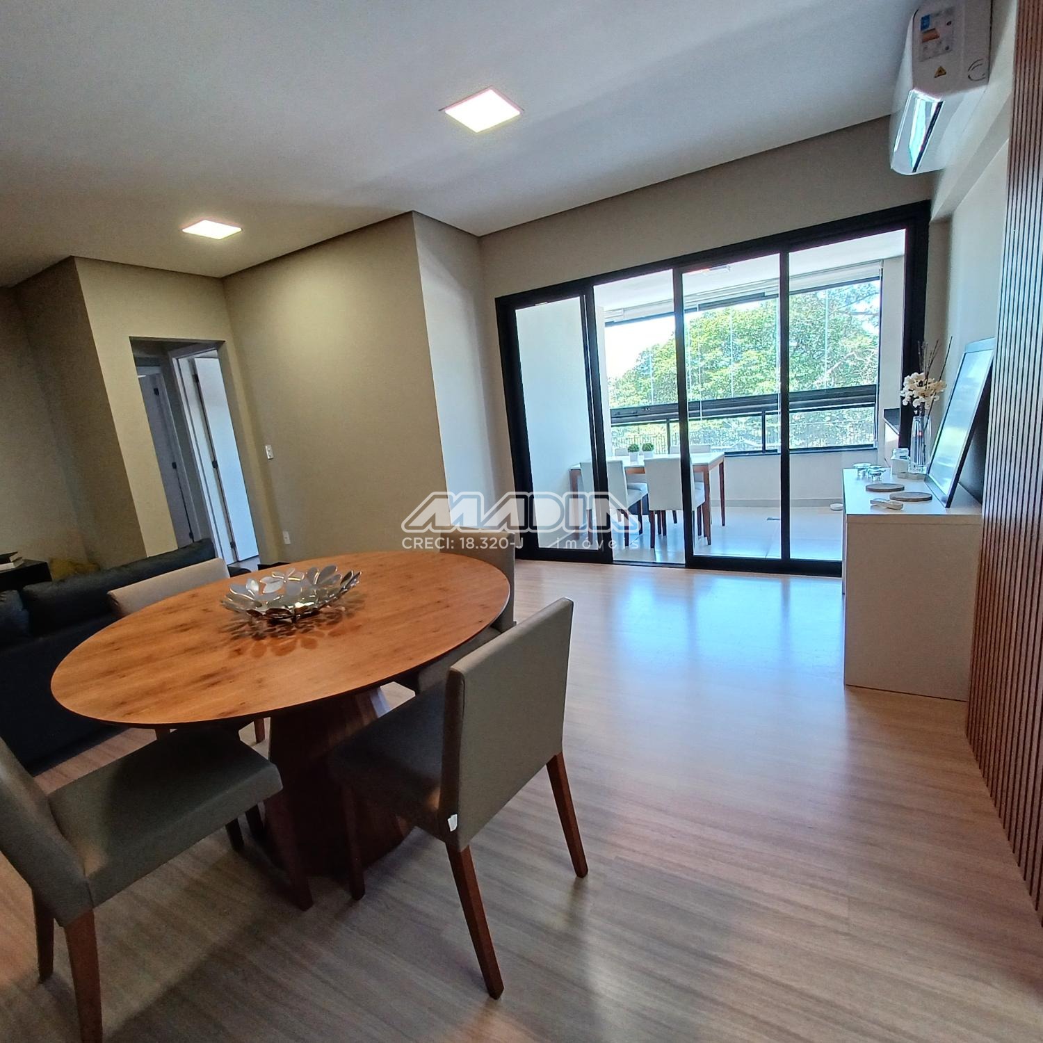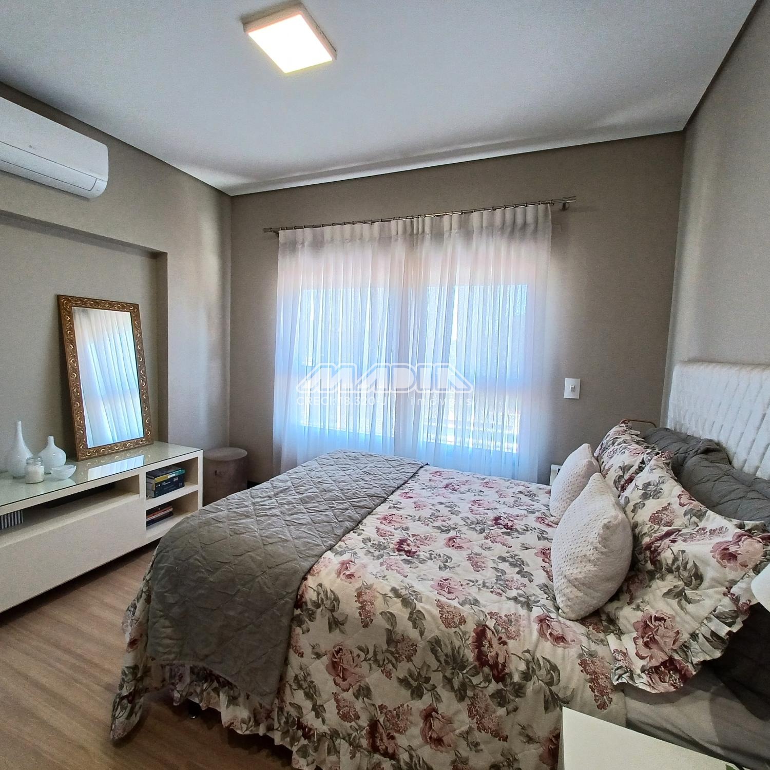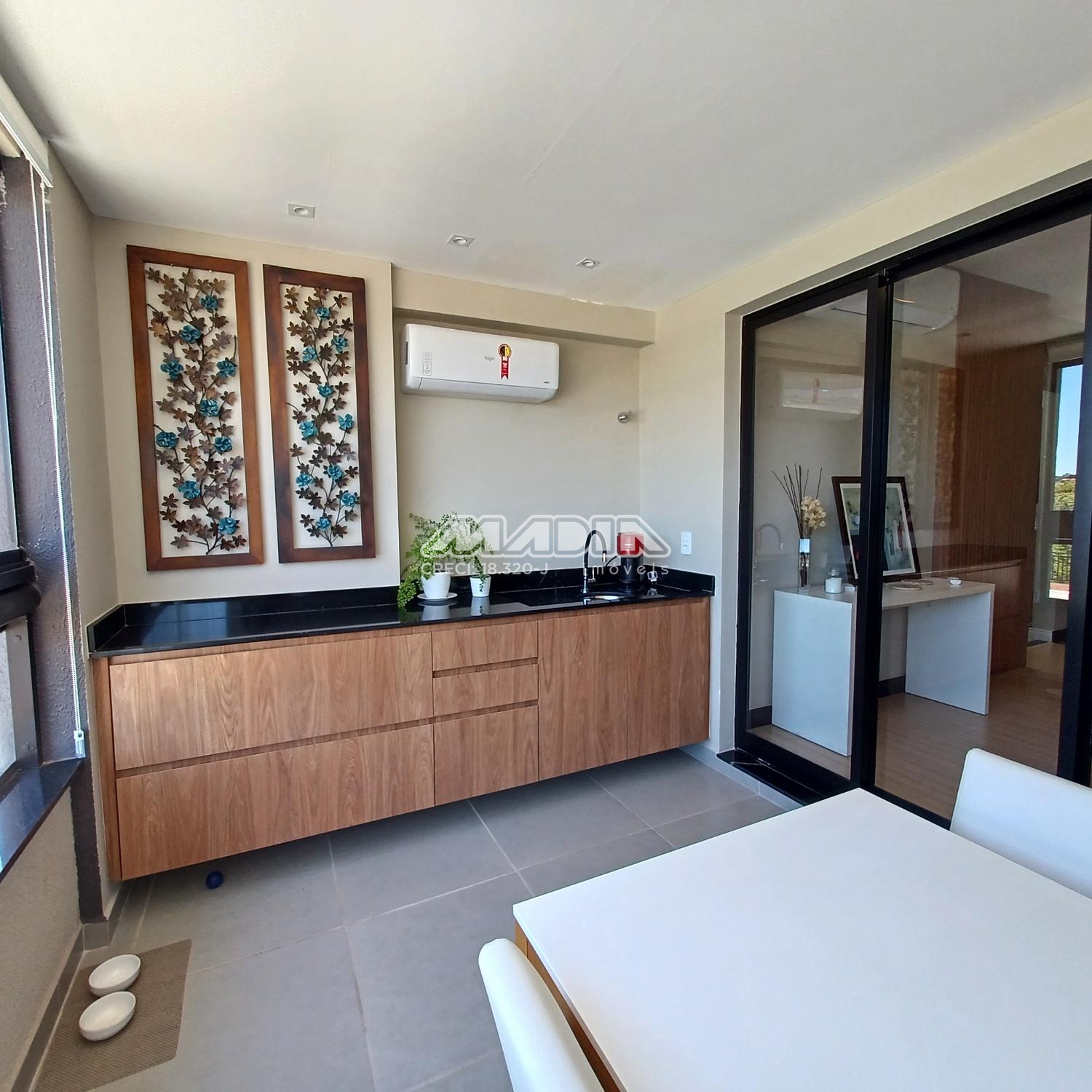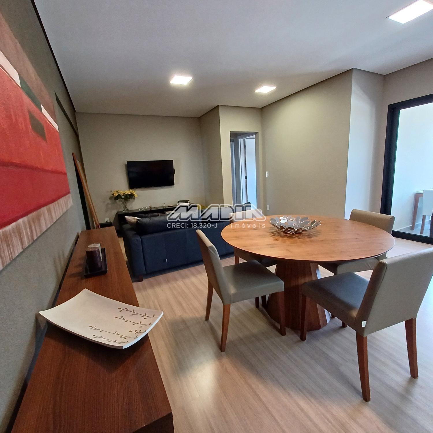 O imóvel é composto por living para dois ambientes com varanda fechada em blindex, cozinha planejada, lavanderia, três dormitórios sendo uma suíte. Todos os ambientes possuem ar condicionado proporcionando muito conforto. O imóvel também possui duas vagas cobertas de garagem com depósito.