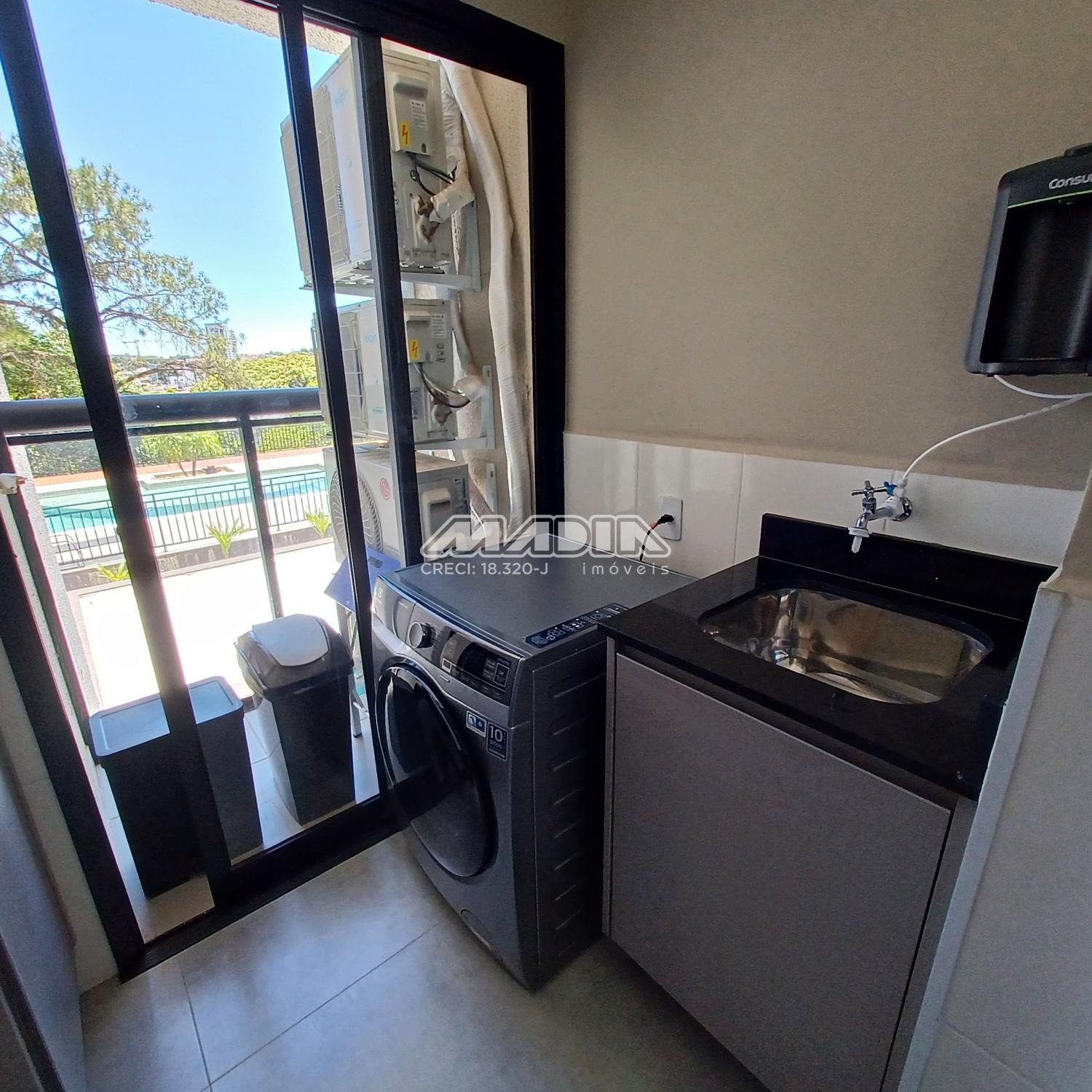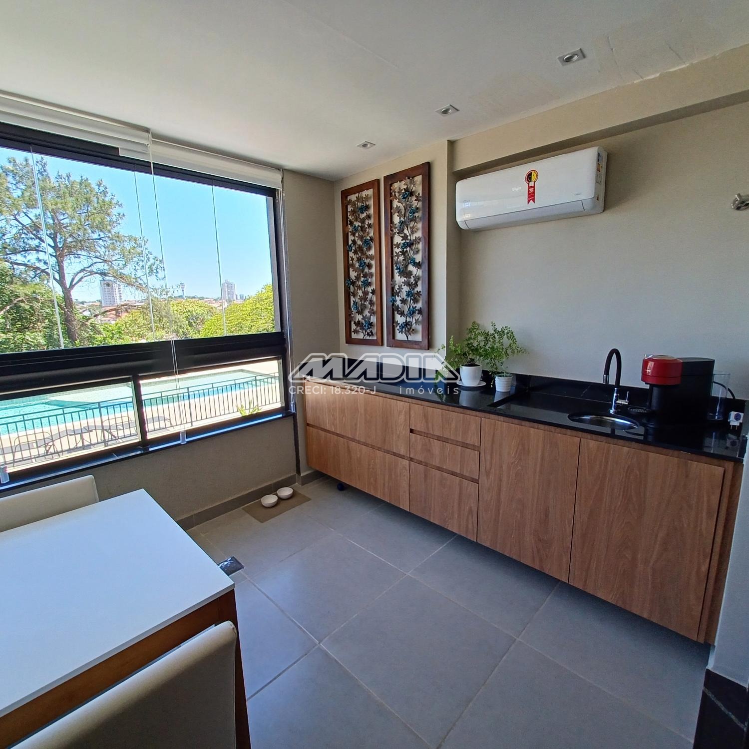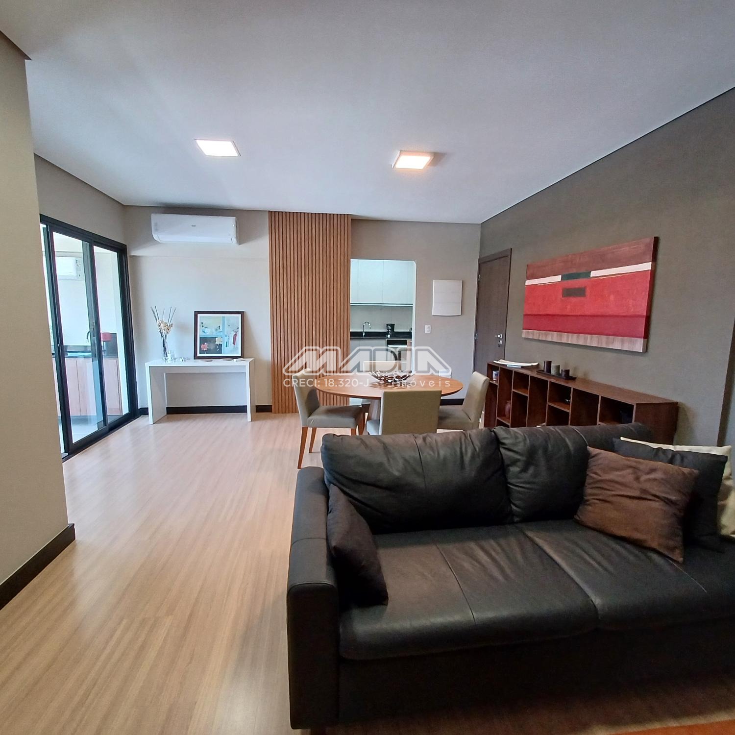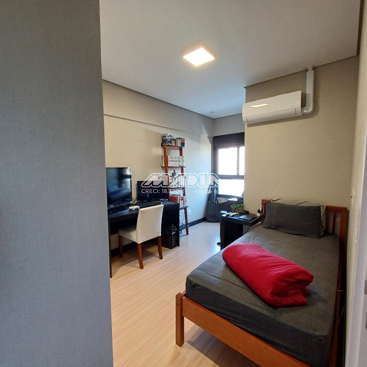 O imóvel é composto por living para dois ambientes com varanda fechada em blindex, cozinha planejada, lavanderia, três dormitórios sendo uma suíte. Todos os ambientes possuem ar condicionado proporcionando muito conforto. O imóvel também possui duas vagas cobertas de garagem com depósito.