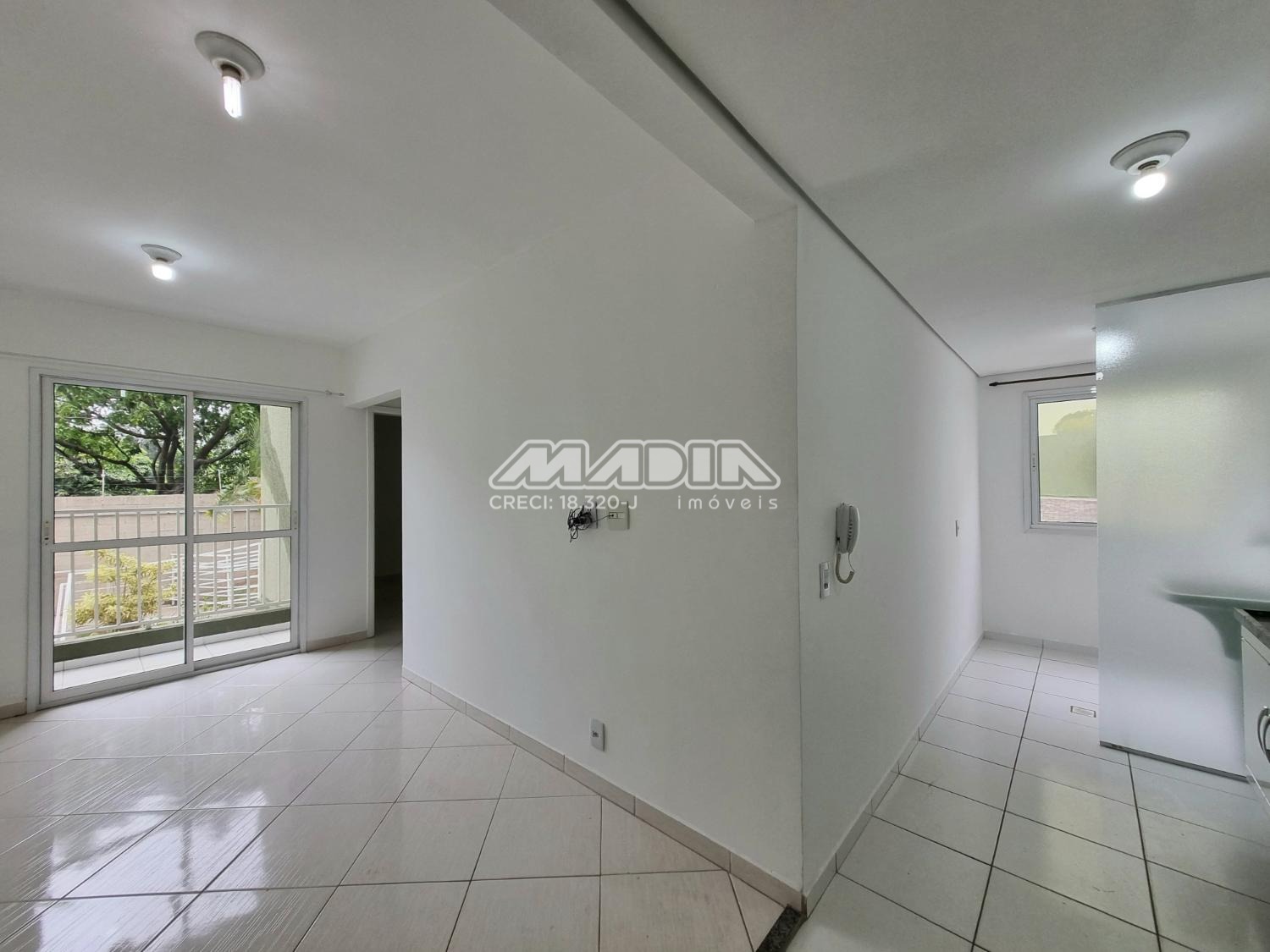 Apartamento de 58m², 2 dormitórios com armários, 1 banheiro social, sala dois ambientes com varanda, cozinha com armários, área de serviço, 1 vaga de garagem, aceita pet.