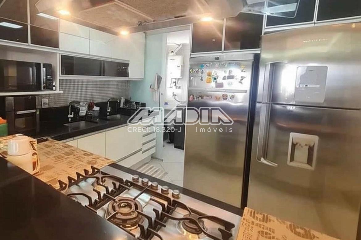 Apartamento com 3 quartos todos com armários planejados, banheiros com box blindex e armário, sala de jantar integrada com sala de estar, cozinha repleta de armários, fogão cooktop, coifa, 2 cubas na pia, facilitando a rotina do dia a dia, torre para micro-ondas e forno elétrico, balcão para pequenas refeições, ilha, varanda gourmet, sistema de aquecimento á gás e elétrico.