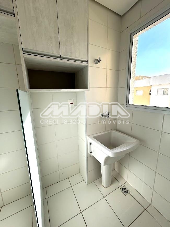 Apartamento com 2 quartos, 1 banheiro social, cozinha armários planejados, balcão de granito, sala de tv integrada com sala de jantar, lavanderia com armários, divisória de vidro separando a cozinha da lavanderia, sacada, elevador, 1 vaga descoberta.