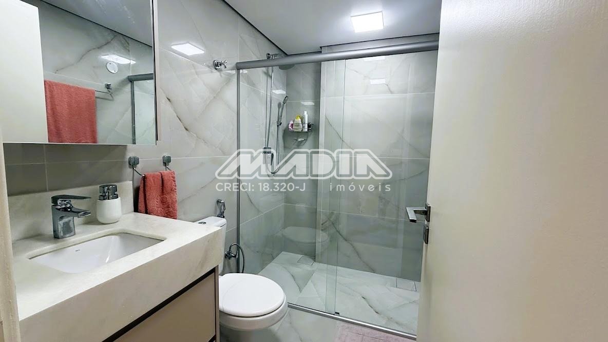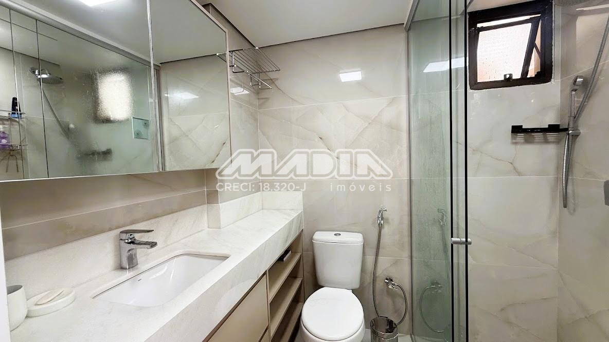 • Bancadas em quartzo (cozinha) e mármore (banheiros)
