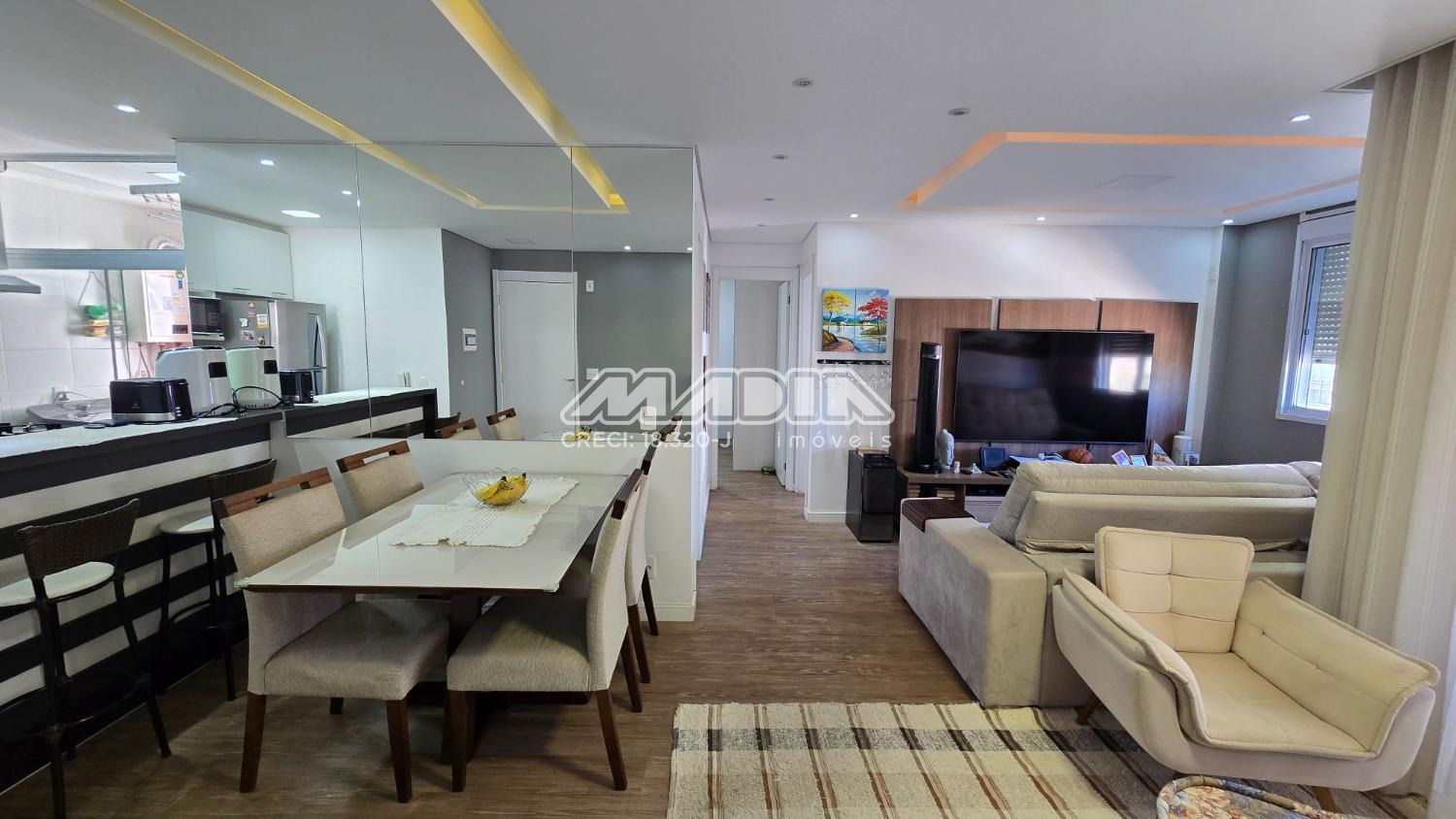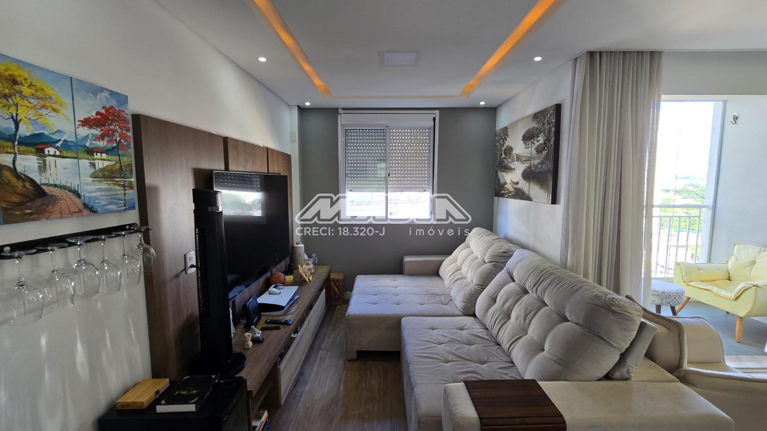 Planta original com 3 dormitórios sendo a sala estendida por 1 dormitório. Com 67m² de área útil, este imóvel possui ampla sala de estar e jantar com uma varanda aconchegante, 2 quartos com armários sendo 1 suíte, 1 banheiro social com armário e box em vidro, cozinha planejada, lavanderia.