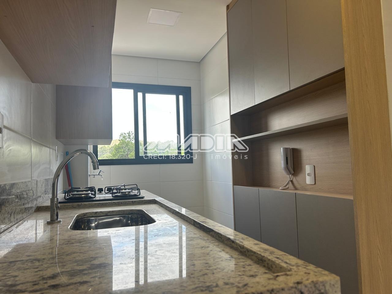 • Cozinha Planejada: Cozinha com armários planejados, bancada em granito (substituindo o material original) e equipada com cooktop.