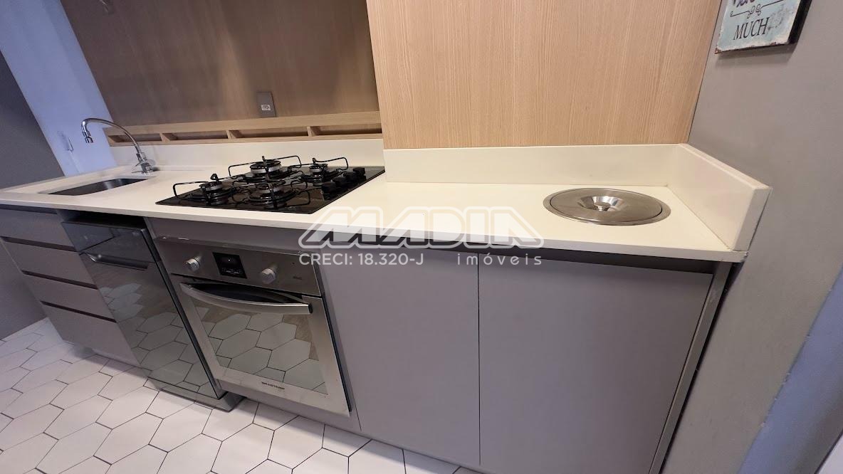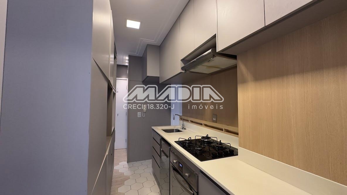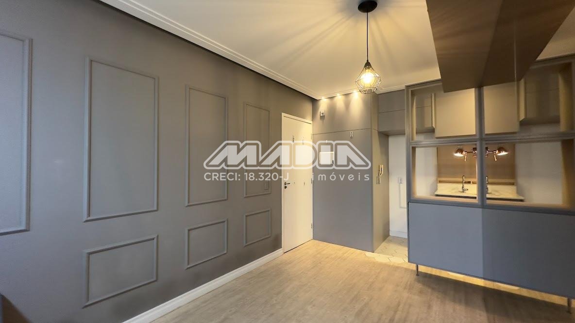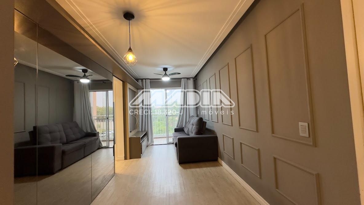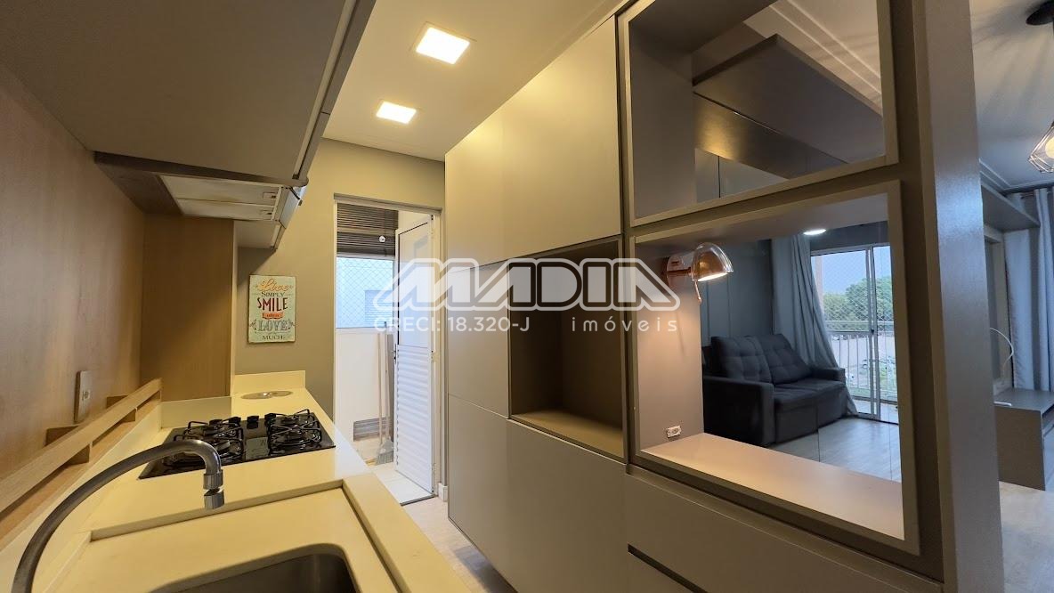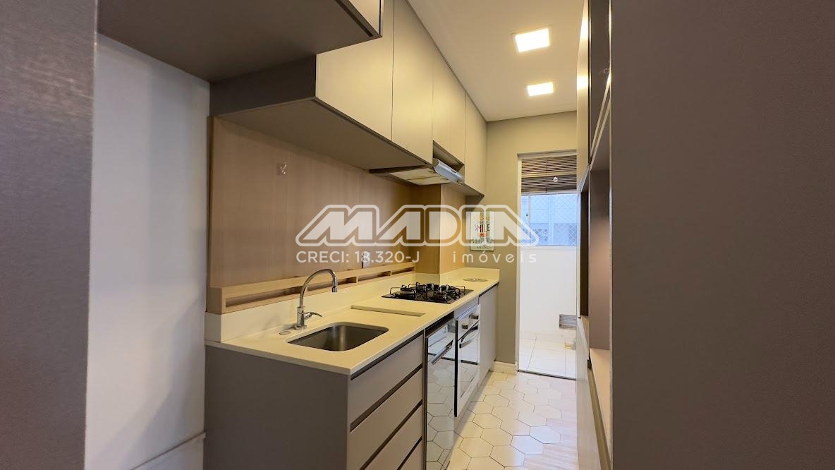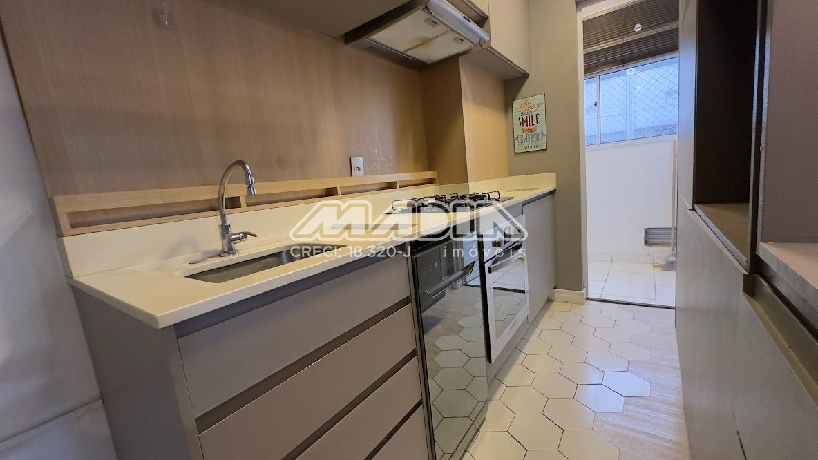 O apartamento é rico em armários, com acabamento de personalizado, 2 dormitórios com armários embutidos e cortinas sendo 1 com ventilador de teto, cabeceira e criados mudo, banheiro com box blindex e armário, sala com teto rebaixado ventilador de teto com sacada de vidro e cortina, com vista livre para mata, rack com painel, sala de jantar com uma das paredes em espelho, cozinha planejada com forno elétrico, cooktop, coifa, lavanderia com armários, piso laminado, 1 vaga de garagem cobertas.
