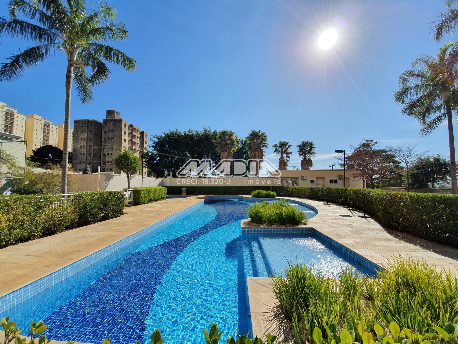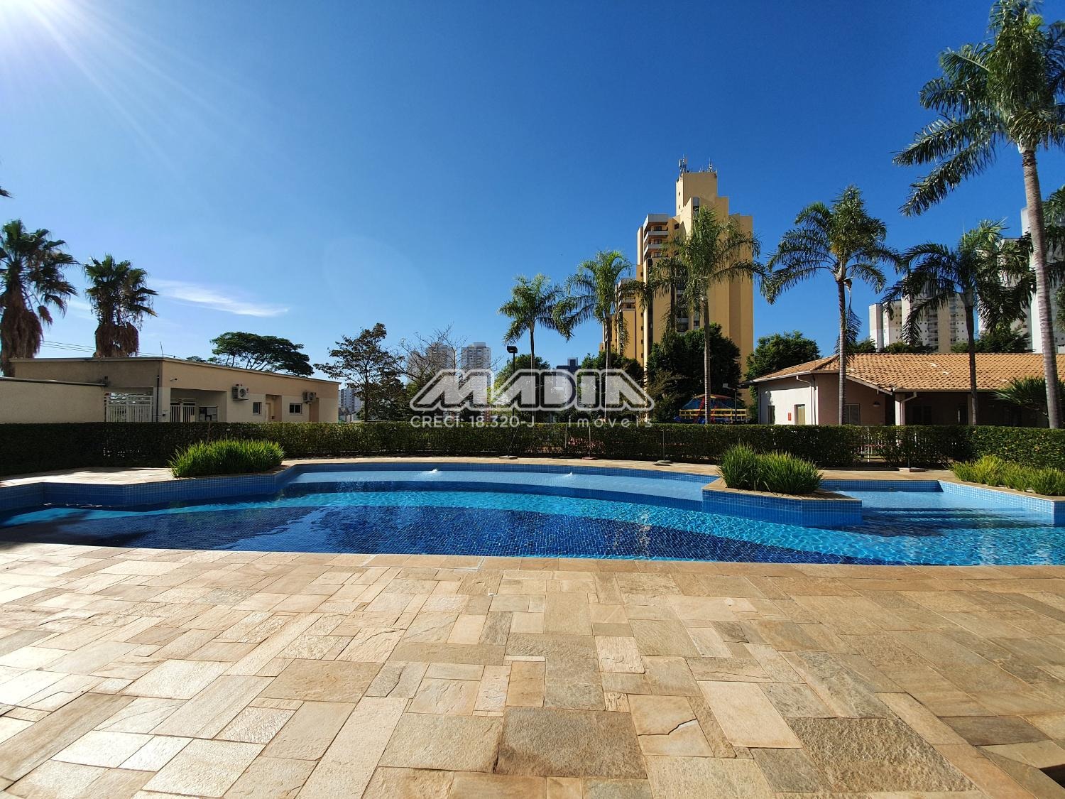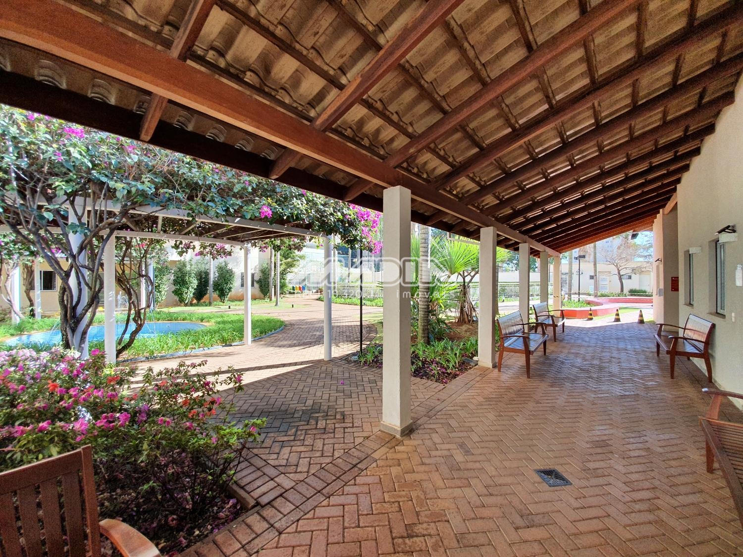 Condomínio com lazer completo, com piscina, salão de festas, academia, churrasqueira e brinquedoteca. -