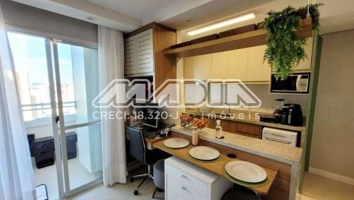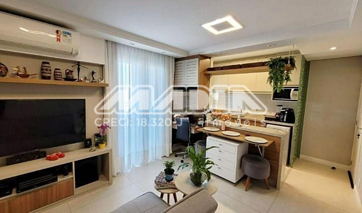 Excelente apartamento com 63m², andar alto com uma vista privilegiada, 2 dormitórios sendo 1 suíte, sala de estar, sala de jantar, varanda fechada com blindex, rico em armários planejados, cozinha integrada com a sala de estar, lavanderia com armários planejados, apartamento possui ar condicionado.