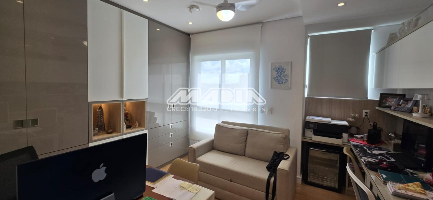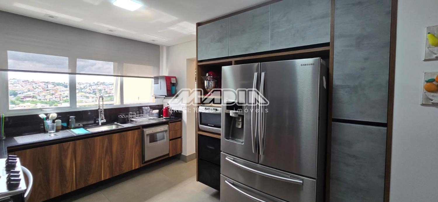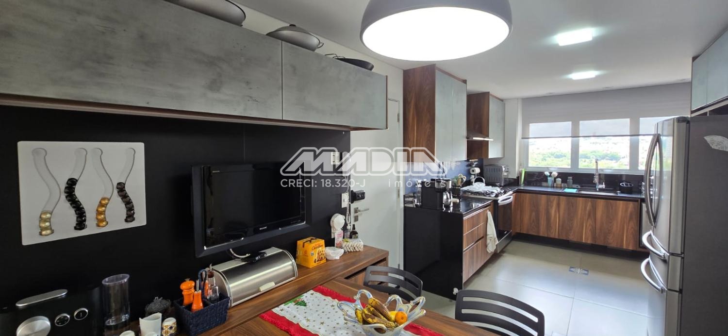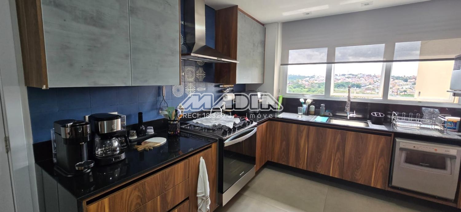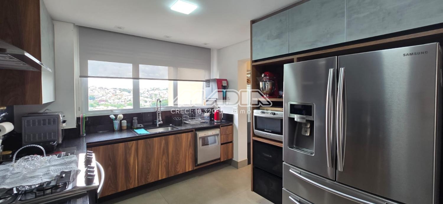 Apartamento com 247 m², com uma vista maravilhosa para cidade de Valinhos, design interior exclusivo composto com living totalmente integrado a área gourmet, sala de estar, jantar, home, adega convidativa e personalizada, hall de entrada, lavabo, 3 suítes riquíssimas em armários planejados, ar condicionado (quartos e escritório), amplo escritório para quem trabalha home office, copa e cozinha planejada com coifa, cooktop, forno elétrico, todos planejados do apartamento são da marca Kitchens com design exclusivo. Varanda gourmet com churrasqueira americana, um lindo jardim vertical, totalmente fechada com blindex . Despensa, lavanderia com armários , banheiro de serviço, 4 vagas cobertas para carros.