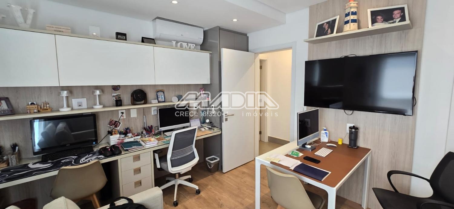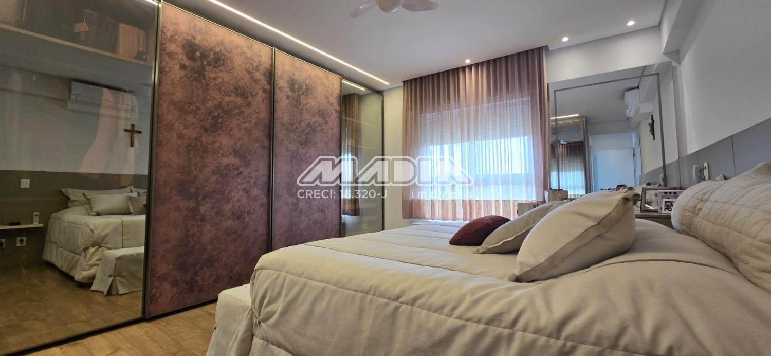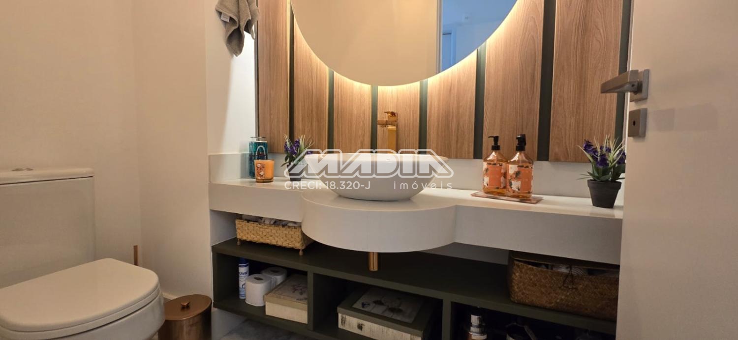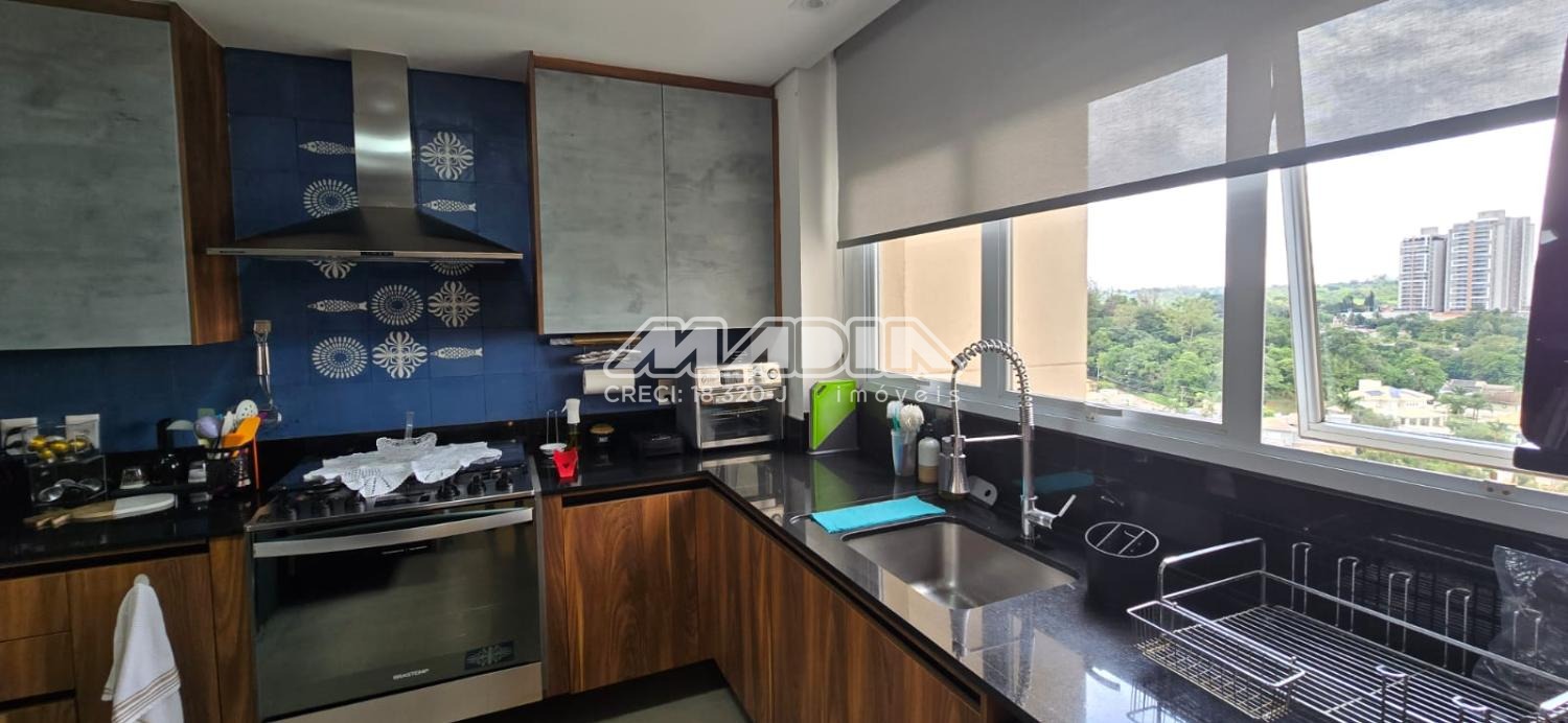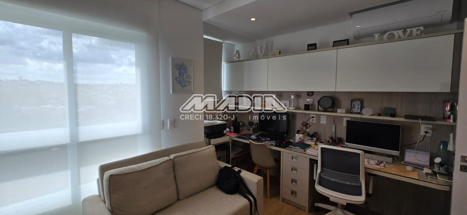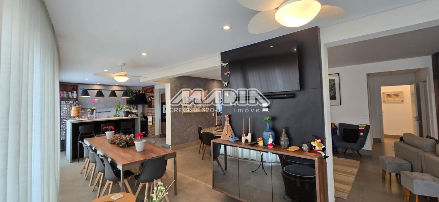 Apartamento com 247 m², com uma vista maravilhosa para cidade de Valinhos, design interior exclusivo composto com living totalmente integrado a área gourmet, sala de estar, jantar, home, adega convidativa e personalizada, hall de entrada, lavabo, 3 suítes riquíssimas em armários planejados, ar condicionado (quartos e escritório), amplo escritório para quem trabalha home office, copa e cozinha planejada com coifa, cooktop, forno elétrico, todos planejados do apartamento são da marca Kitchens com design exclusivo. Varanda gourmet com churrasqueira americana, um lindo jardim vertical, totalmente fechada com blindex . Despensa, lavanderia com armários , banheiro de serviço, 4 vagas cobertas para carros.