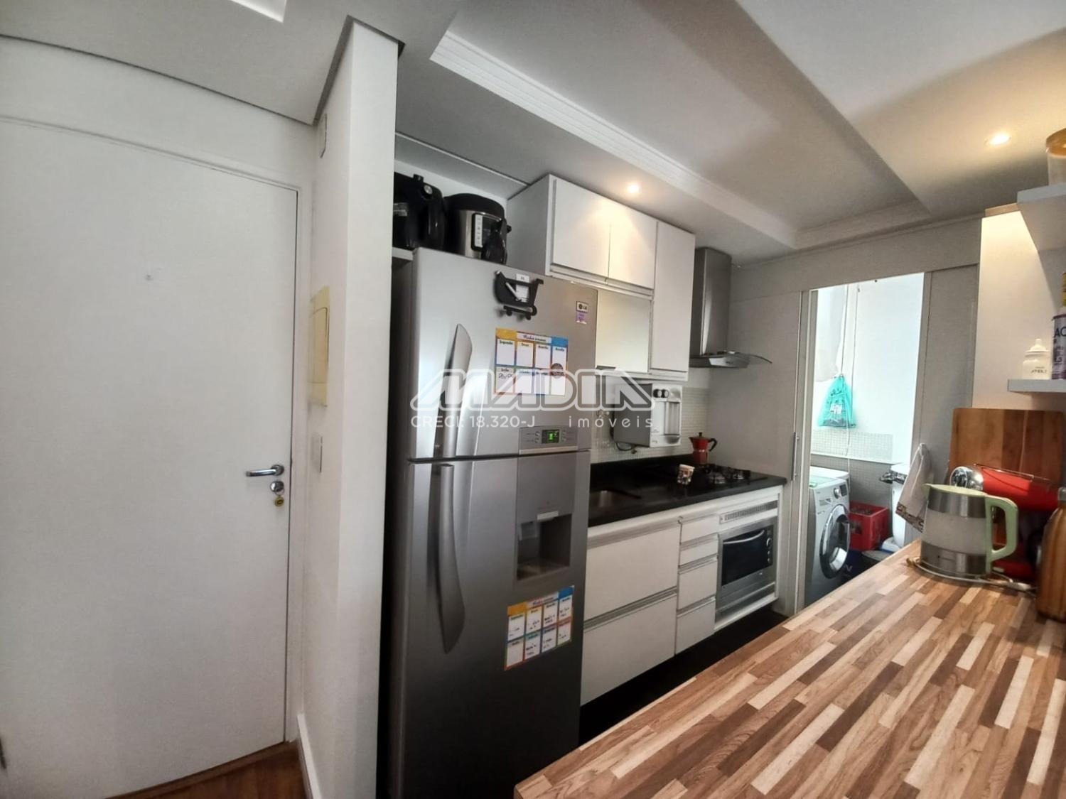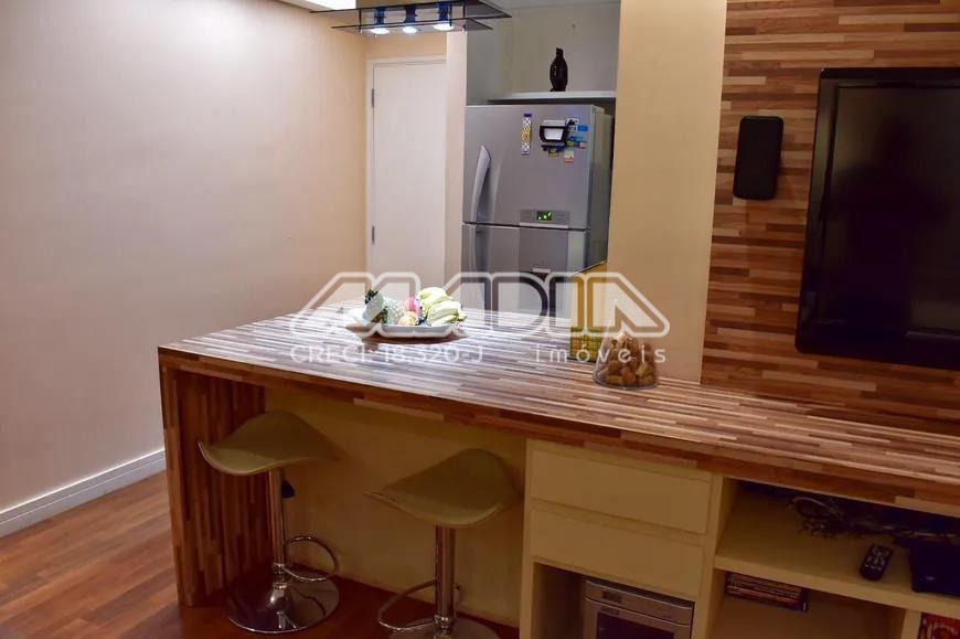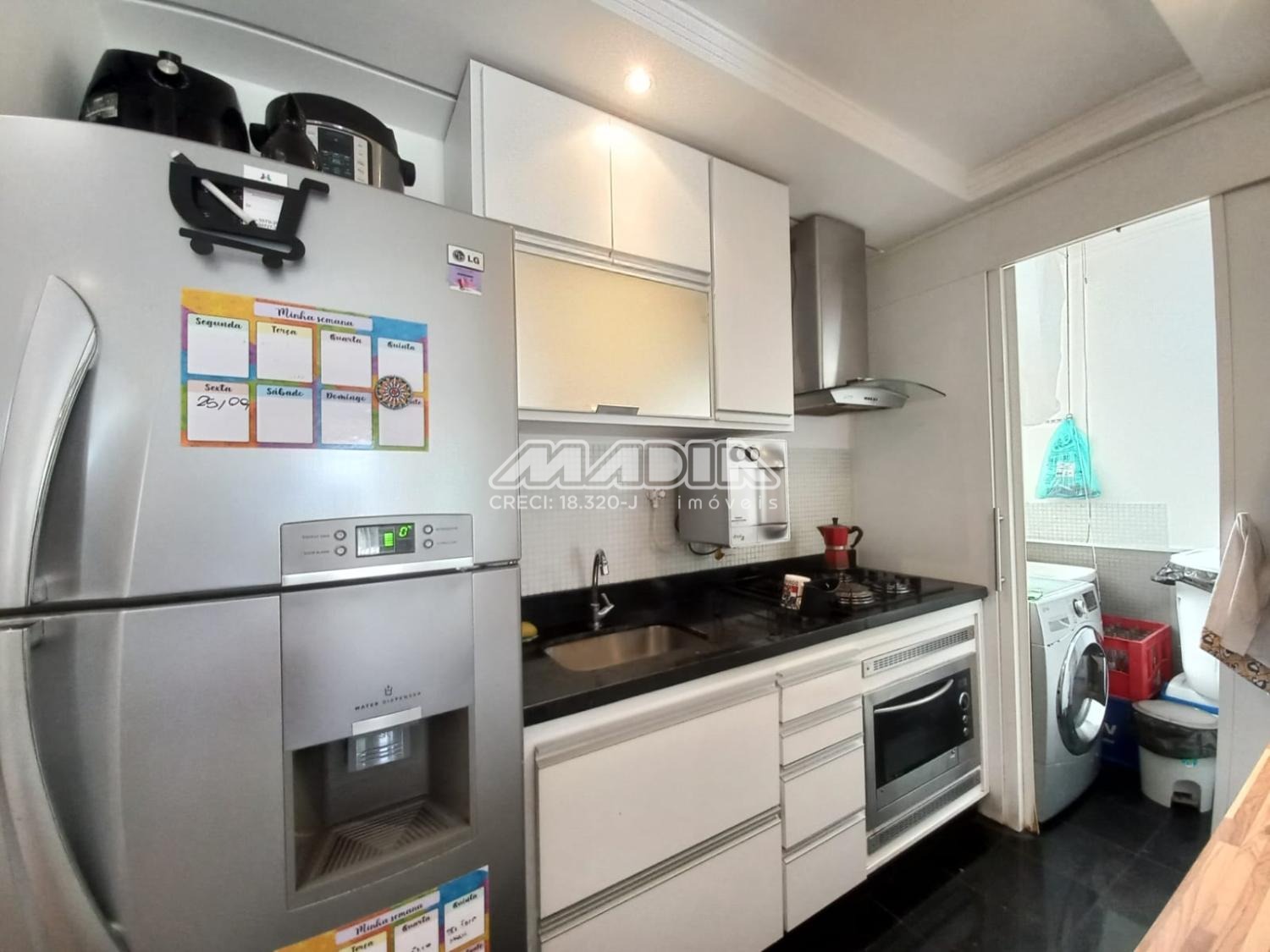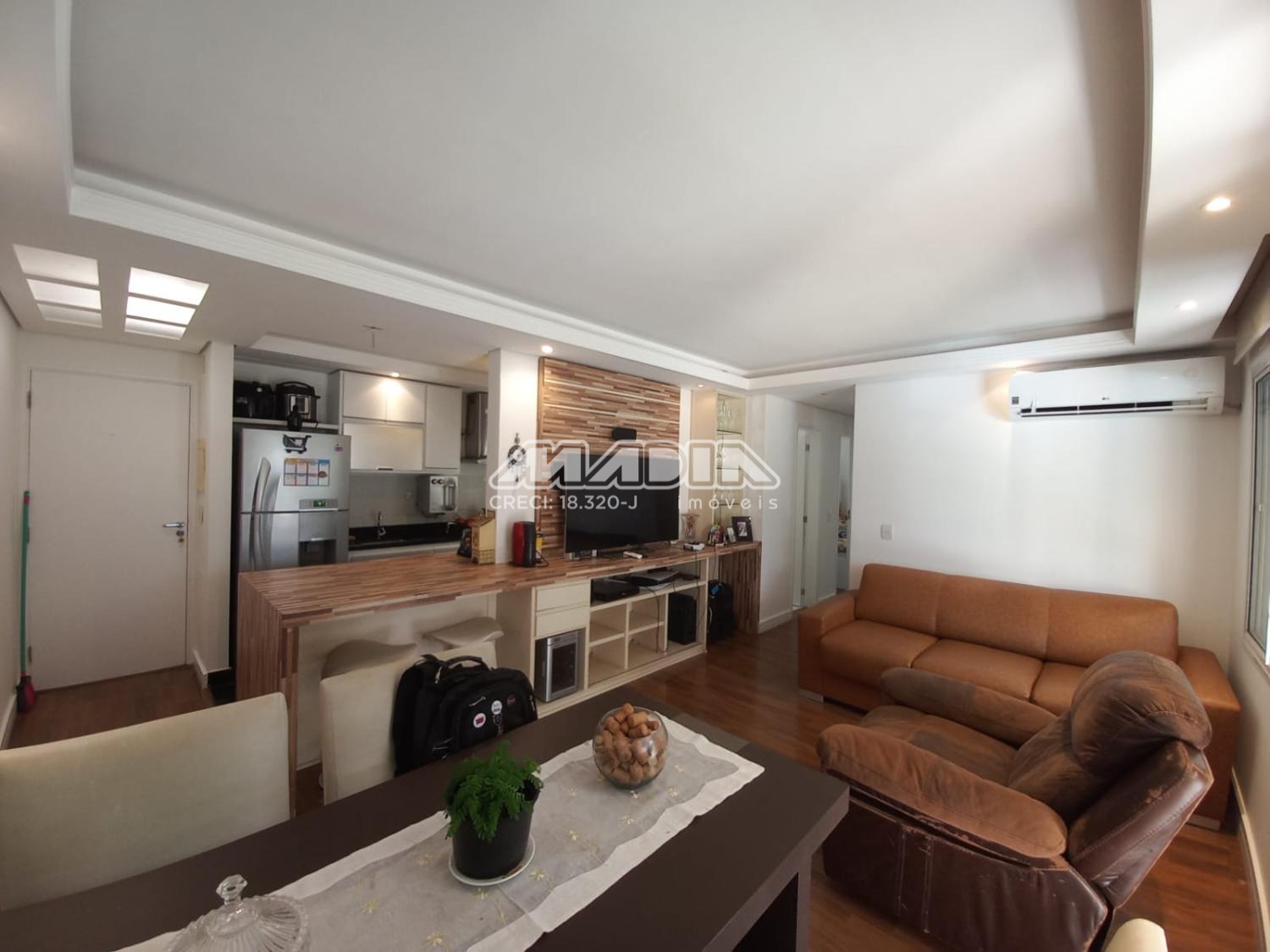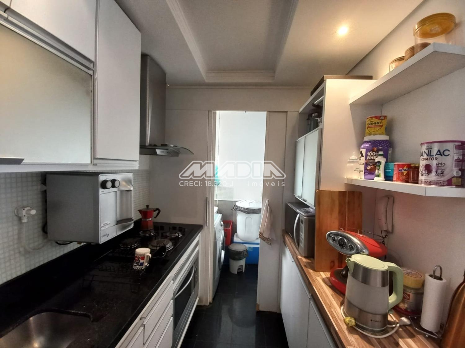 Apartamento todo planejado, 76 m², amplo living para 2 ambiente com ar condicionado, sacada gourmet com churrasqueira com fechamento em vidro, cozinha americana planejada com cooktop, forno e coifa, lavanderia com armários e separada com porta de marcenaria.