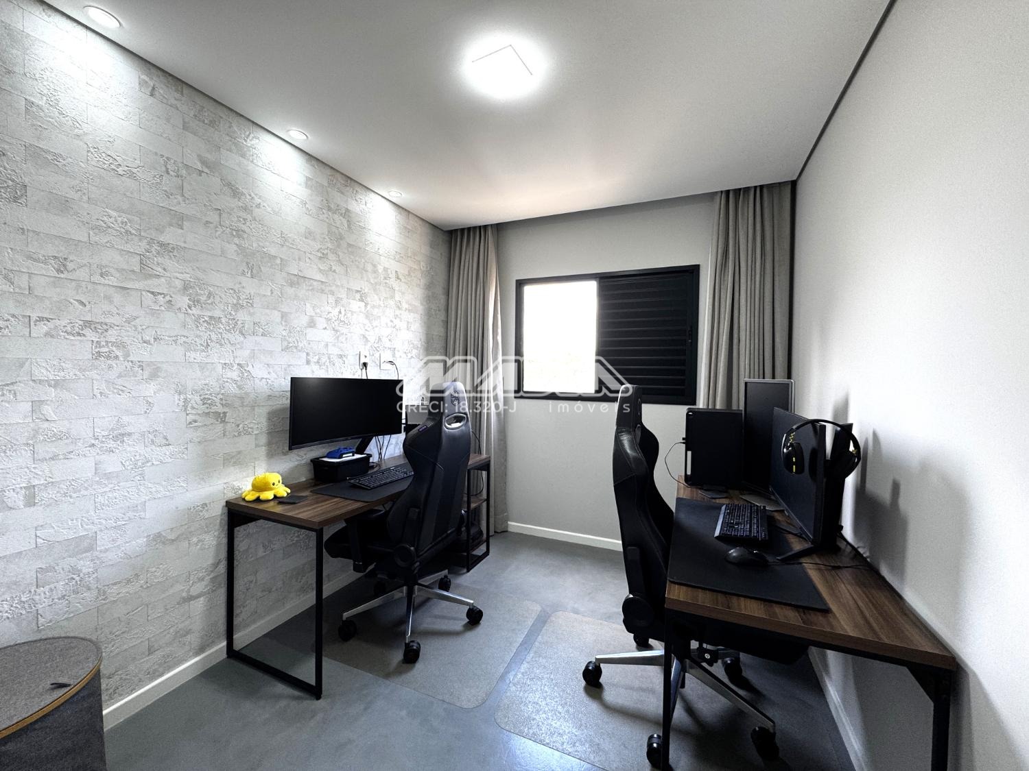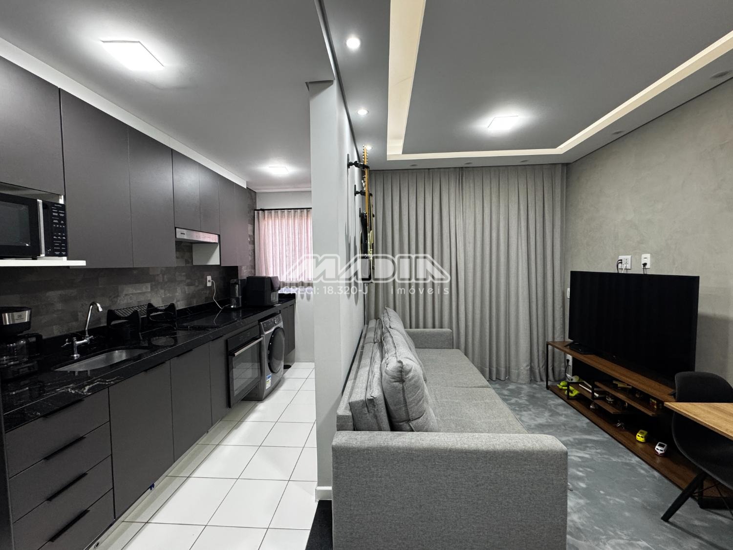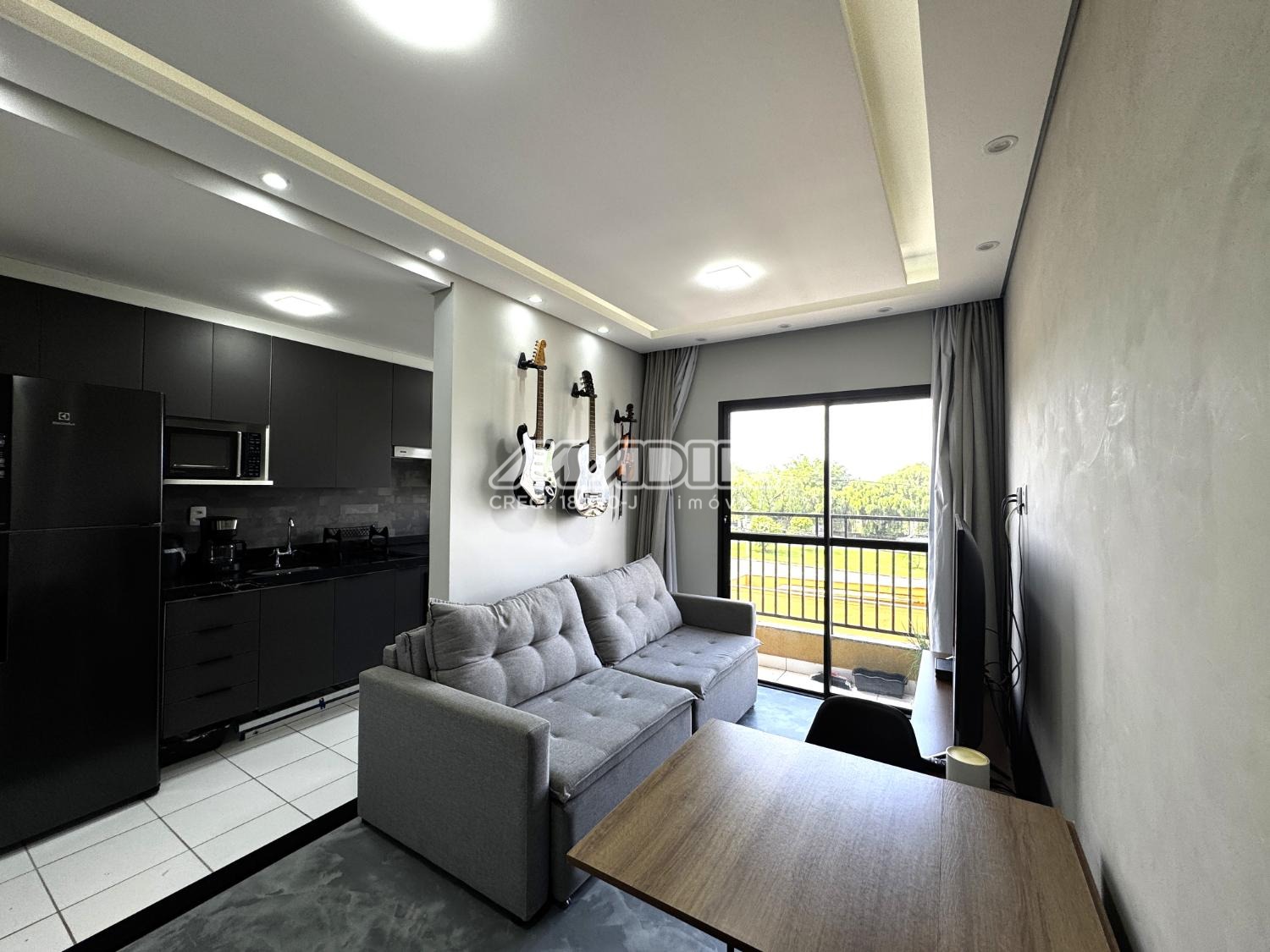 Descubra este apartamento moderno no Residencial Valencia, em Valinhos. São 2 dormitórios com fechamento de blackout 100% e revestimento de pedra natural, sendo um deles com armário planejado para melhor organização. A sala também conta com cortina blackout 100% e parede de cimento queimado, integrada à varanda para um ambiente amplo e contemporâneo. O banheiro é equipado com chuveiro elétrico. A cozinha é planejada, rica em armários, conforto excelente aproveitamento de espaço. A iluminação completa inclui spots nos ambientes e LED nos cortineiros, enquanto o teto em gesso cria integração entre a sala e o corredor, com iluminação de LED para um visual moderno. Existe a possibilidade de instalação de ar condicionado e opção de gás GLP, que minimiza custos e oferece facilidade. O imóvel possui uma vaga de garagem descoberta e varanda com espaço para convivência.