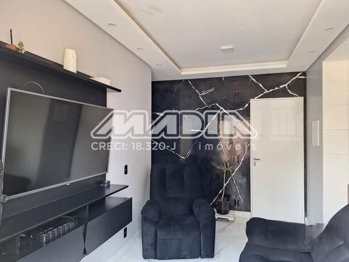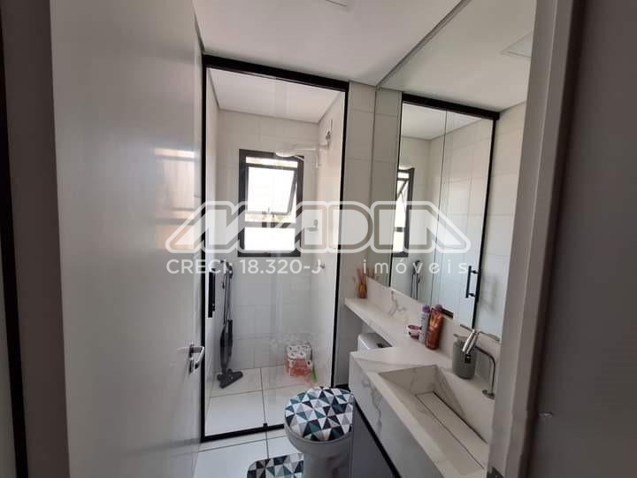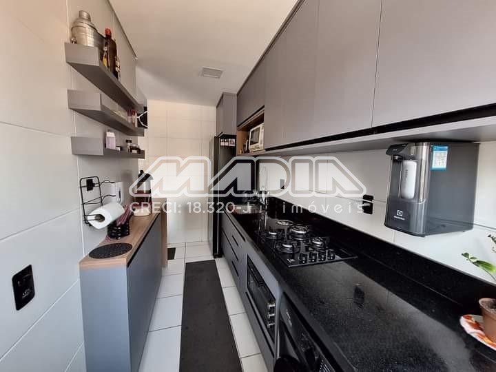 Apartamento praticamente novo, possui sala para 2 ambientes, sacada, 2 dormitórios, sendo uma suíte, banheiro social, cozinha com armários planejados e lavanderia, além de uma vaga de garagem.