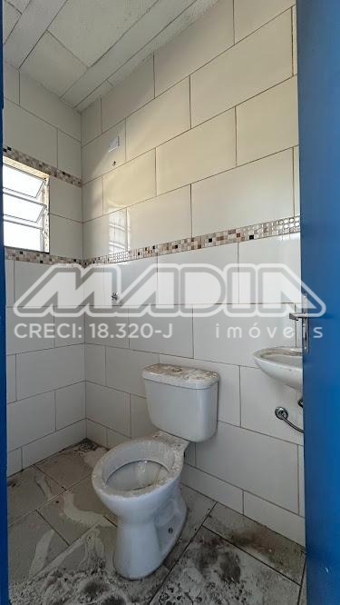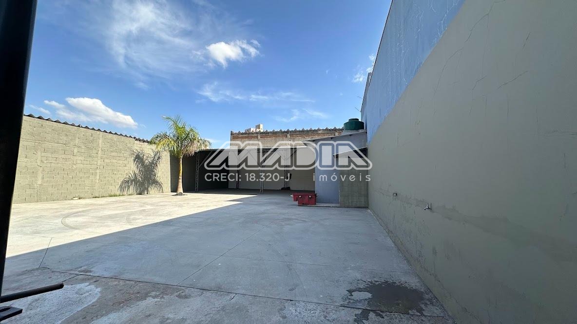 O terreno é plano e possui 450m² com um escritório e 2 banheiros e uma cobertura dando um total de 150m² de construção. O piso é de concreto (15 cm), a frente é fechada com grade e a parte de fora possui vagas para estacionar.