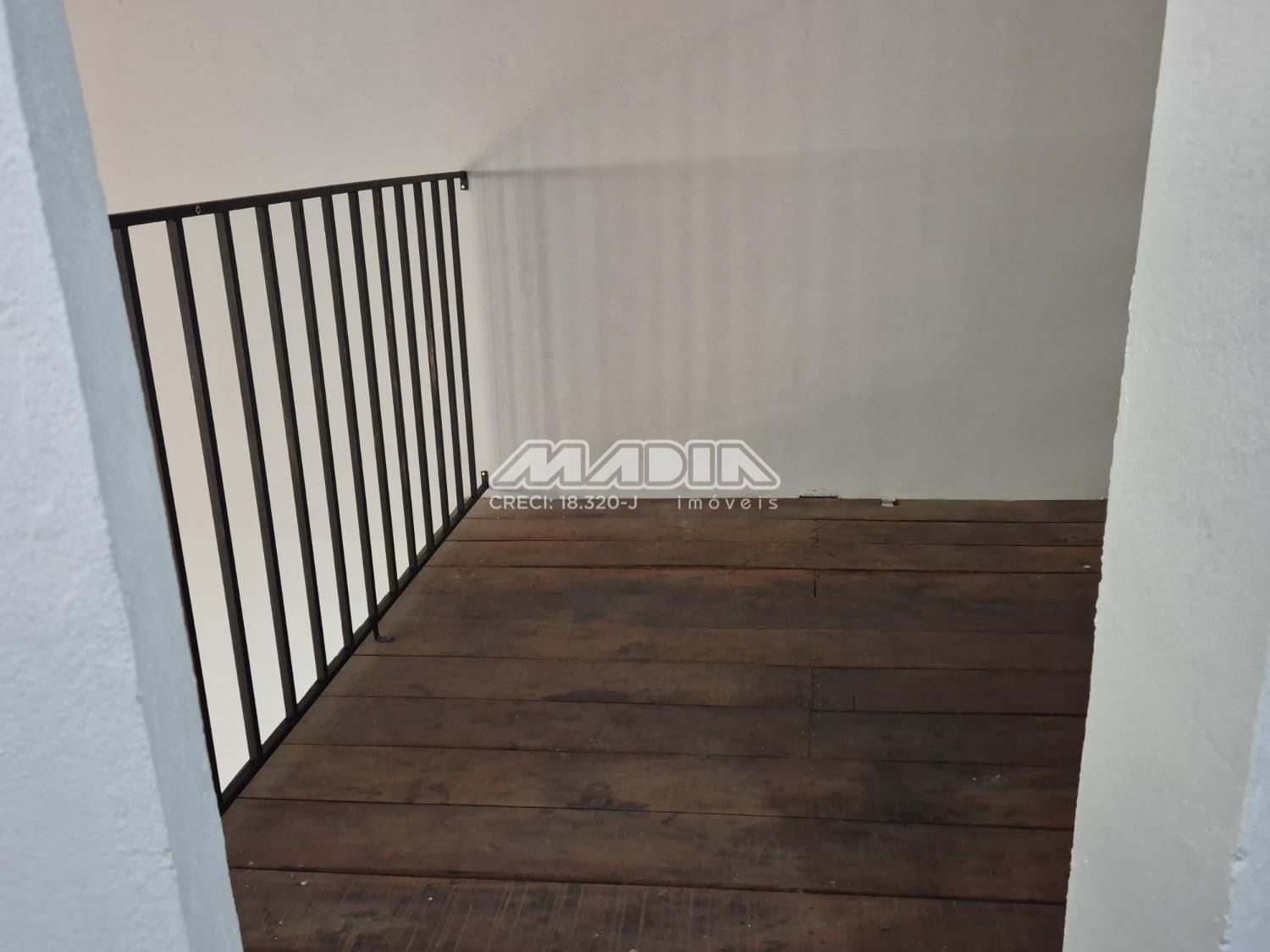 Ampla área térrea e mezanino com duas salas, copa e quatro banheiros no total.