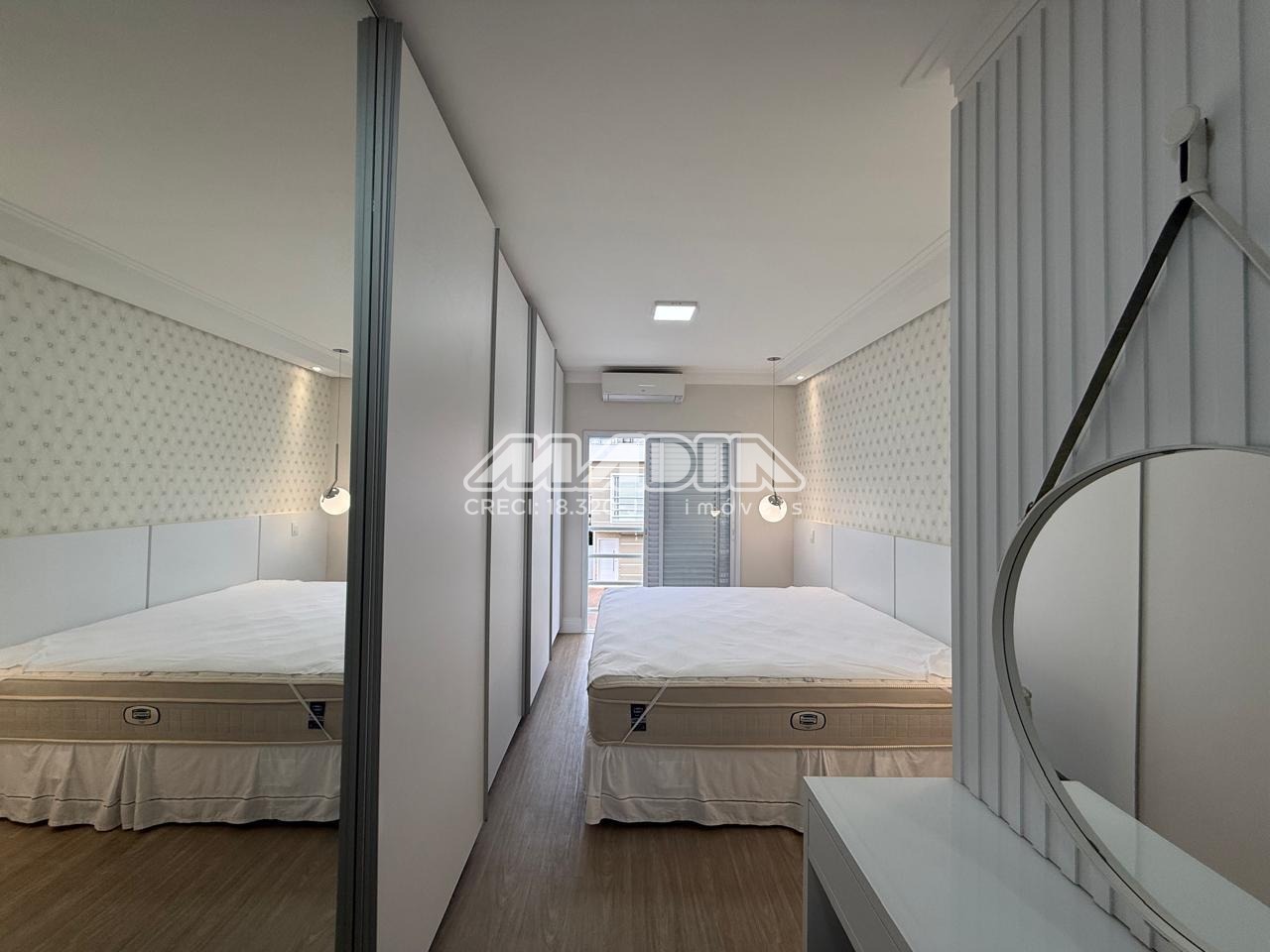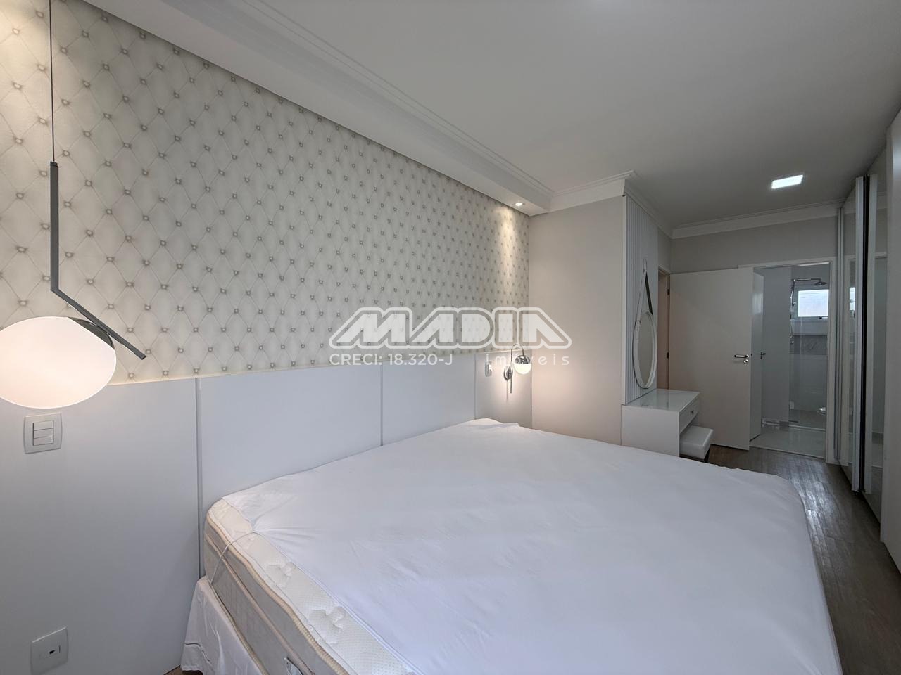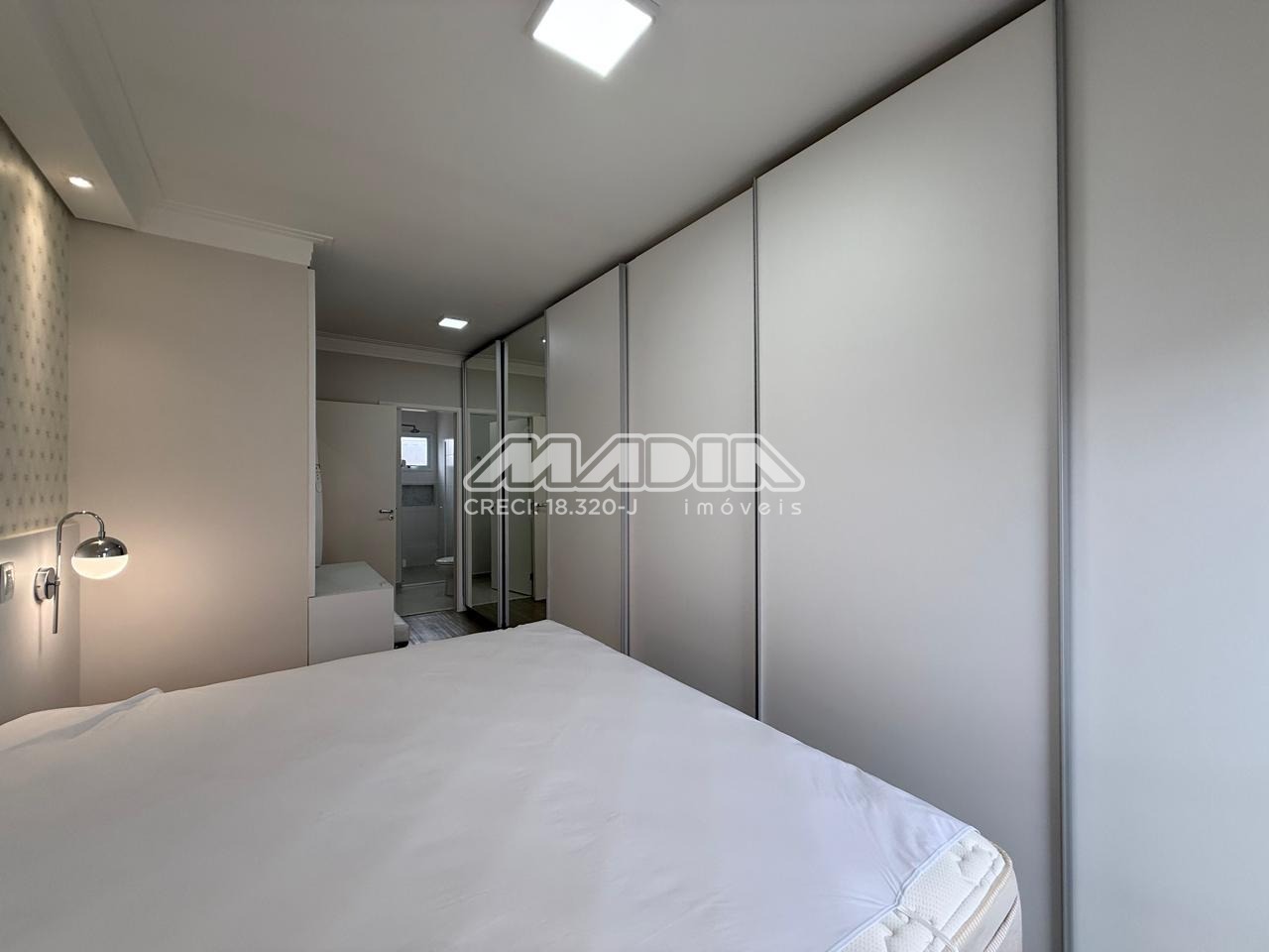 👑 Suíte principal com cama king size e armário planejado de 6 portas