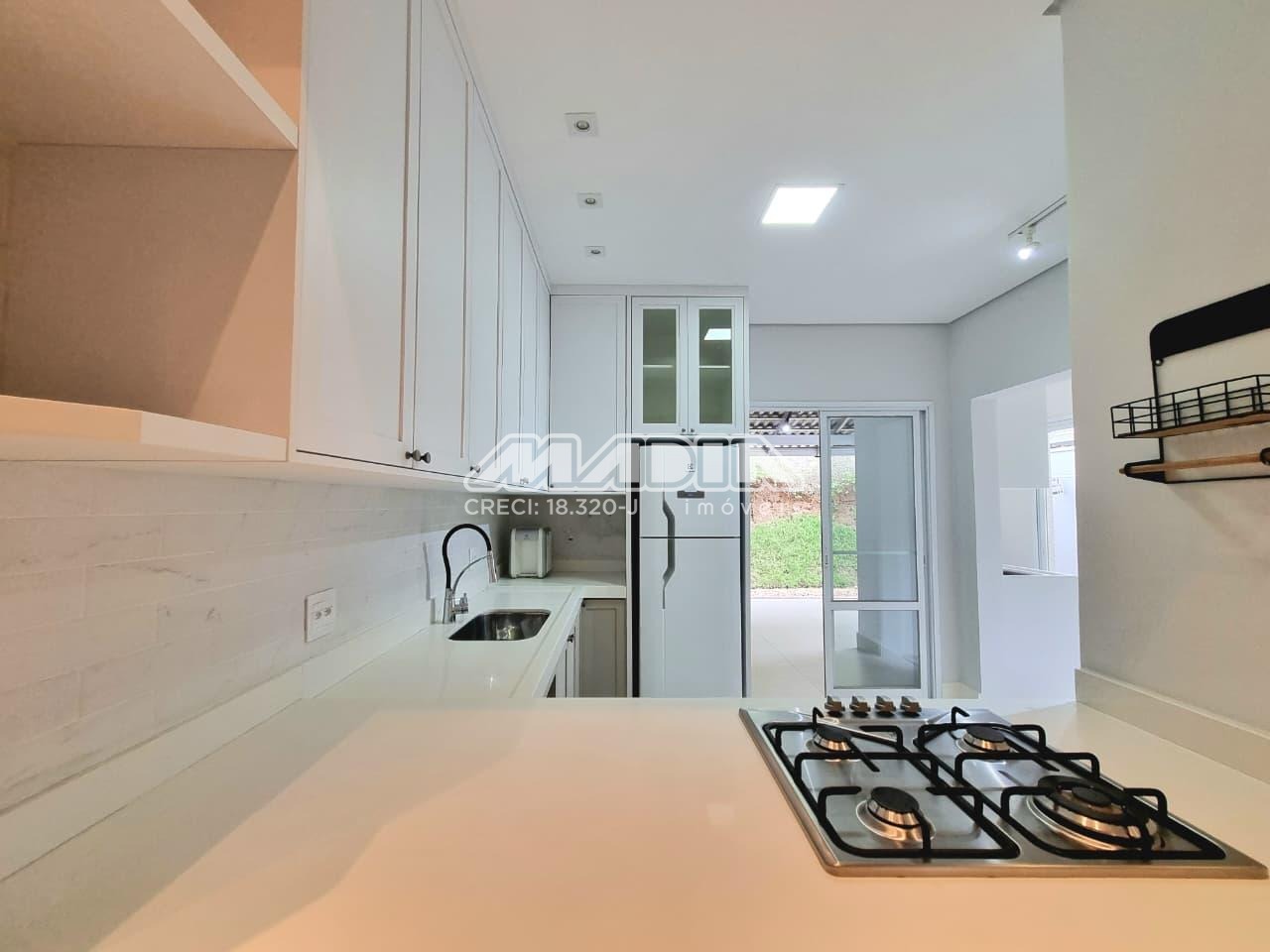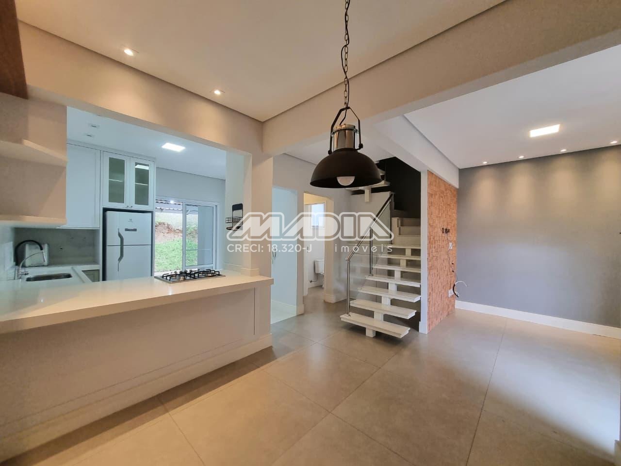 Casa de 108m², 3 dormitórios com armários, sendo 1 suíte, 1 banheiro social, lavabo, 1 sala de TV, 1 sala de jantar, cozinha com armários, cooktop, forno e geladeira, área de serviço com armário, área gournet, 2 vagas de garagens descobertas, aceita pet.