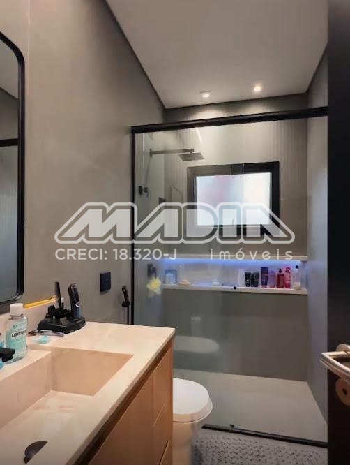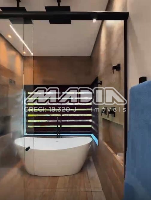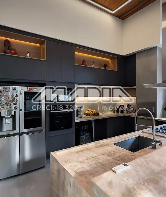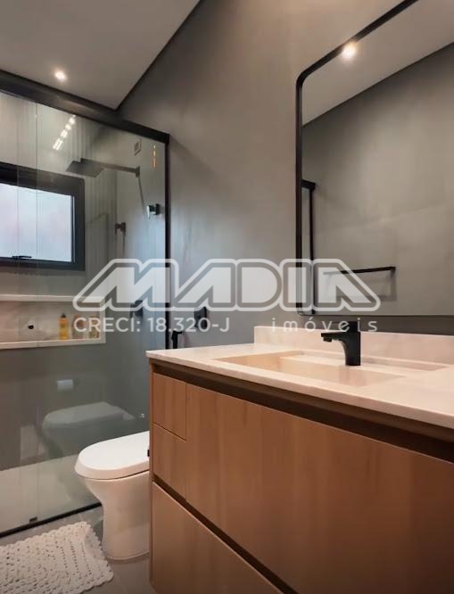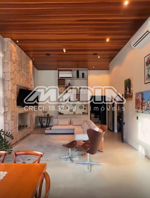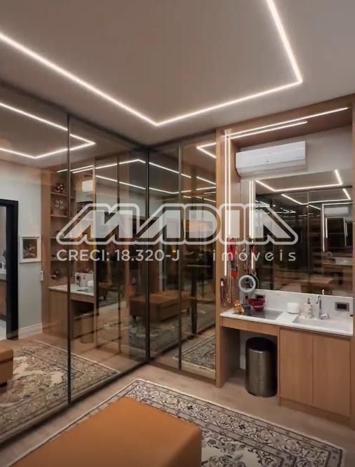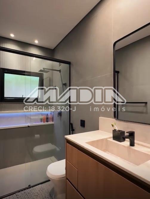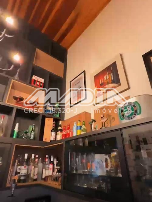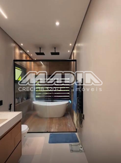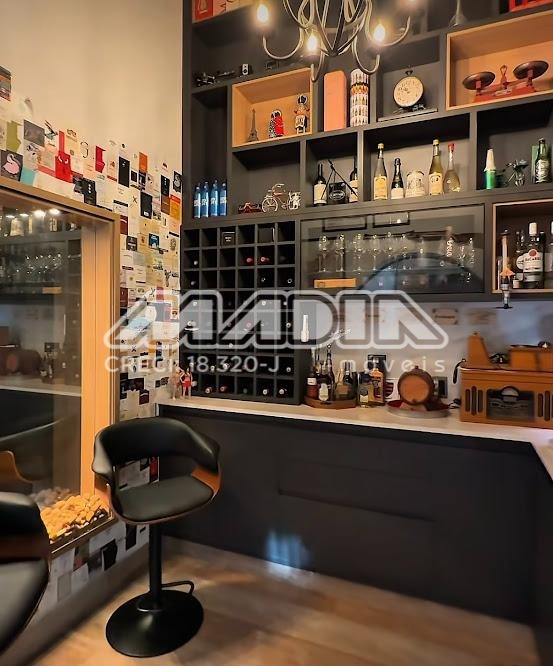 Casa térrea com 400m² de construção e 1.000m² de terreno, com 4 suítes, sendo a máster com closet, e todos as outras suítes com armários, sala de estar com lareira, sala de jantar, em um ambiente amplo, pé direito alto, escritório privado, home theater/cinema, banheiro social, lavanderia com armários, área de lazer com piscina, churrasqueira.