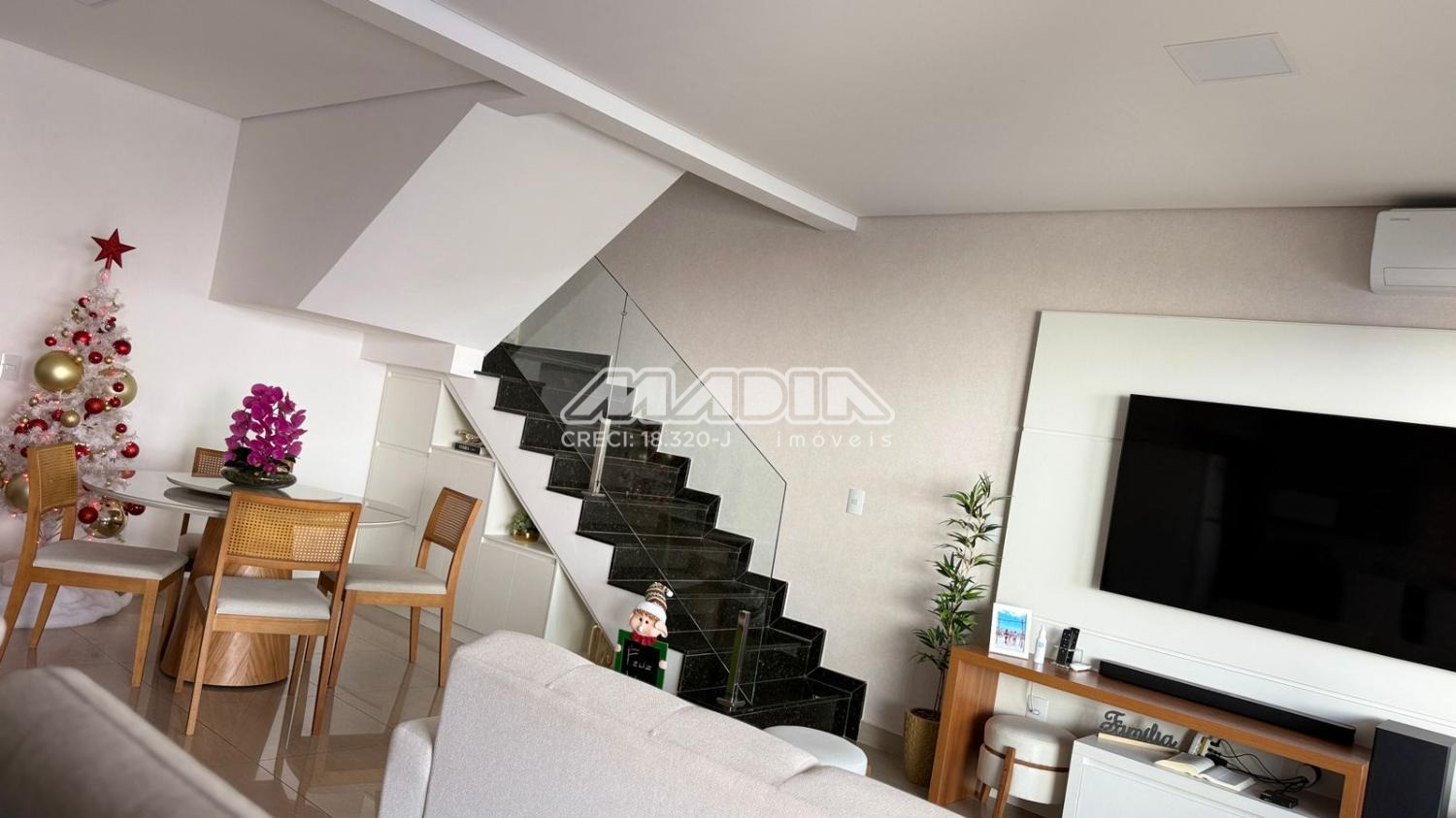 • Sala de TV climatizada, ideal para momentos de descanso e entretenimento