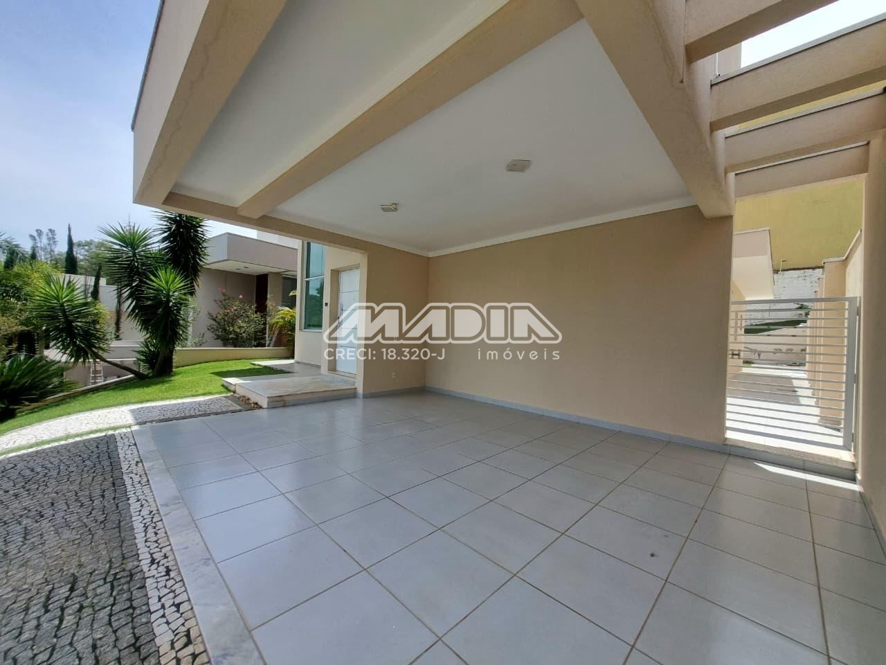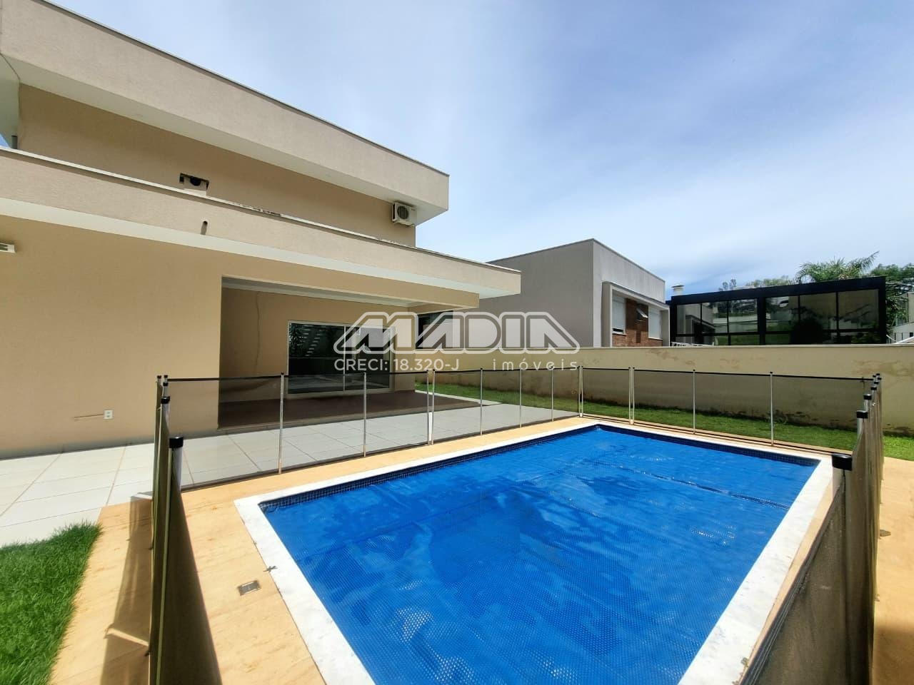 Área gourmet, com churrasqueira, piscina e banheiro, 2 garagens cobertas, aceita pet.