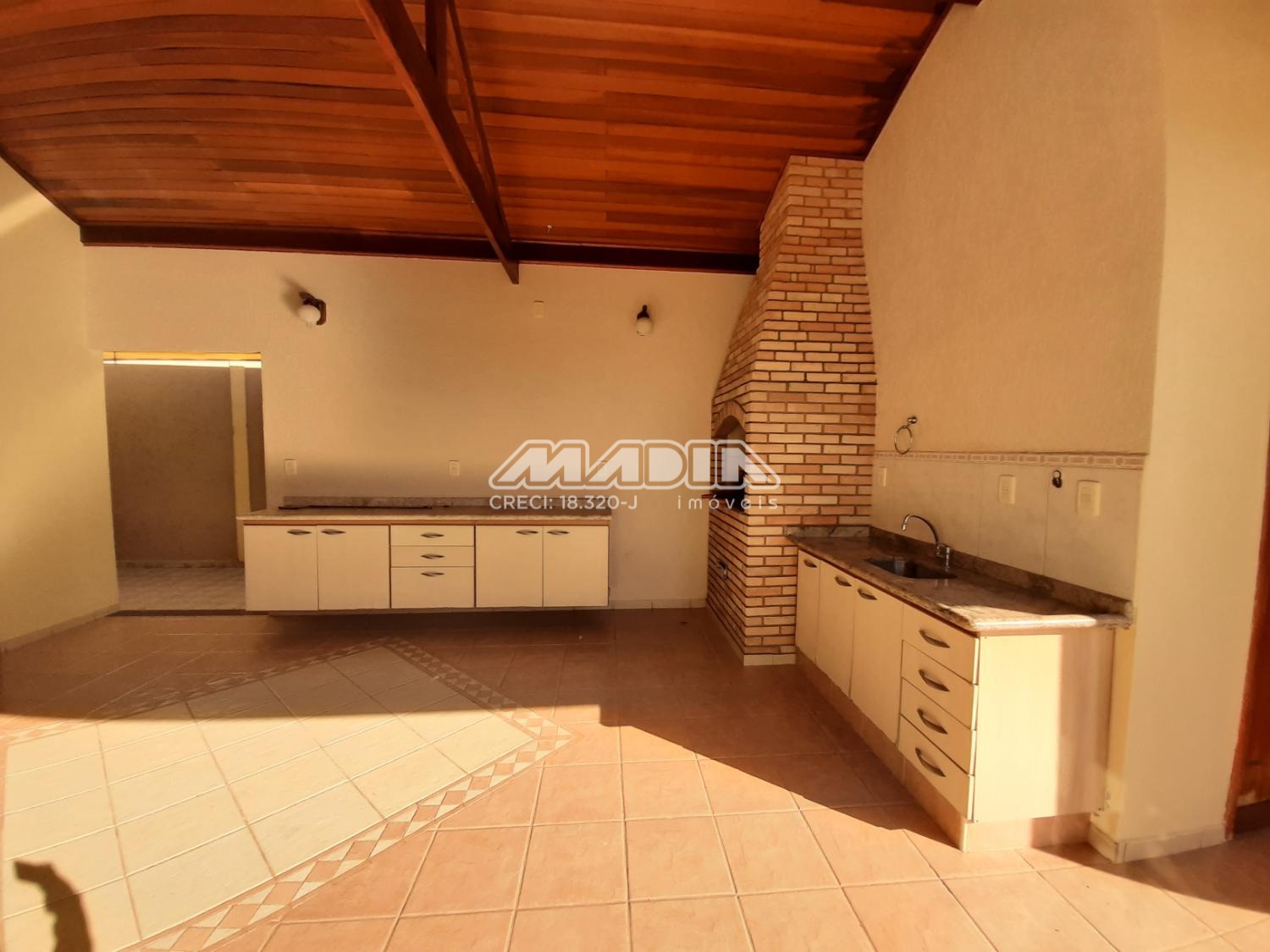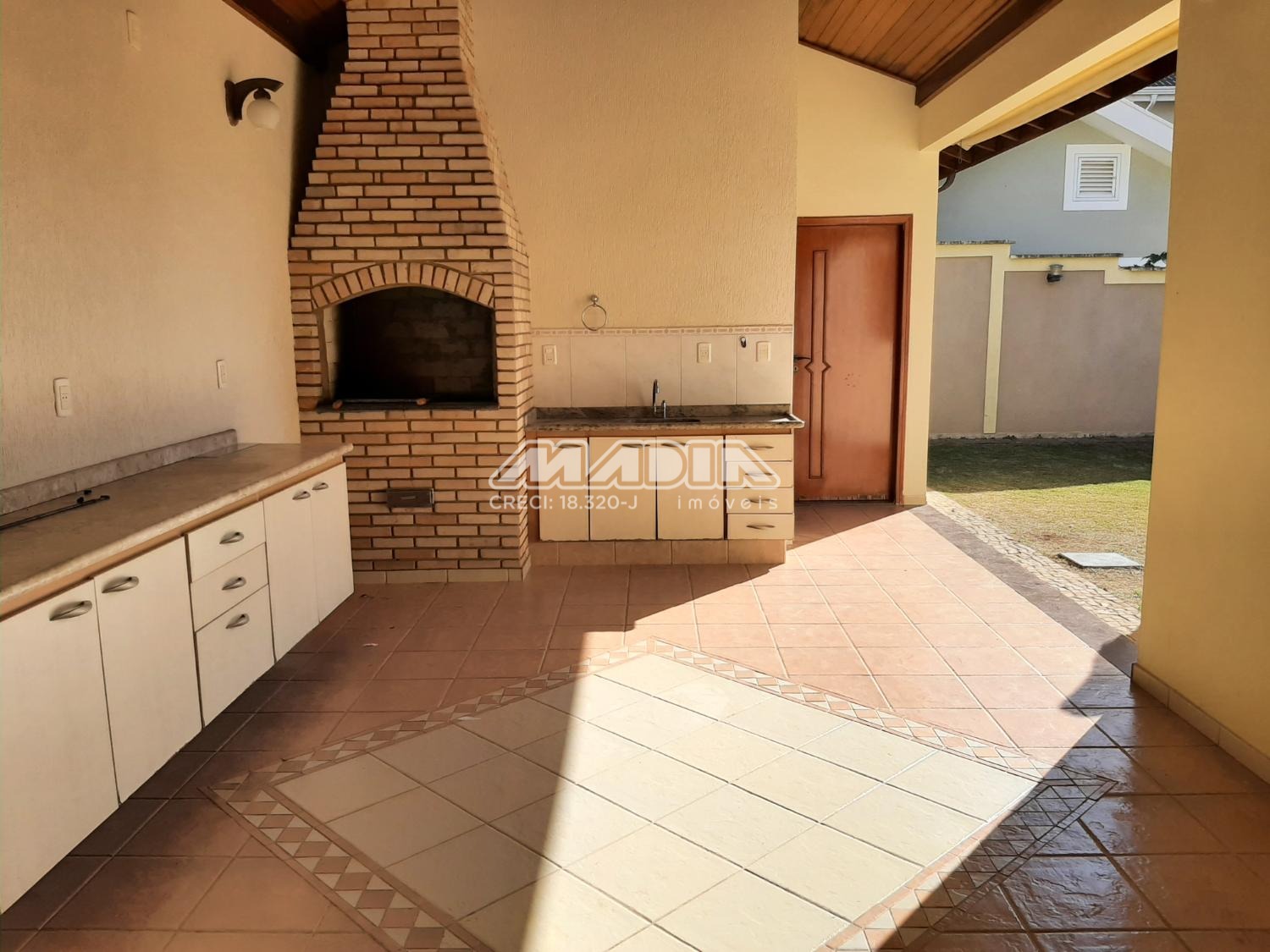 No piso superior, hall, três suítes com armários sendo uma com hidro, e 2 com varanda, mais um dormitório sem armários. Lazer da casa com churrasqueira, quintal gramado.