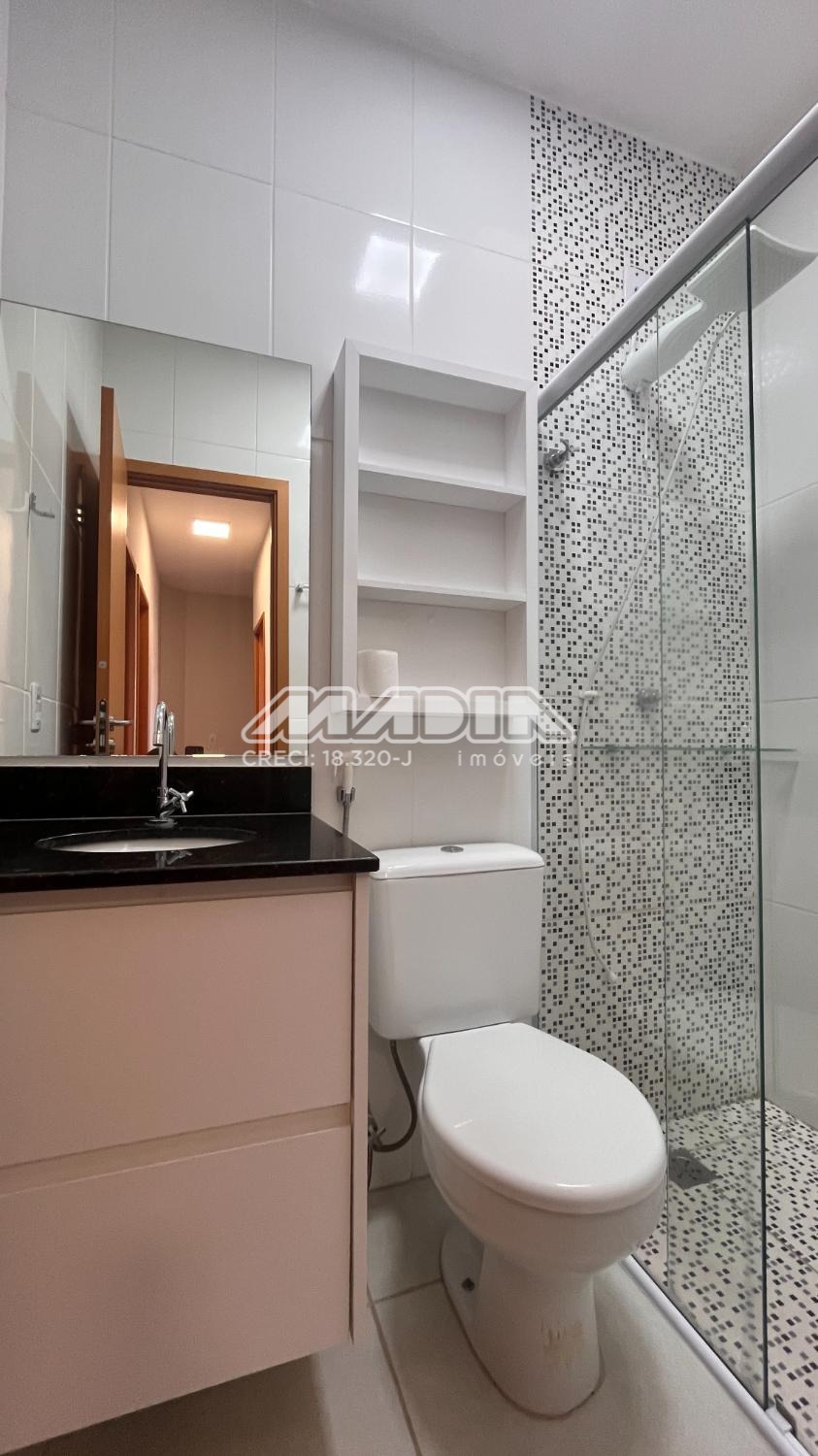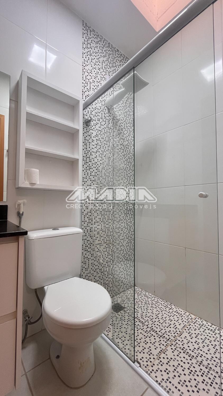Sala dois ambientes, possui 03 quartos, sendo 01 suíte, 1 lavado, banheiro social, varanda, cozinha estilo americana, área de serviço e lavanderia. Quintal com gramado e privacidade. A casa está mobiliada com moveis estruturados e eletrodomésticos para melhor atender à necessidade do dia a dia e oferecendo conforto e praticidade. Duas vagas de garagem. Aceita Pet.