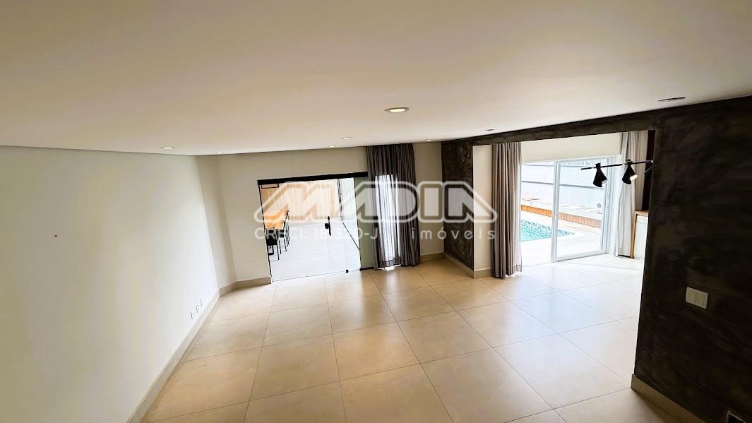 Salas de TV, estar e jantar integradas, em conceito aberto