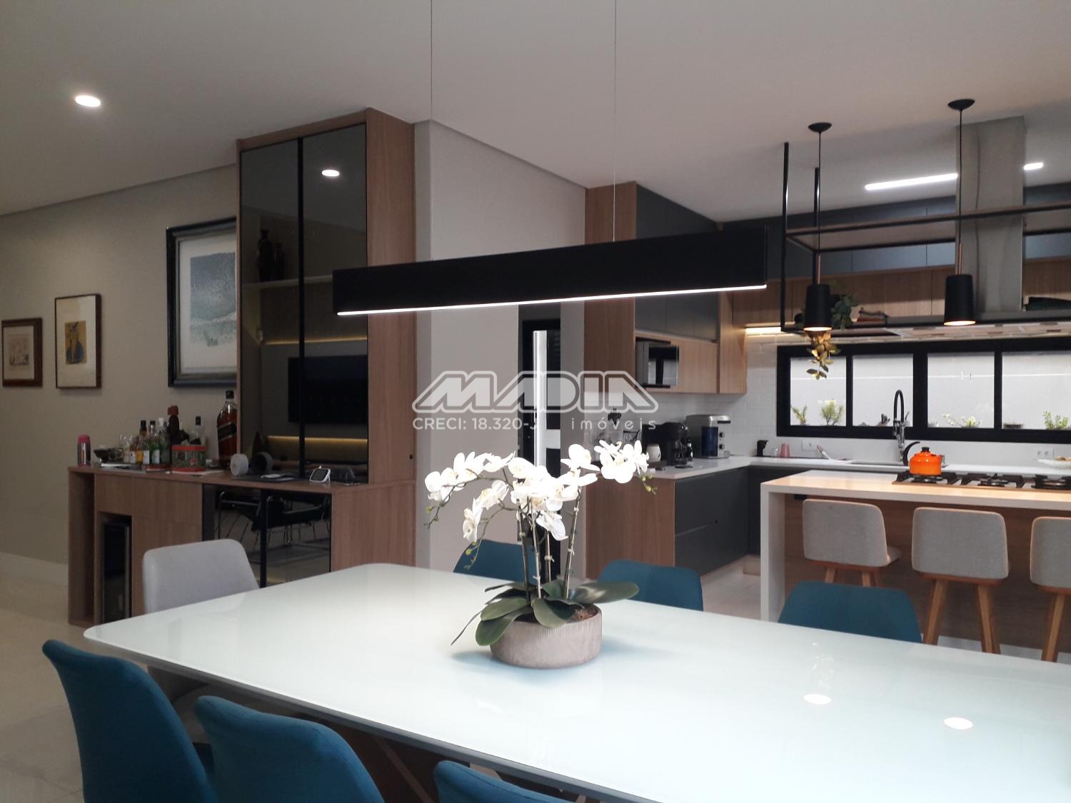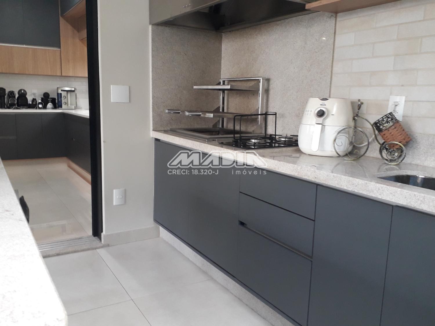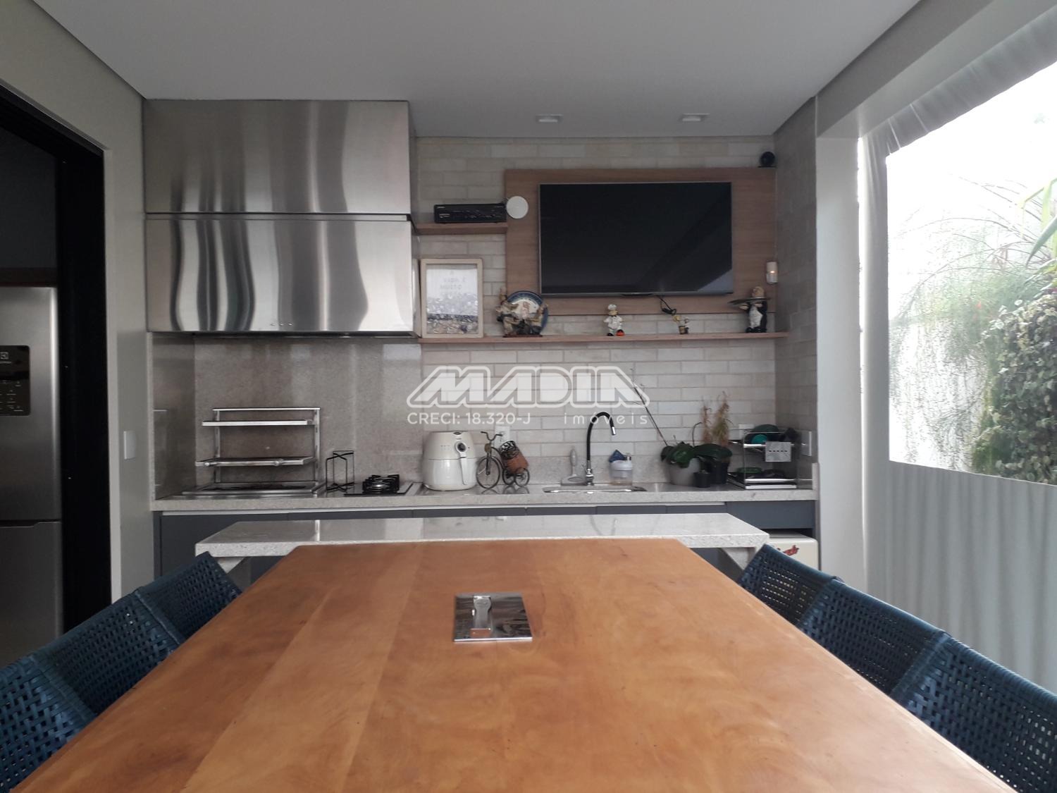 A área gourmet integrada à piscina e ao paisagismo compõe um espaço exclusivo para momentos memoráveis. A cozinha, totalmente equipada e com ilha central, traduz funcionalidade e estética contemporânea.