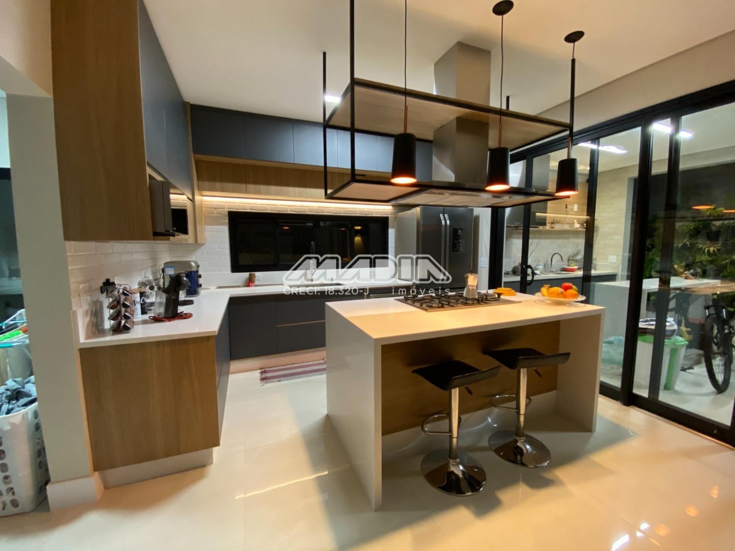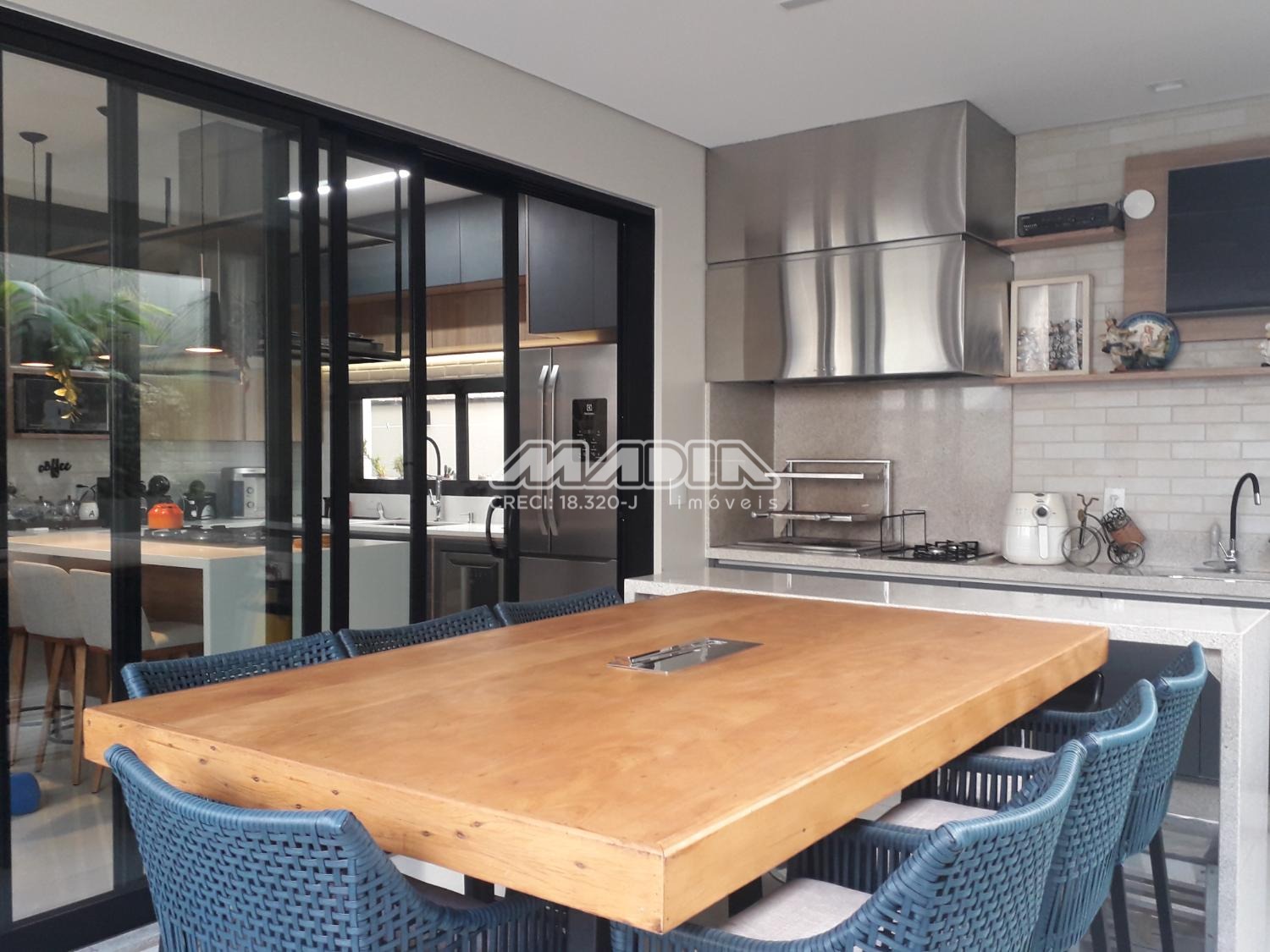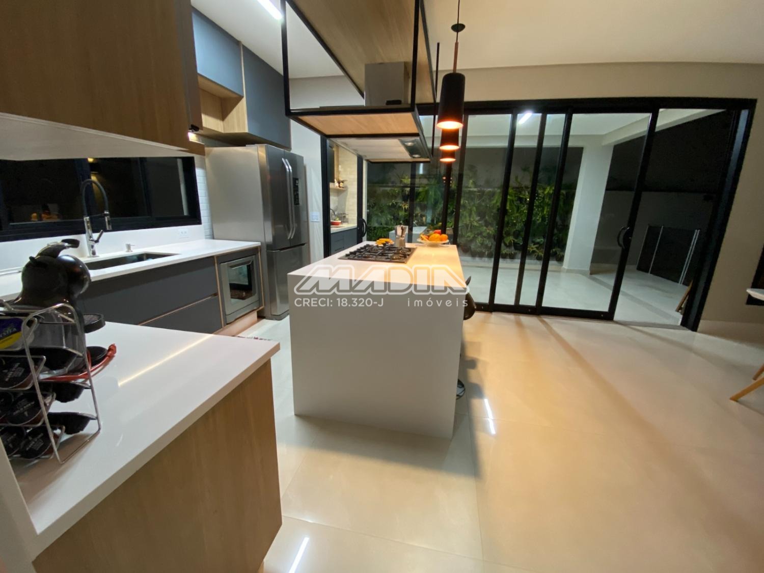 A área gourmet integrada à piscina e ao paisagismo compõe um espaço exclusivo para momentos memoráveis. A cozinha, totalmente equipada e com ilha central, traduz funcionalidade e estética contemporânea.