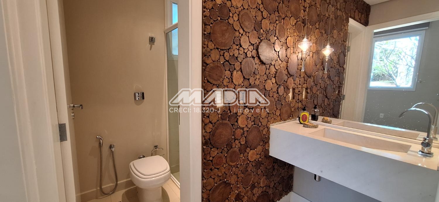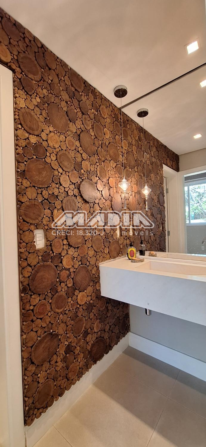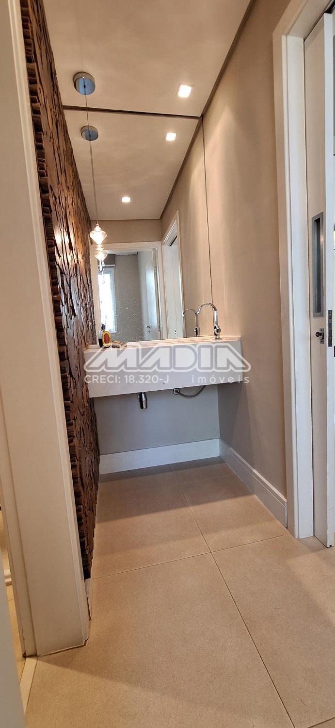 Com 3 suítes e armários planejados, e na principal closet e varanda, roupeiro no corredor de acesso aos quartos, o escritório já montado com armários planejados, podendo reverter para outro dormitório, 1 lavabo, cozinha planejada, despensa, lavanderia, e banheiro de empregada.