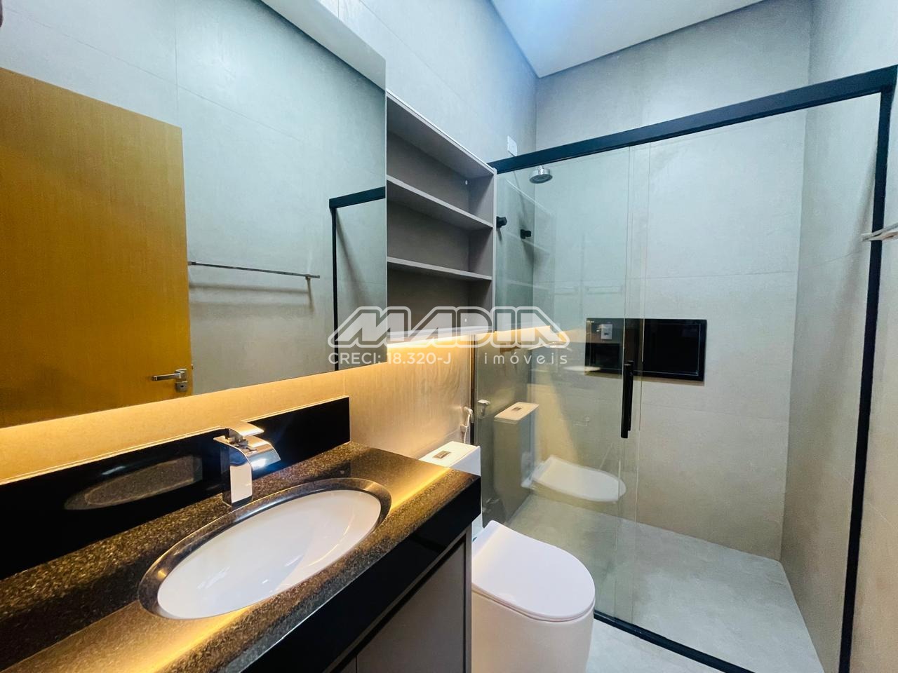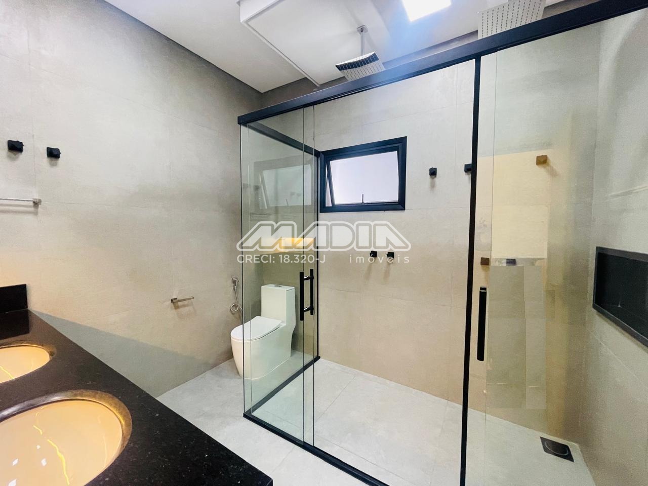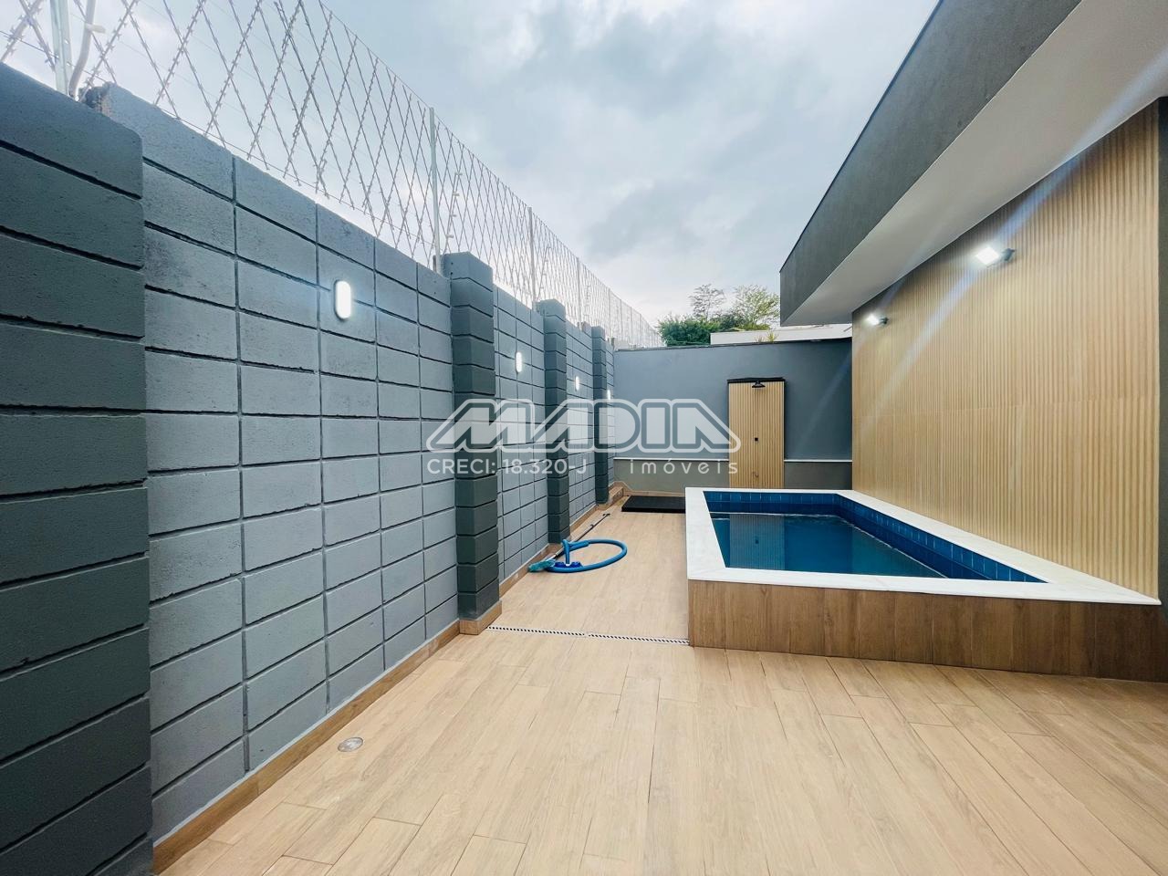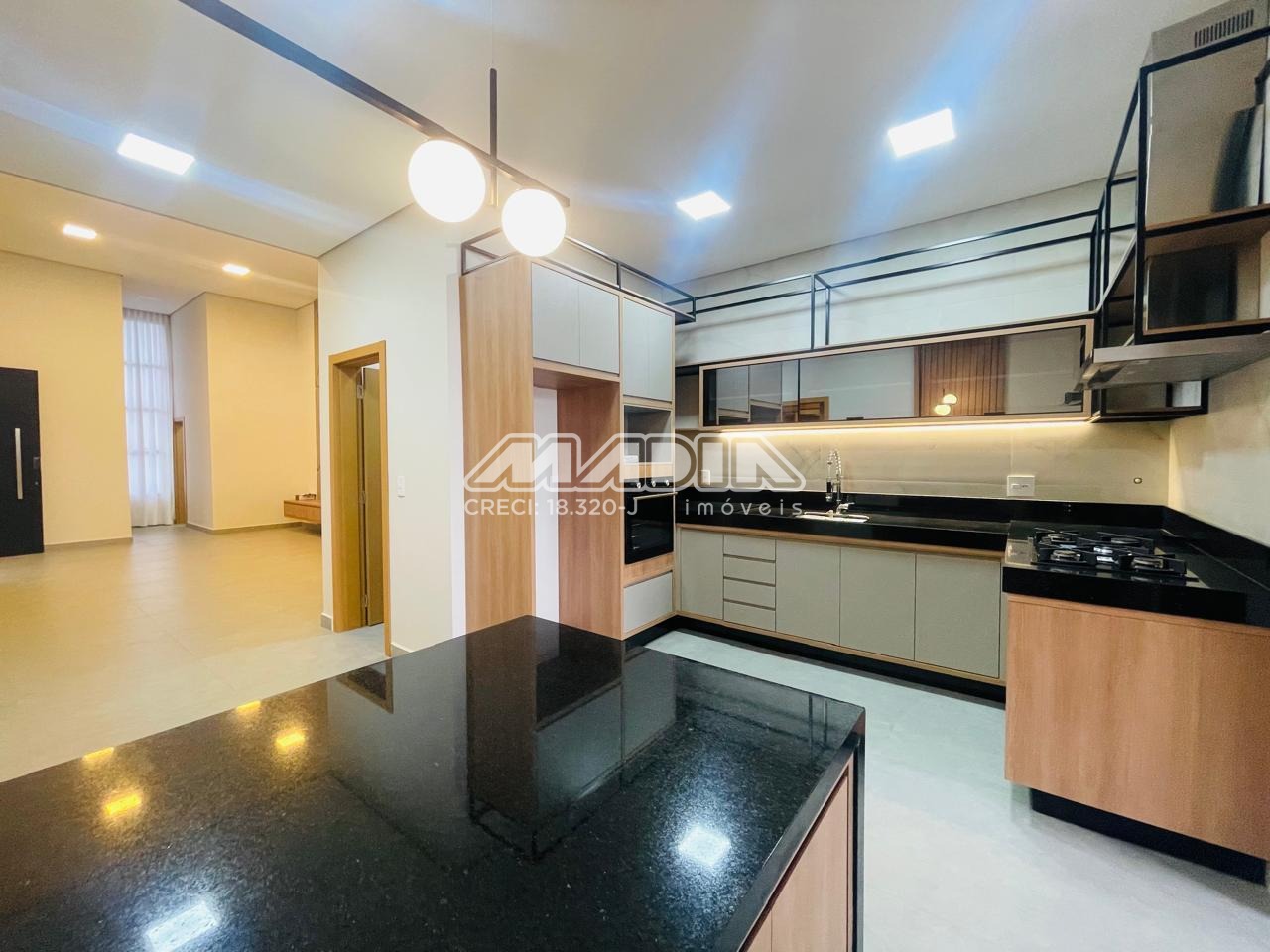 Casa nova e térrea para alugar em condomínio na Cidade de Valinhos. Casa com sala de estar e jantar com pé direito duplo, escritório, lavabo, cozinha planejada e equipada, lavanderia, e três suítes todas com armários. Ar-condicionado na sala, escritório e nas 3 suítes. A área de lazer tem espaço gourmet e piscina. 4 vagas de garagem, sendo 2 cobertas. Aceita pet de pequeno porte.
