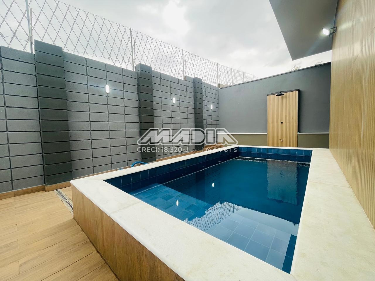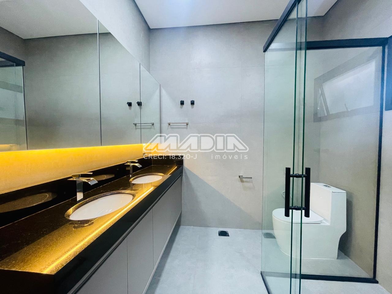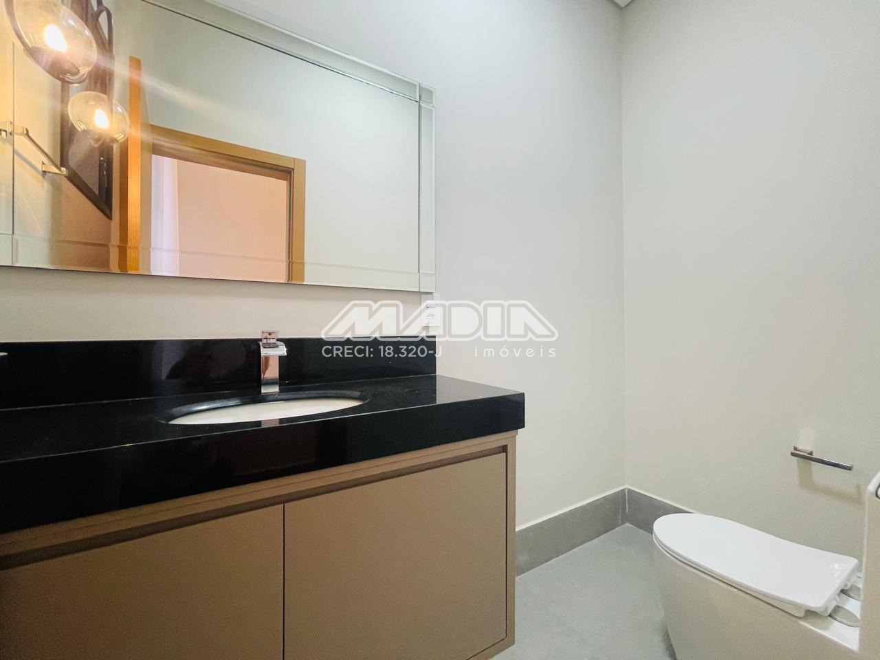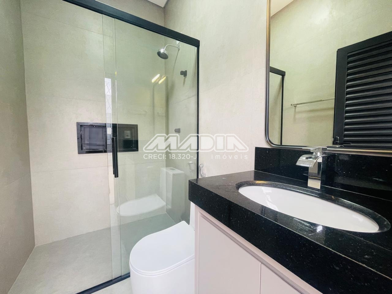 Casa nova e térrea para alugar em condomínio na Cidade de Valinhos. Casa com sala de estar e jantar com pé direito duplo, escritório, lavabo, cozinha planejada e equipada, lavanderia, e três suítes todas com armários. Ar-condicionado na sala, escritório e nas 3 suítes. A área de lazer tem espaço gourmet e piscina. 4 vagas de garagem, sendo 2 cobertas. Aceita pet de pequeno porte.