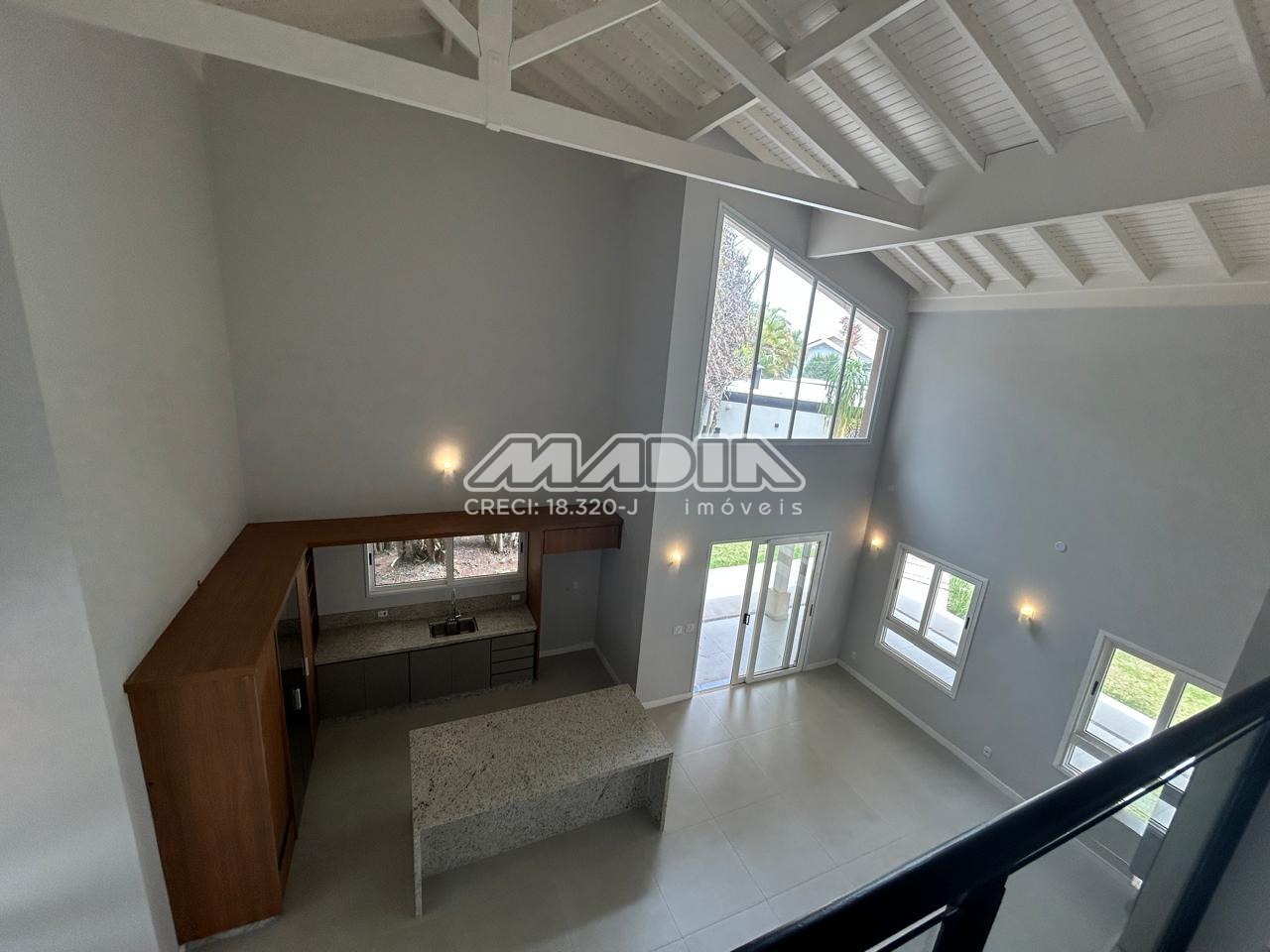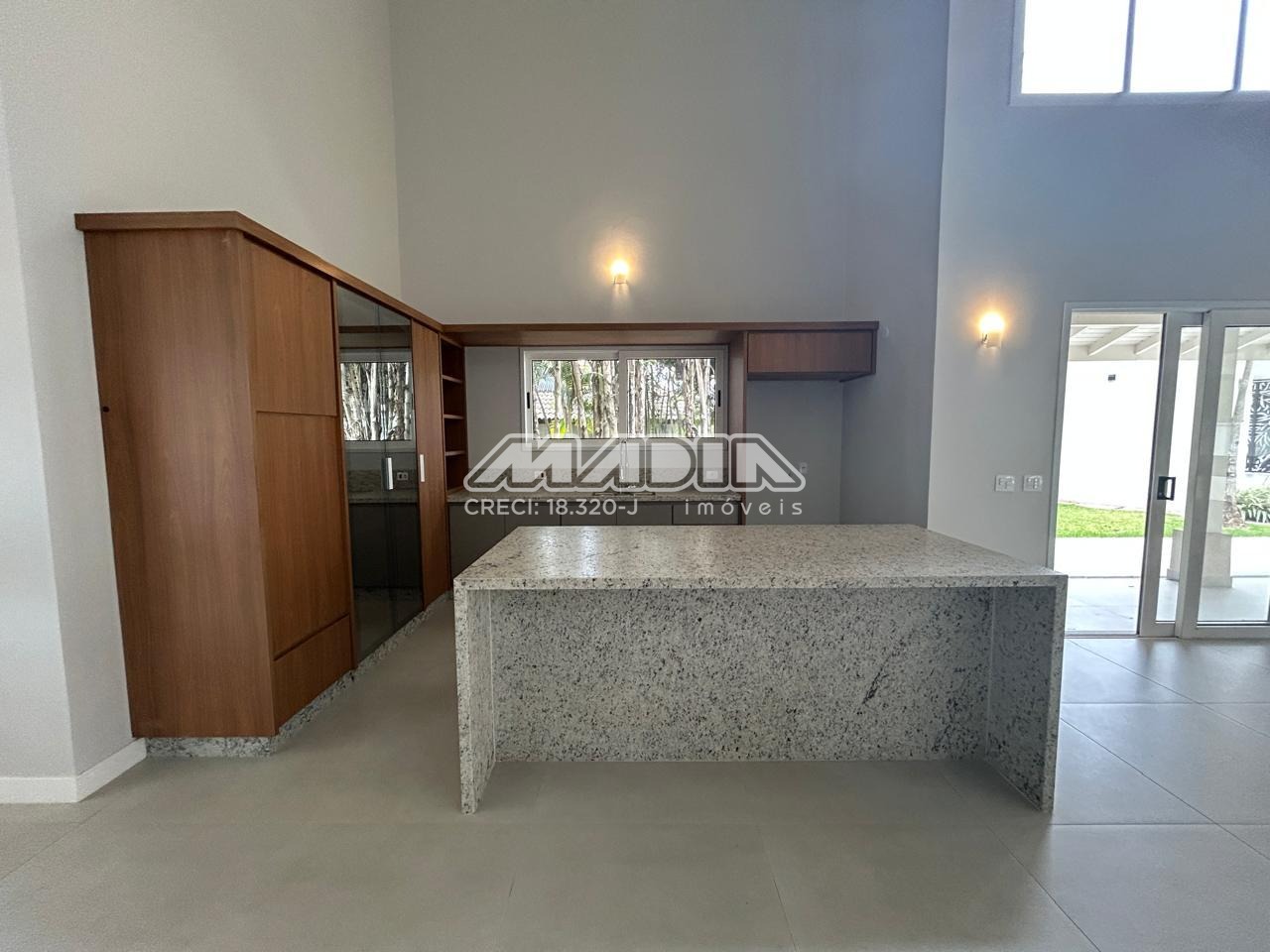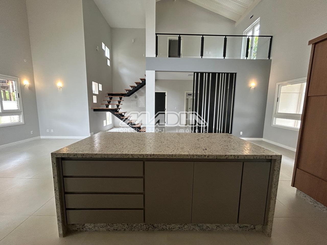 Casa novíssima com arquitetura moderna e prática com muita iluminação natural, cozinha com ilha, salas de jantar, sala de estar e sala de tv integradas, pé direito alto, lavabo completo (com chuveiro), lavanderia, varanda, 3 quartos sendo 2 suítes, suíte master com lareira, banheiro amplo e com duas cubas, sacada ampla com uma vista maravilhosa para a área verde do quintal, área gourmet com total privacidade, churrasqueira, banheiro social, depósito, piscina, ideal para receber a família e amigos sem incomodar as pessoas que estão dentro da casa.