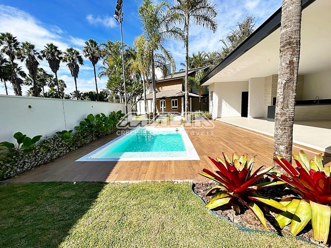 Casa com 3 quartos, sendo 2 suítes, lavabo, cozinha, lavanderia, sala de jantar, sala de tv, sala de estar, mezanino (escritório), sacada, churrasqueira, piscina, depósito, quintal, 2 vagas cobertas e mais 4 vagas descobertas.