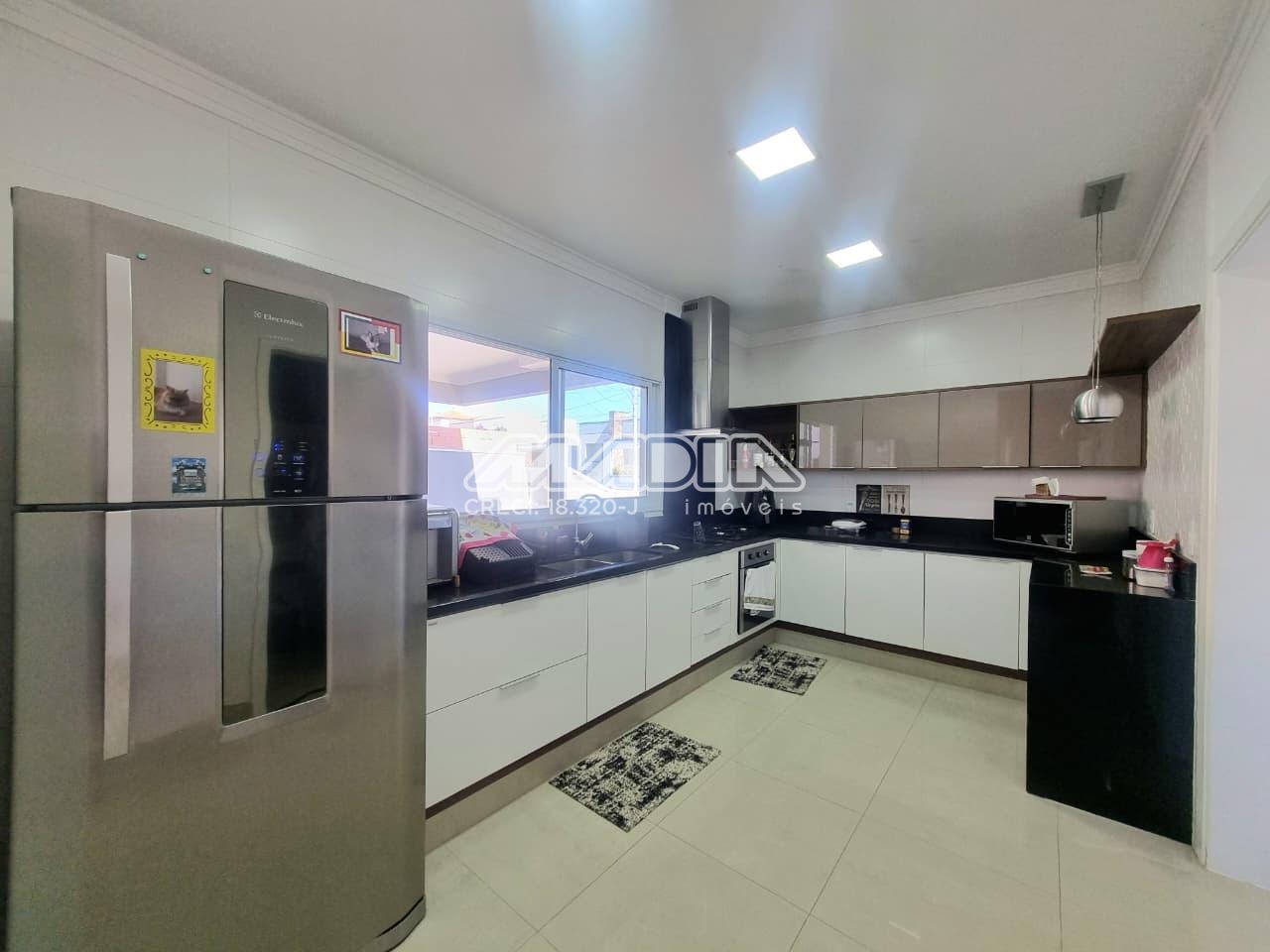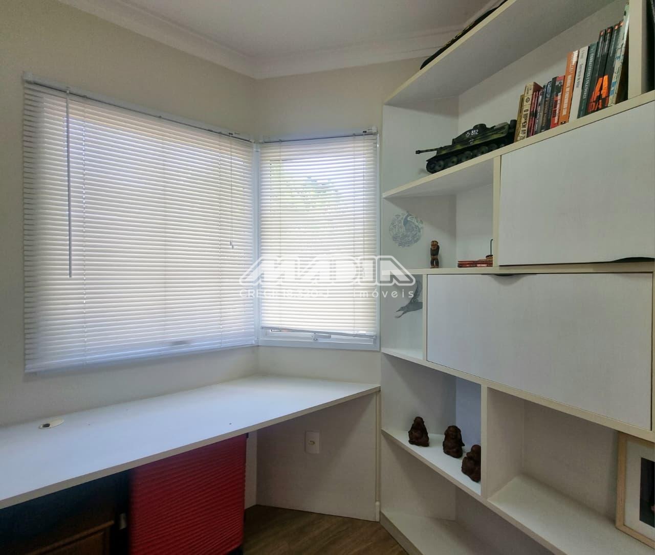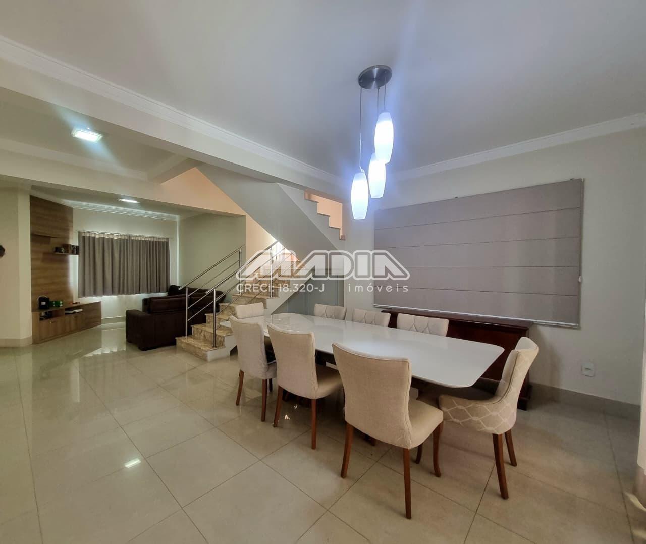 Casa de 266,54m², 4 dormitórios com varanda e armários planejados, sendo 2 suítes, 1 banheiro social,1 lavabo, escritório, sala de estar com sofá, sala de jantar com mesa, área de serviço com armários, 2 garagens cobertas, aceita pet.