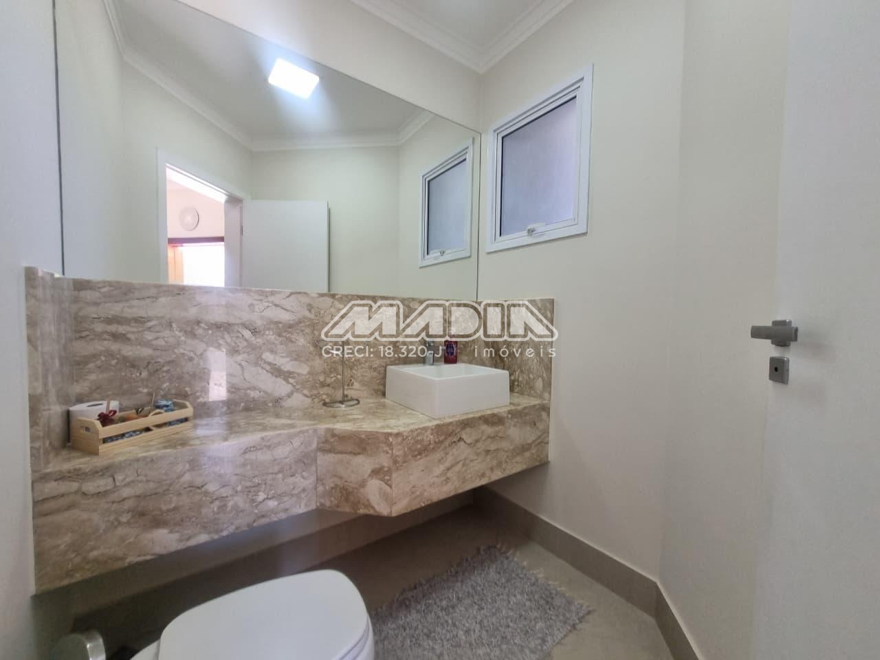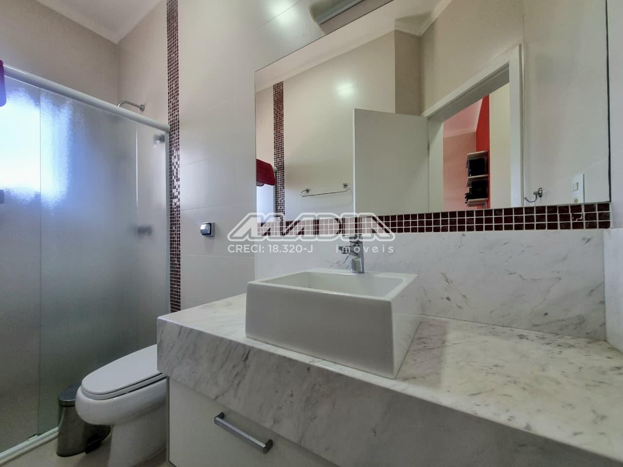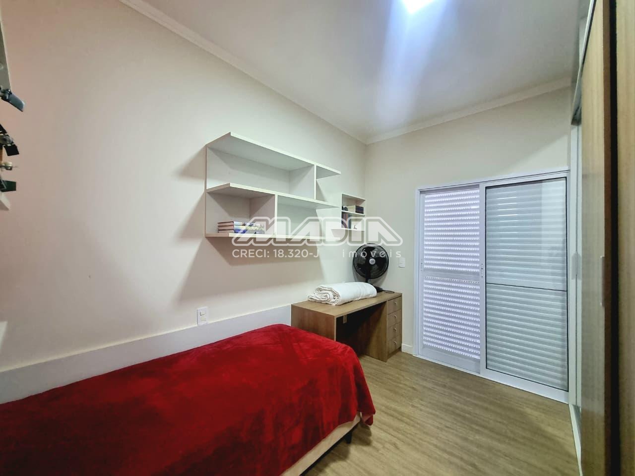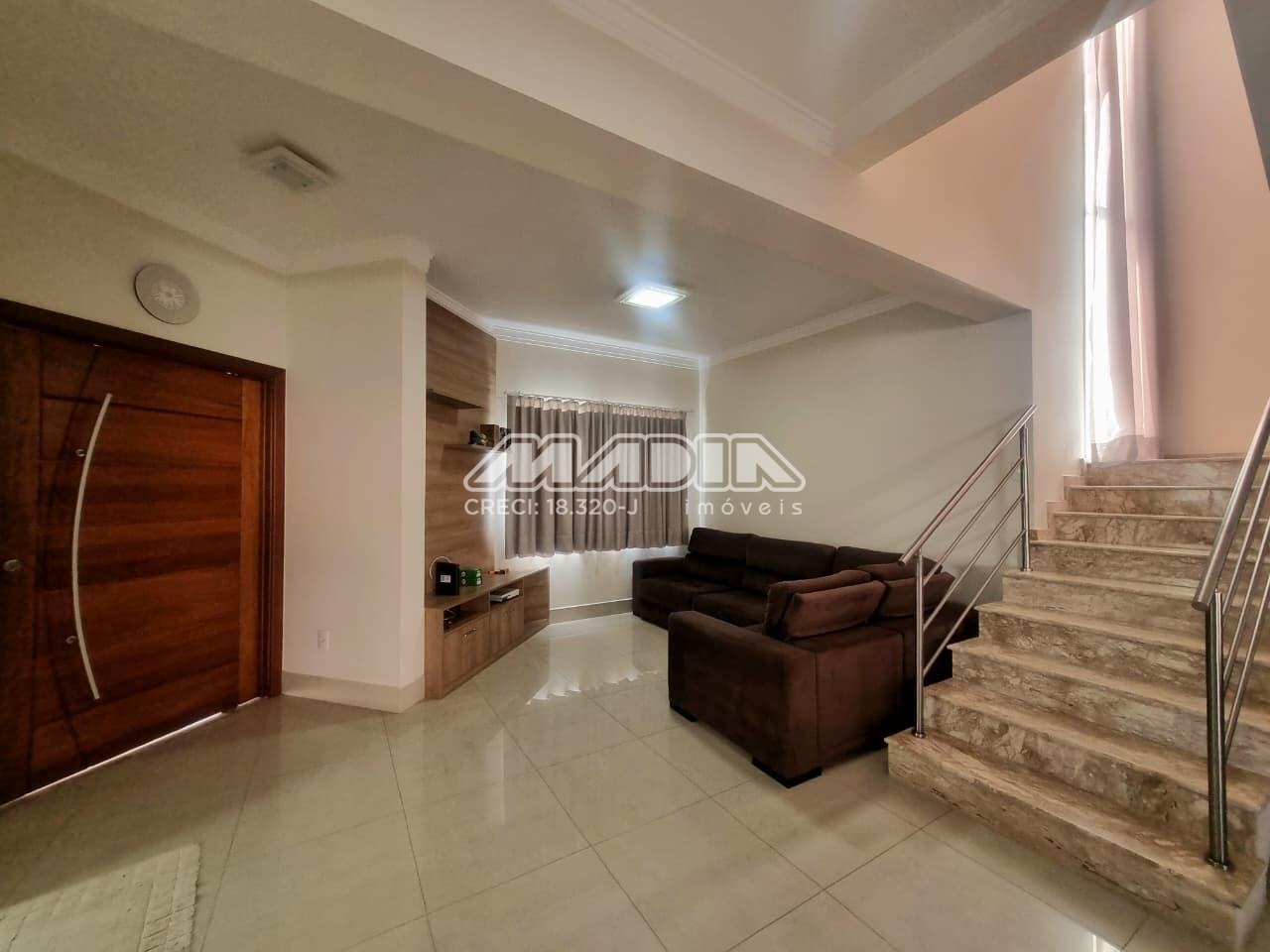 Casa de 266,54m², 4 dormitórios com varanda e armários planejados, sendo 2 suítes, 1 banheiro social,1 lavabo, escritório, sala de estar com sofá, sala de jantar com mesa, área de serviço com armários, 2 garagens cobertas, aceita pet.