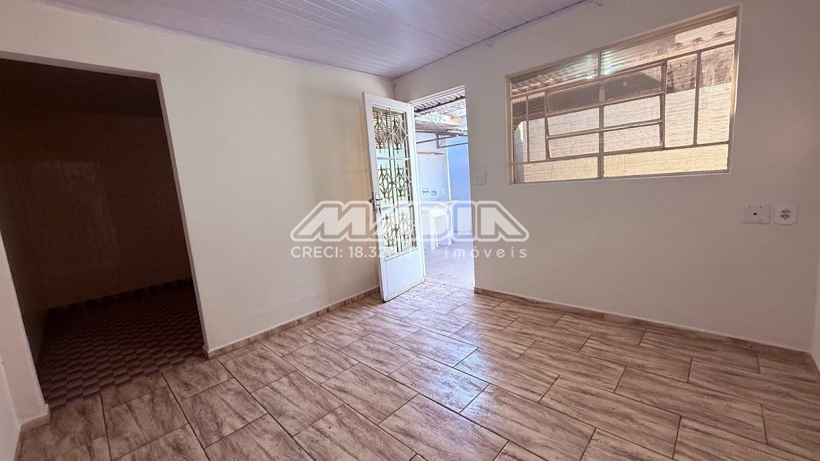 Casa dos fundos, 1 sala, 1 cozinha, 1 dormitório, 1 banheiro, área de serviço e 1 vaga coberta.