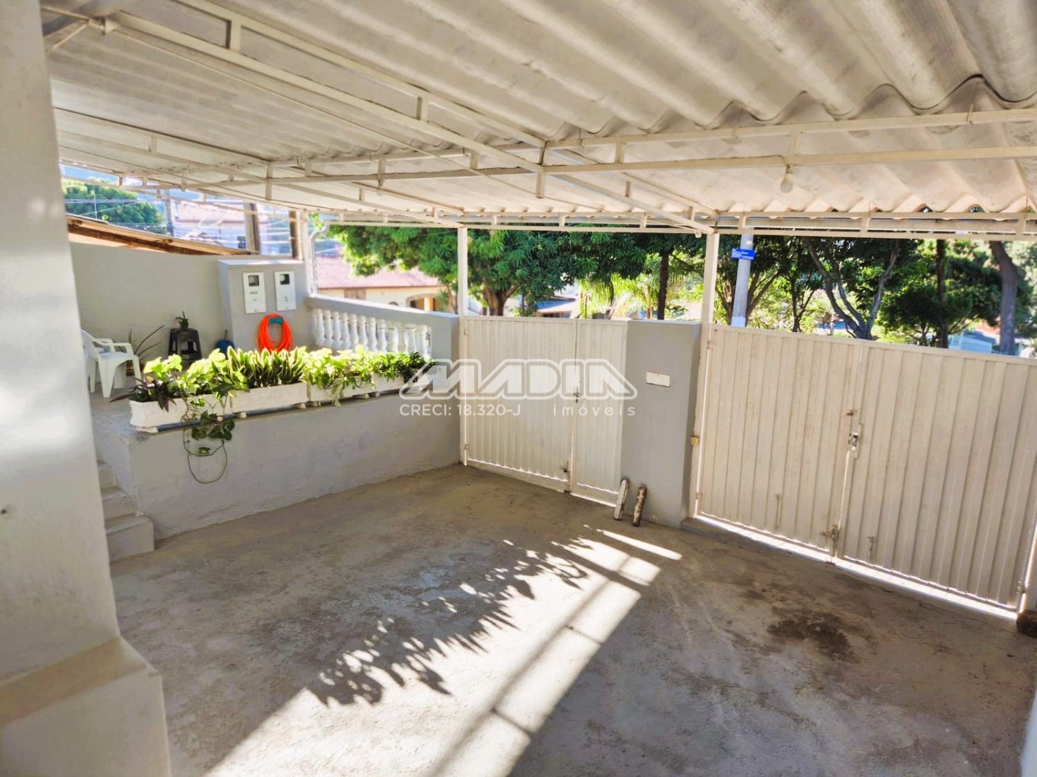 Relógios de água e energia individuas, corredor lateral, varanda coberta.