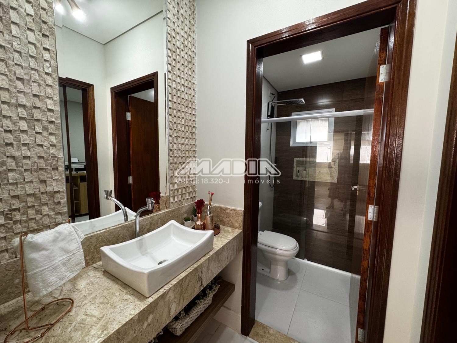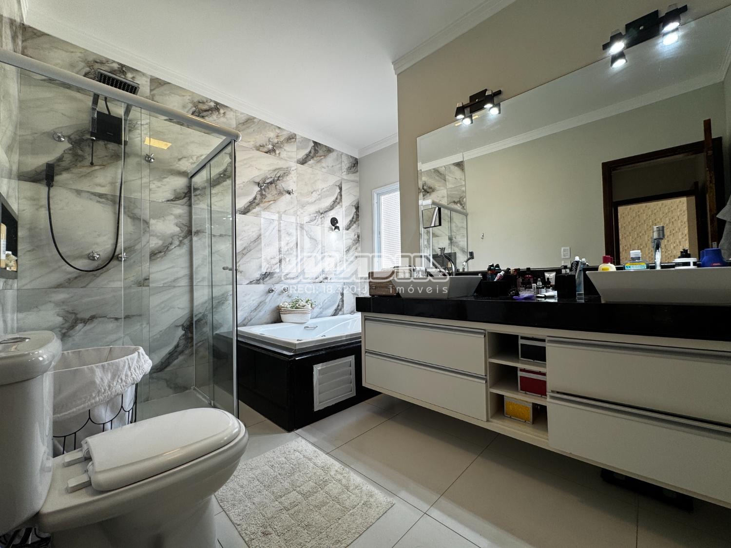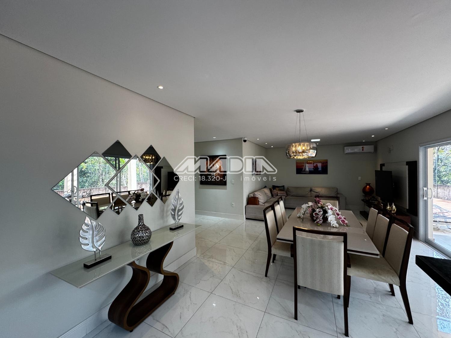Com 510 m² de terreno, 253 m² de construção, composta no piso superior com 3 suítes com ar condicionado, ricos em armários, sendo 1 suíte master com banheira hidromassagem e closet. No piso inferior ampla sala de estar e jantar integrada a cozinha, 1 suíte, lavabo, escritório e uma convidativa área gourmet com churrasqueira e piscina aquecida com hidromassagem, com uma linda vista para uma área verde (APP) onde sua privacidade está garantida proporcionando momentos agradáveis com sua família e amigos.