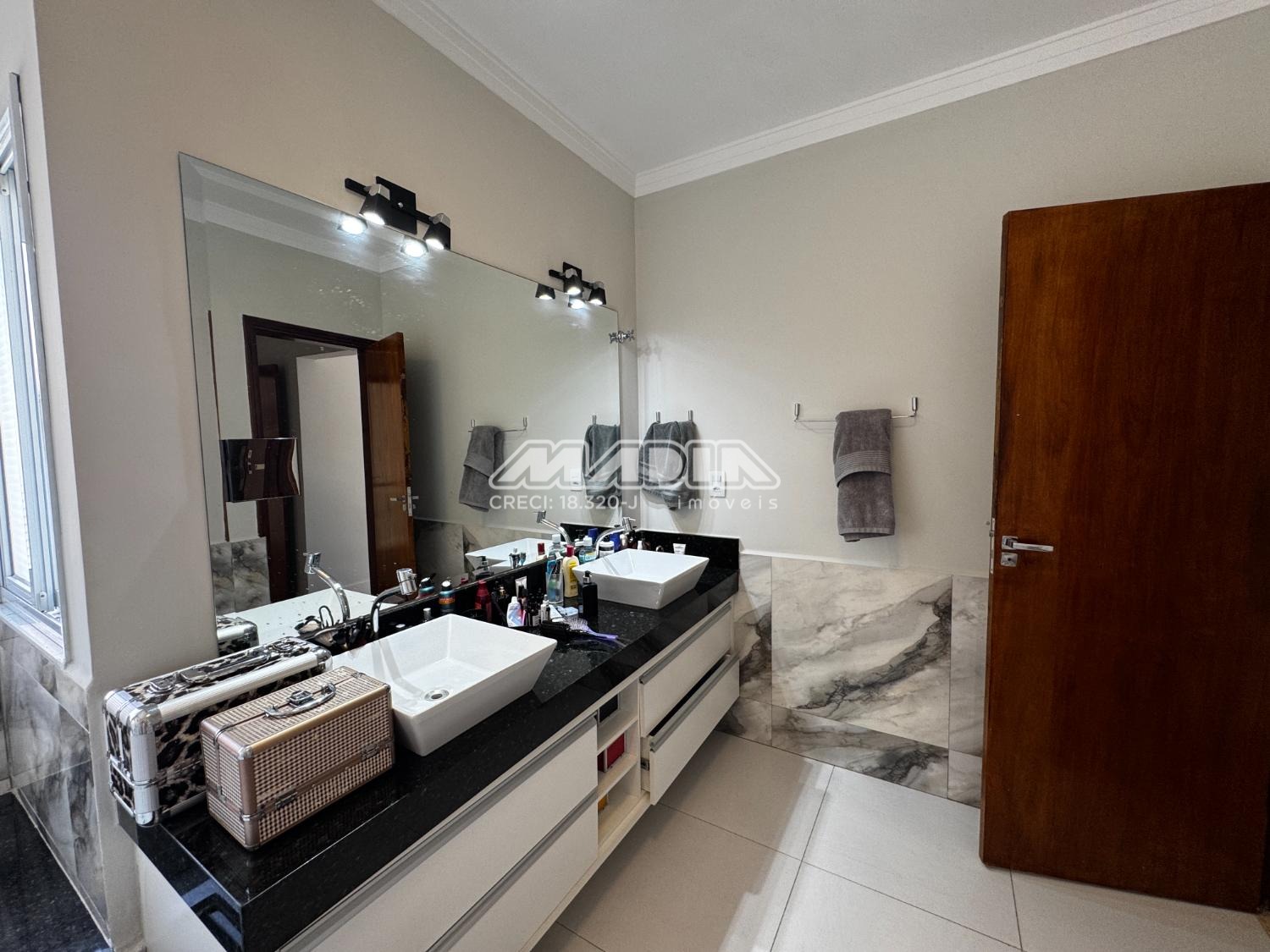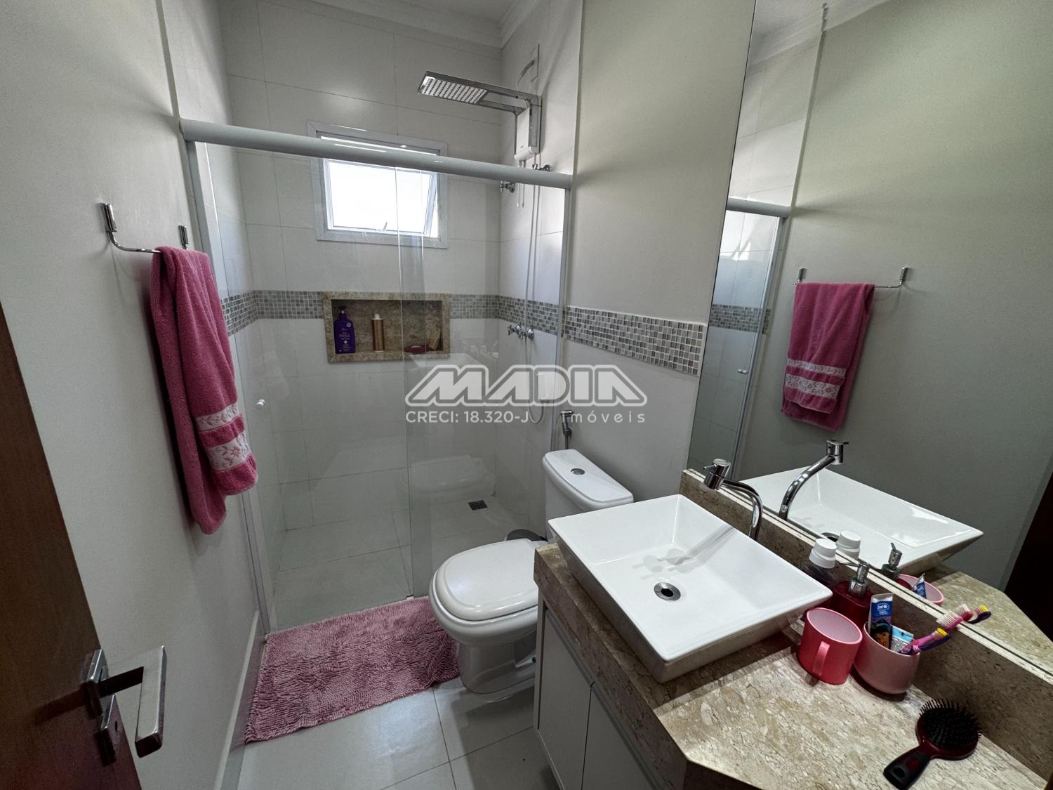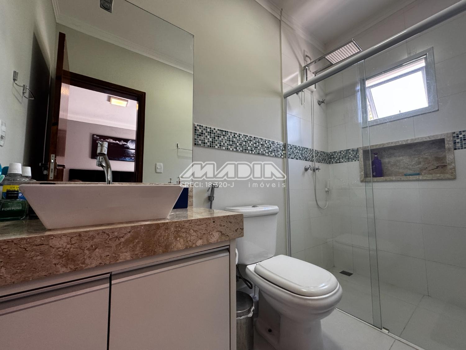Com 510 m² de terreno, 253 m² de construção, composta no piso superior com 3 suítes com ar condicionado, ricos em armários, sendo 1 suíte master com banheira hidromassagem e closet. No piso inferior ampla sala de estar e jantar integrada a cozinha, 1 suíte, lavabo, escritório e uma convidativa área gourmet com churrasqueira e piscina aquecida com hidromassagem, com uma linda vista para uma área verde (APP) onde sua privacidade está garantida proporcionando momentos agradáveis com sua família e amigos.