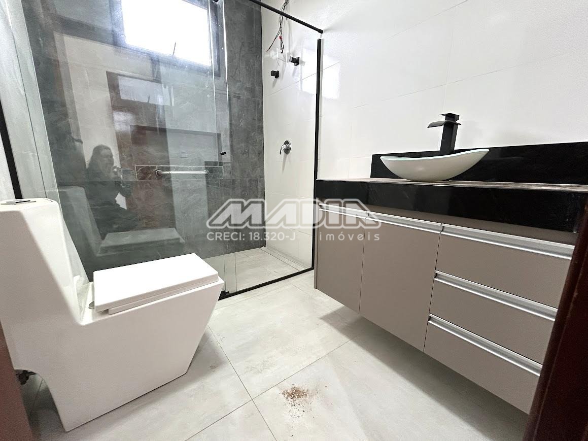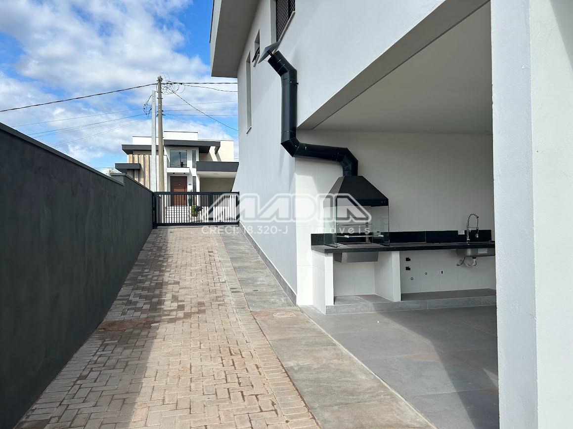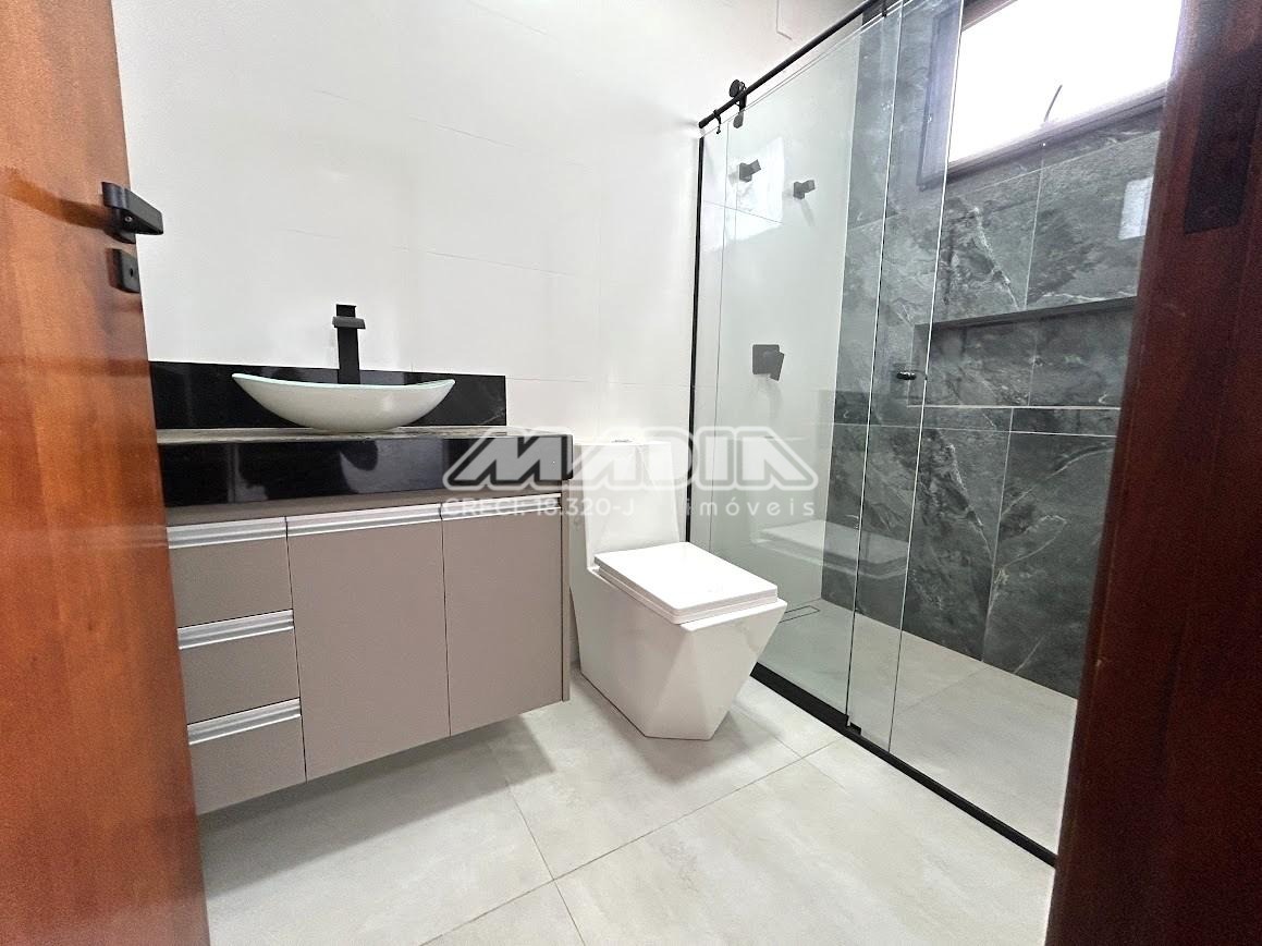 Casa com hall de entrada, 3 quartos, sendo 2 suítes, escritório, lavabo, quarto com banheiro estilo americano, sala de estar integrada com a sala de jantar, cozinha, lavanderia, depósito, área gourmet com churrasqueira, cisterna, 2 vagas cobertas de garagem.