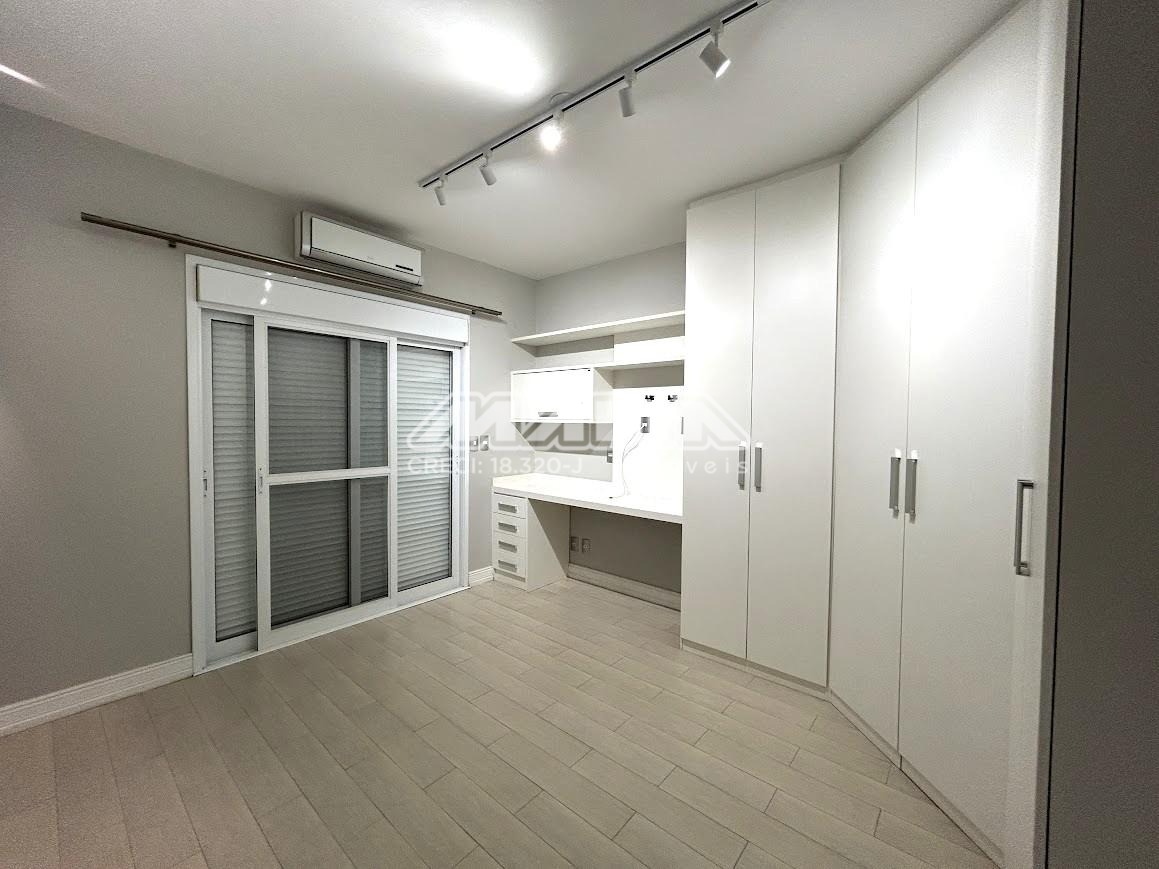 - 4 Quartos sendo 4 suítes; 3 suítes no pavimento térreo todas com armários planejados, ar condicionado, inclusive a suíte master com closet bem espaçoso e hidromassagem, proporcionando praticidade e acessibilidade.