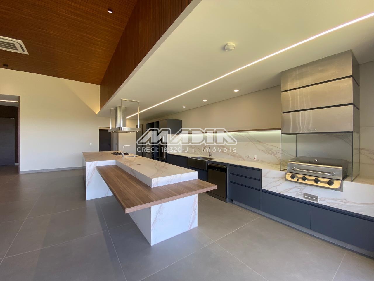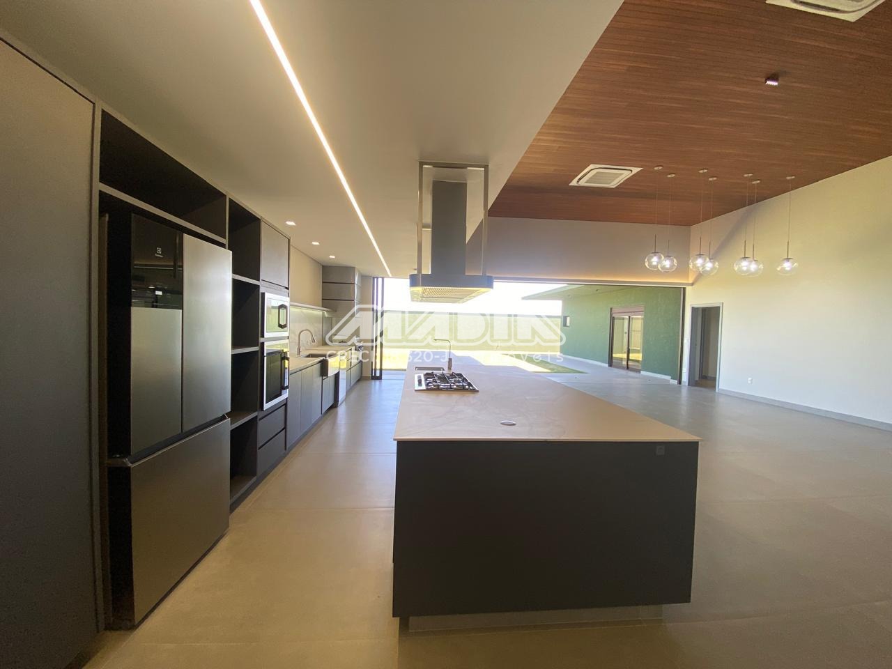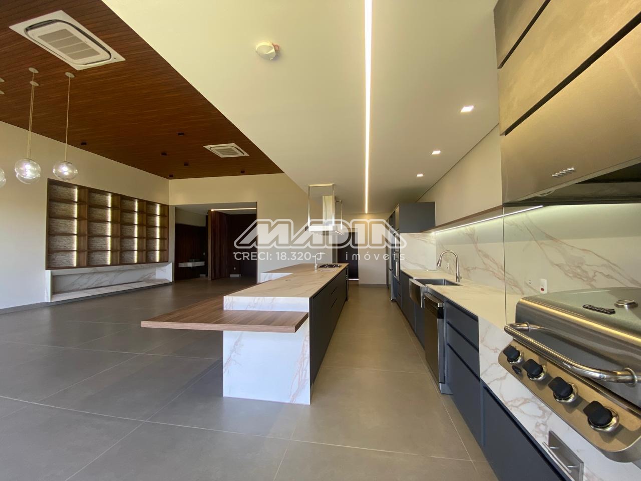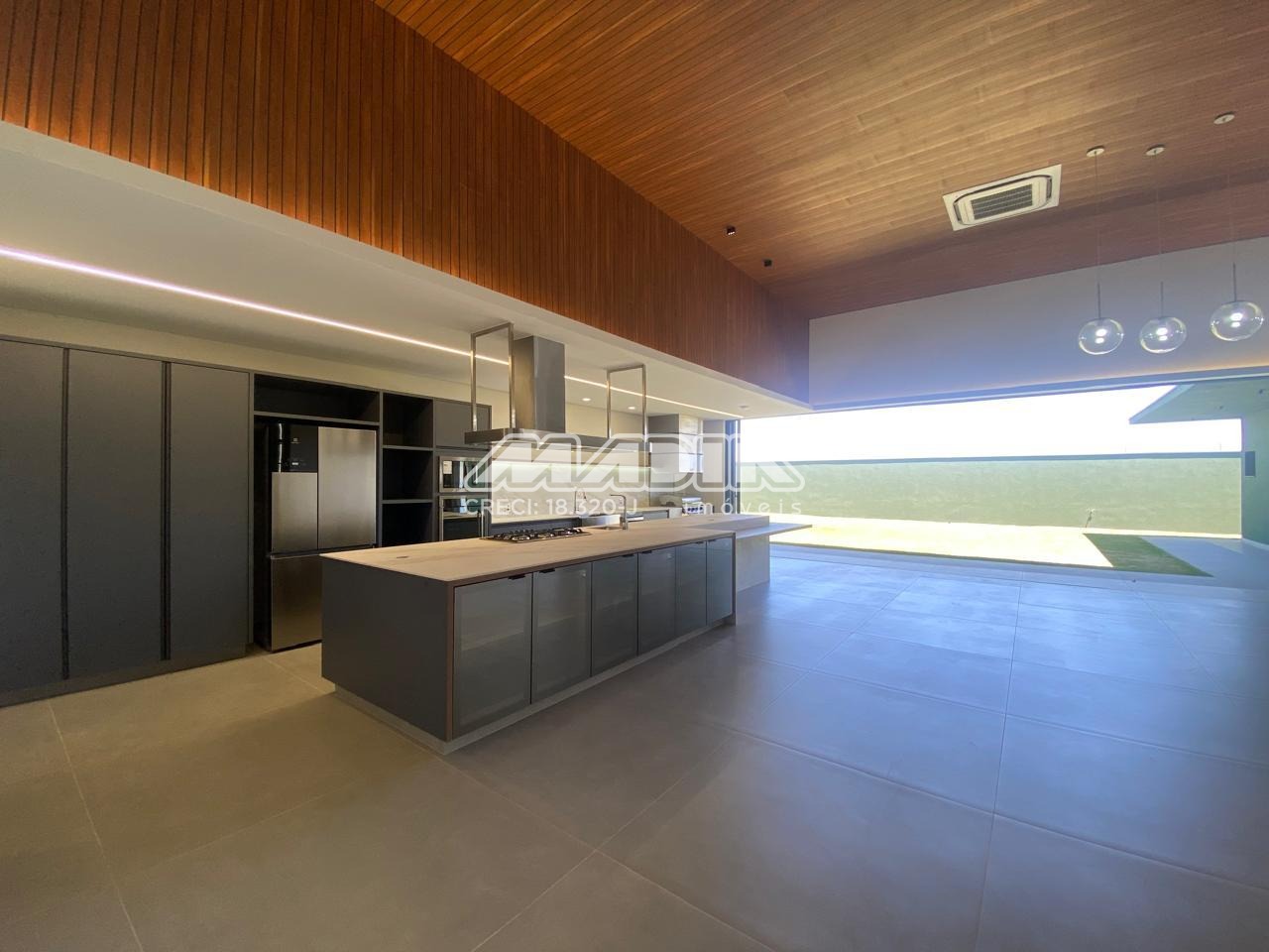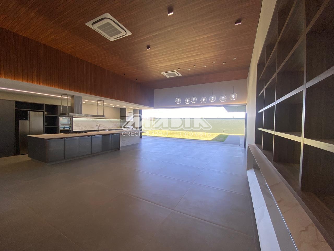 Ao entrar, você encontra um espaço de escritório amplo, com ar condicionado, ideal para home office, estudos ou atividades profissionais em casa. A casa também dispõe de um home theater com ar condicionado e teto acústico, criado para cinema em casa, sessões de streaming ou encontros com amigos, com uma sonoridade equilibrada que realça cada detalhe audiovisual. A área social é integrada e climatizada por um sistema de ar condicionado central, promovendo fluidez entre os ambientes de convivência. Na cozinha, a ilha central é o coração da casa: equipada com cooktop, coifa, pia e bancada, funcionam de forma harmoniosa com a área de serviço, que está organizada com muitos armários para suprir toda a necessidade de armazenamento e praticidade do dia a dia.