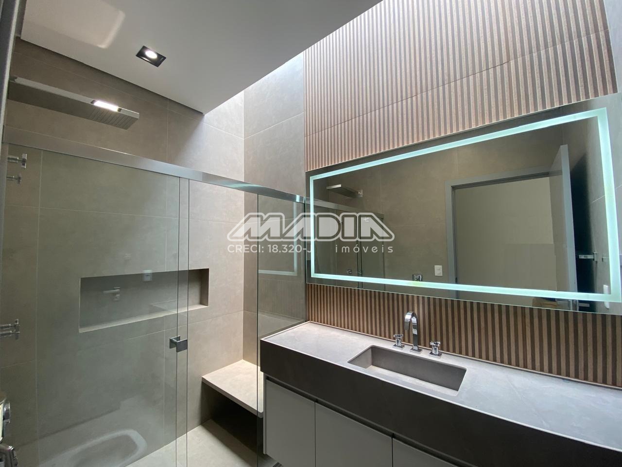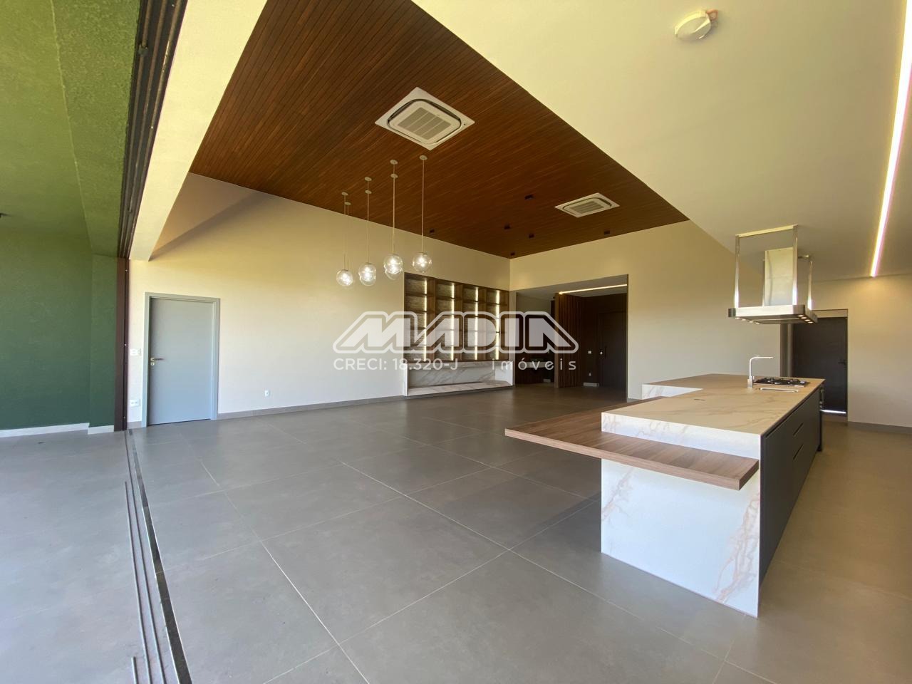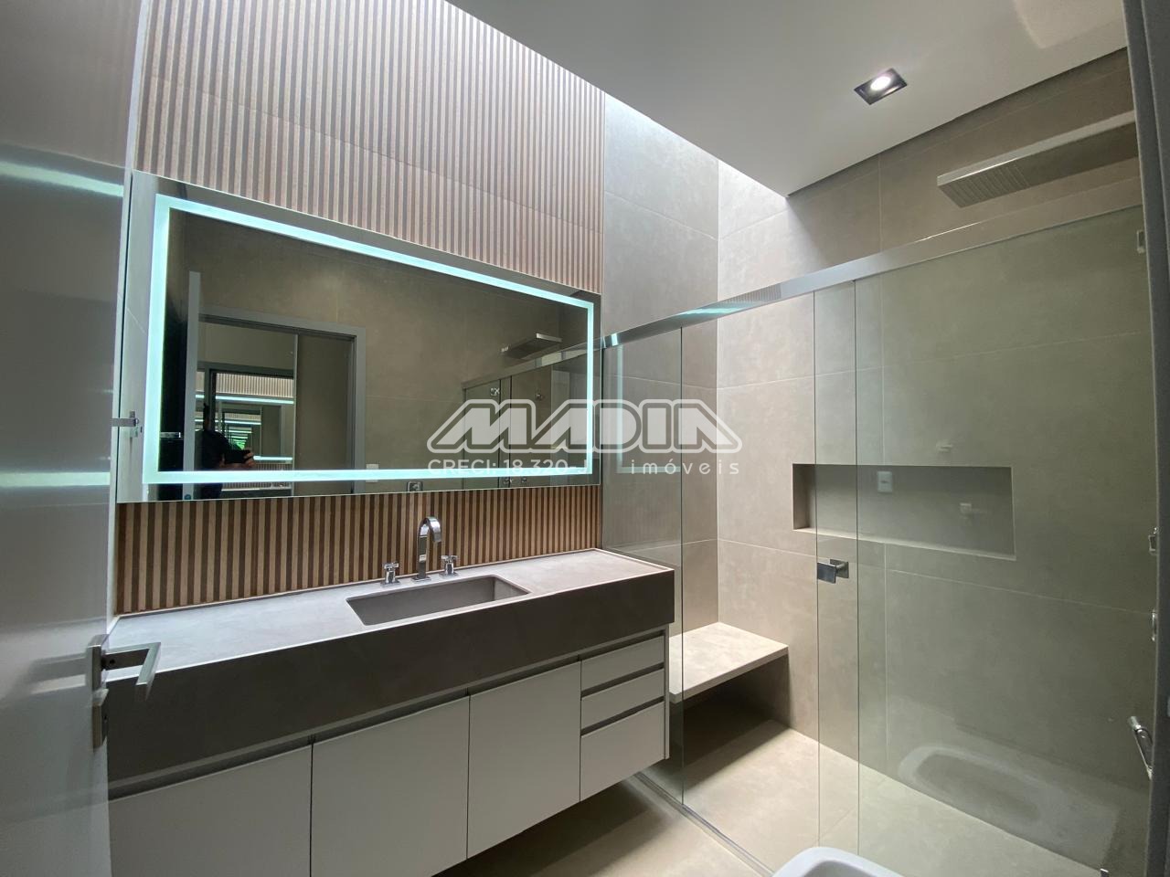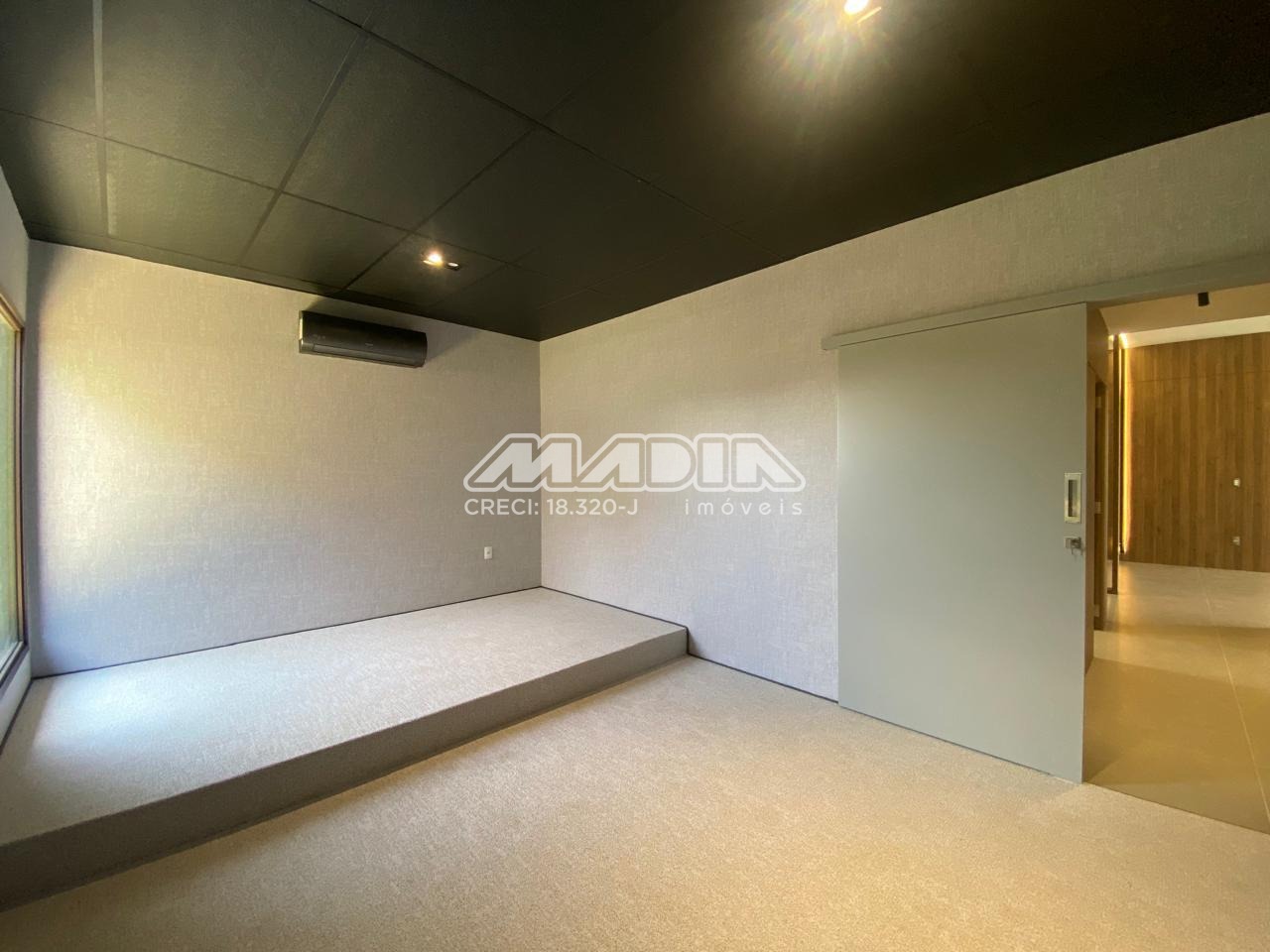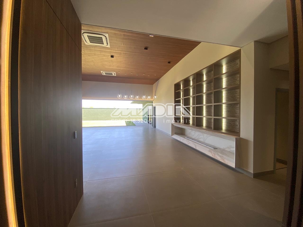Ao entrar, você encontra um espaço de escritório amplo, com ar condicionado, ideal para home office, estudos ou atividades profissionais em casa. A casa também dispõe de um home theater com ar condicionado e teto acústico, criado para cinema em casa, sessões de streaming ou encontros com amigos, com uma sonoridade equilibrada que realça cada detalhe audiovisual. A área social é integrada e climatizada por um sistema de ar condicionado central, promovendo fluidez entre os ambientes de convivência. Na cozinha, a ilha central é o coração da casa: equipada com cooktop, coifa, pia e bancada, funcionam de forma harmoniosa com a área de serviço, que está organizada com muitos armários para suprir toda a necessidade de armazenamento e praticidade do dia a dia.