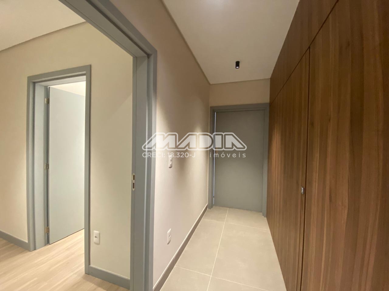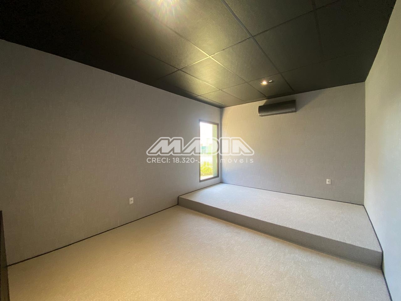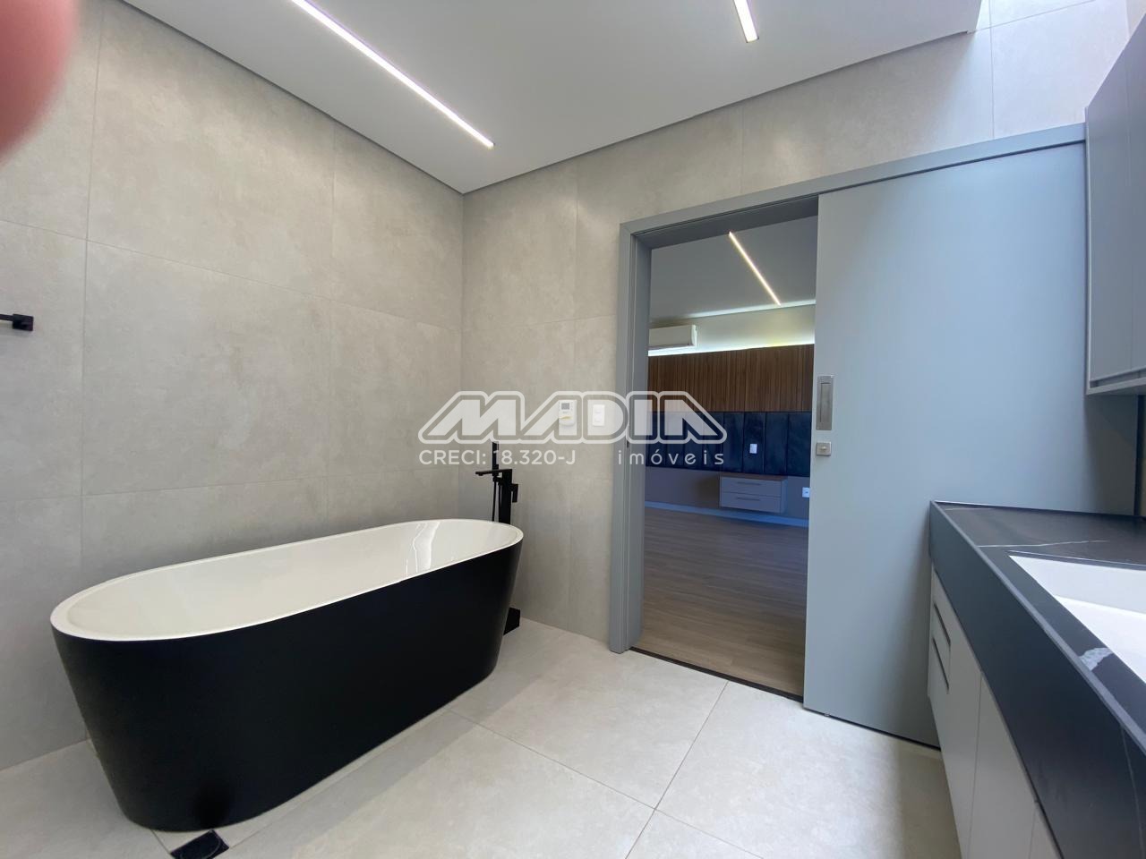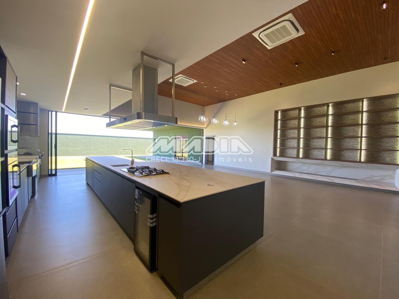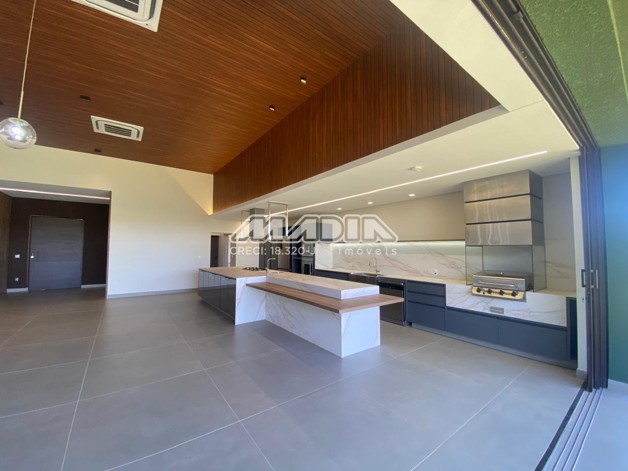 Ao entrar, você encontra um espaço de escritório amplo, com ar condicionado, ideal para home office, estudos ou atividades profissionais em casa. A casa também dispõe de um home theater com ar condicionado e teto acústico, criado para cinema em casa, sessões de streaming ou encontros com amigos, com uma sonoridade equilibrada que realça cada detalhe audiovisual. A área social é integrada e climatizada por um sistema de ar condicionado central, promovendo fluidez entre os ambientes de convivência. Na cozinha, a ilha central é o coração da casa: equipada com cooktop, coifa, pia e bancada, funcionam de forma harmoniosa com a área de serviço, que está organizada com muitos armários para suprir toda a necessidade de armazenamento e praticidade do dia a dia.