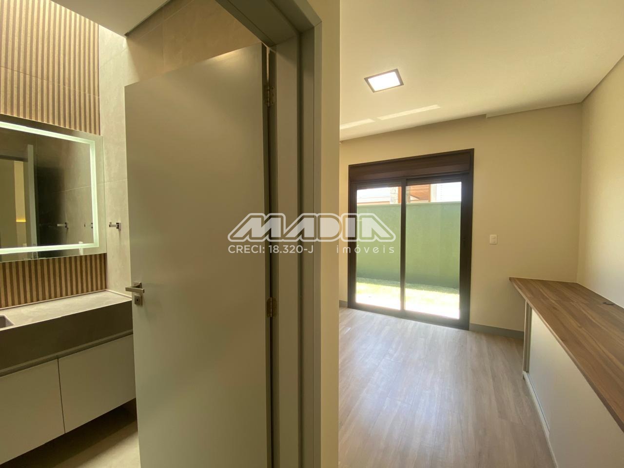Imagine morar em um ambiente onde a modernidade encontra o aconchego de casa de campo, em um condomínio que traduz o conceito de resort com a exclusividade de morar perto da natureza. Esta casa nova e térrea, situada no prestigiado Haras Patente, em Jaguariúna, oferece todos os atributos para quem busca qualidade de vida, conforto e tecnologia em um só lugar. São 4 quartos, todos suítes com ar condicionado, garantindo privacidade e tranquilidade para cada membro da família. Os banheiros são equipados com claraboias que permitem a entrada de luz natural durante o dia, proporcionando um ambiente claro, arejado e energeticamente eficiente. As persianas automatizadas em todos os ambientes elevam a experiência de conforto, permitindo regular a luminosidade de forma prática e silenciosa, sem abrir mão da privacidade.