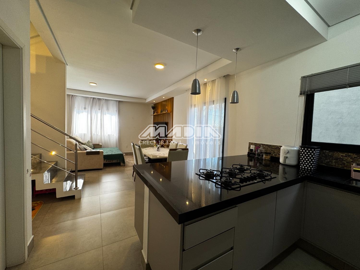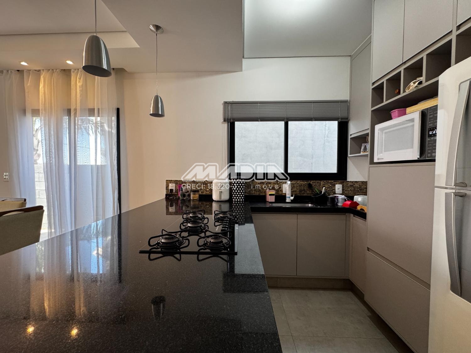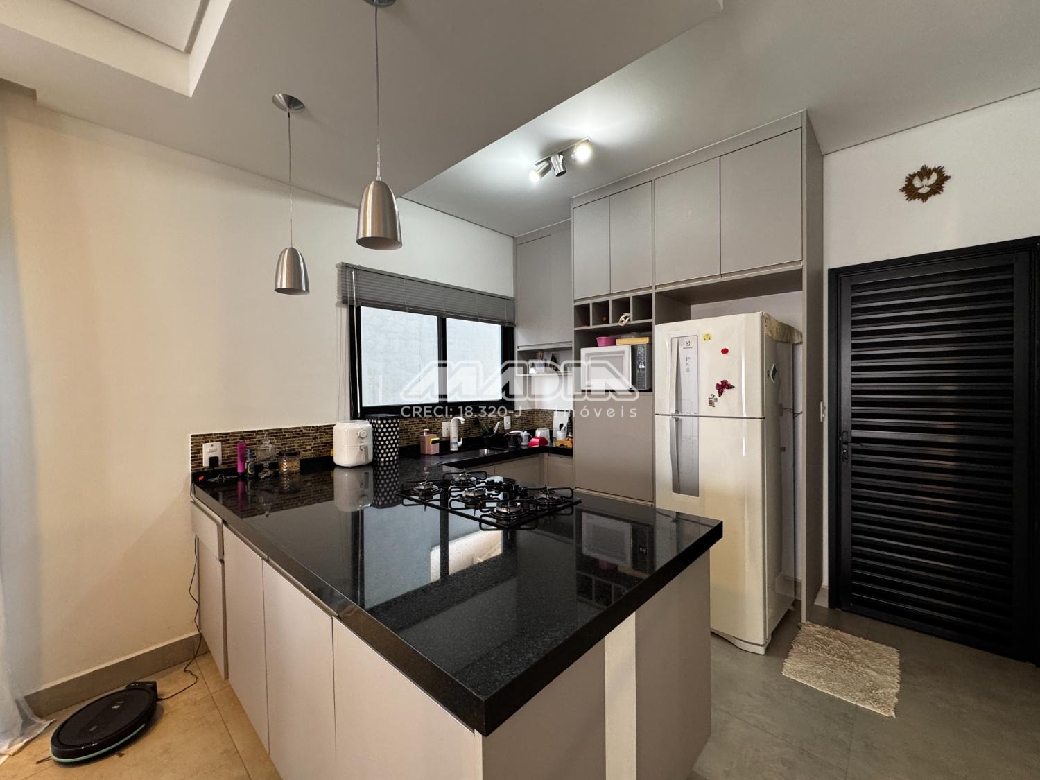 A cozinha é moderna e funcional, com excelente quantidade de armários, bancada prática e pia integrada, além de uma ilha/balcão que facilita o preparo de refeições e o convívio entre quem cozinha e quem está na sala de estar. Os materiais escolhidos conferem um acabamento cuidadoso, com detalhes que unem estética e durabilidade para uso cotidiano. O ambiente é pensado para oferecer conforto térmico e acústico, tornando as áreas internas agradáveis em diferentes horários do dia.